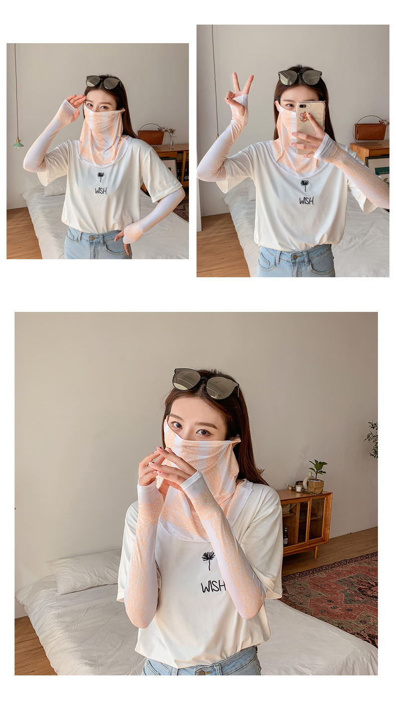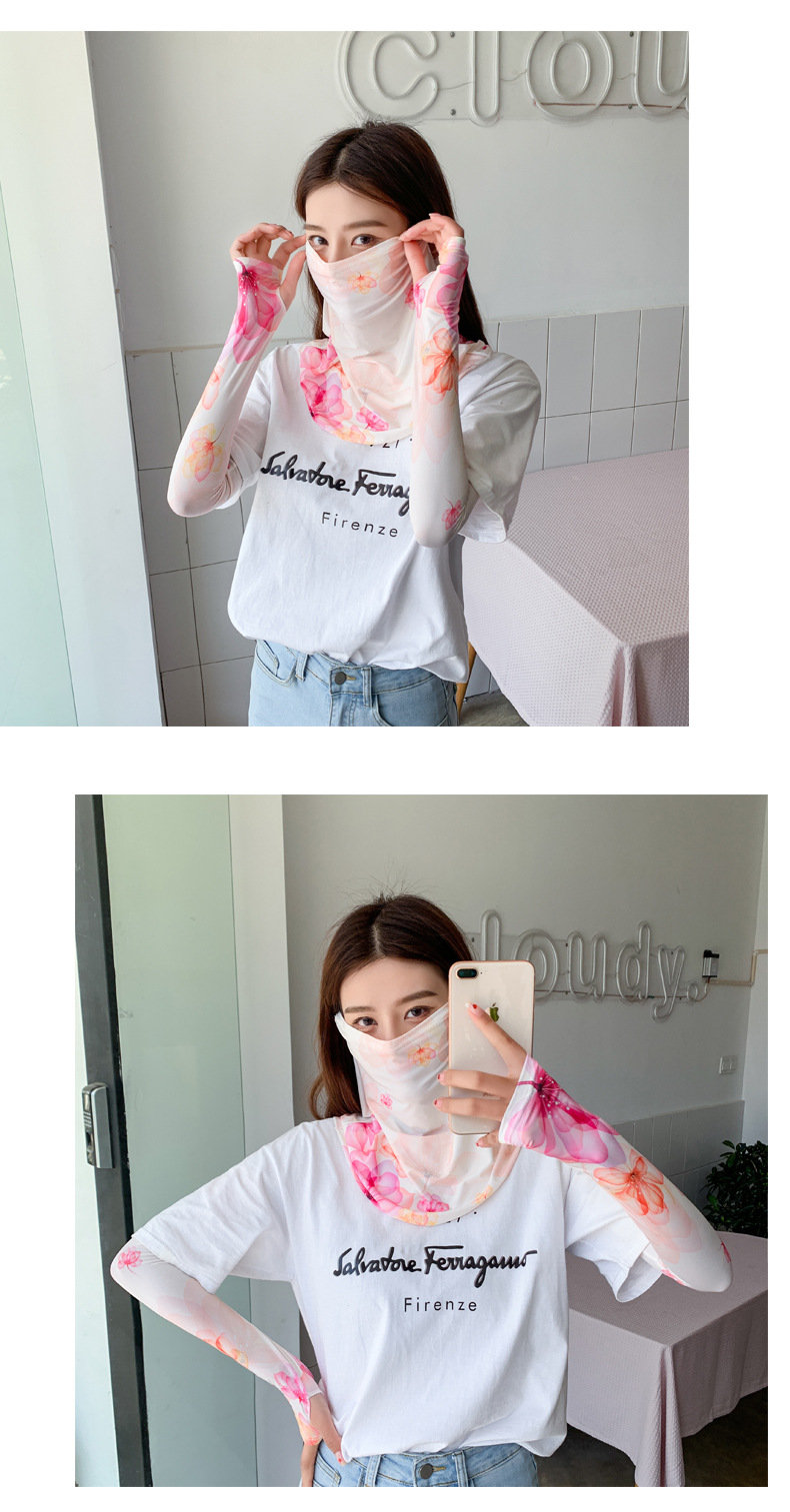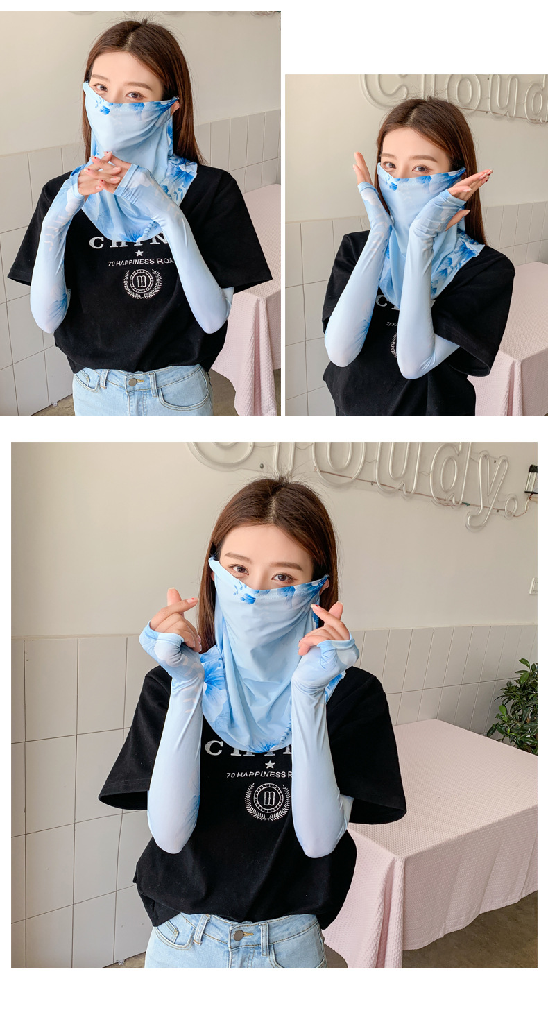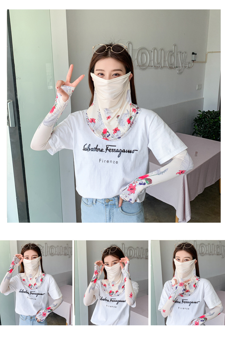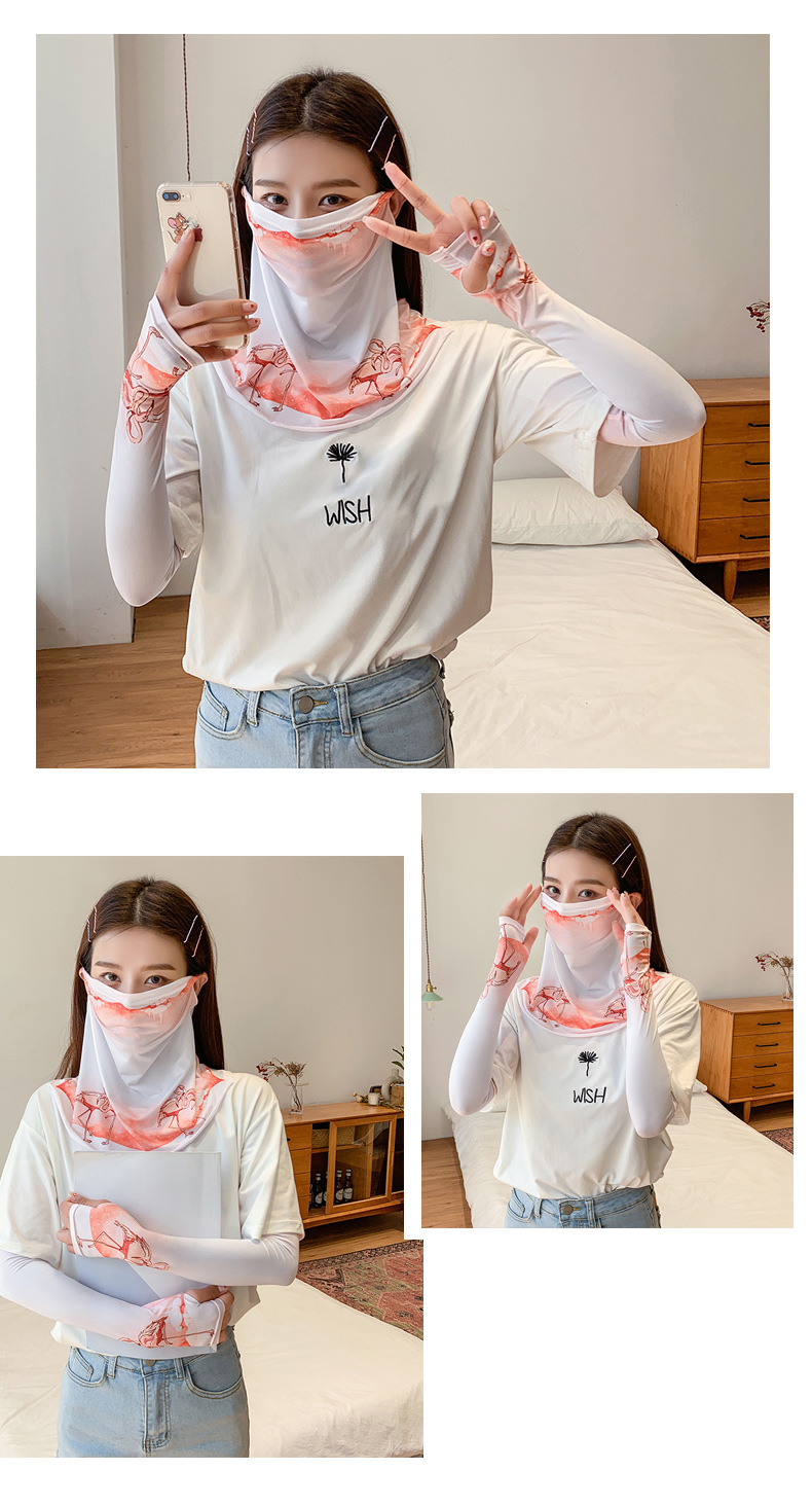 (五一出游必备——护颈防晒口罩+冰袖)女神泫雅风冰丝小雏菊系列一体防晒WY