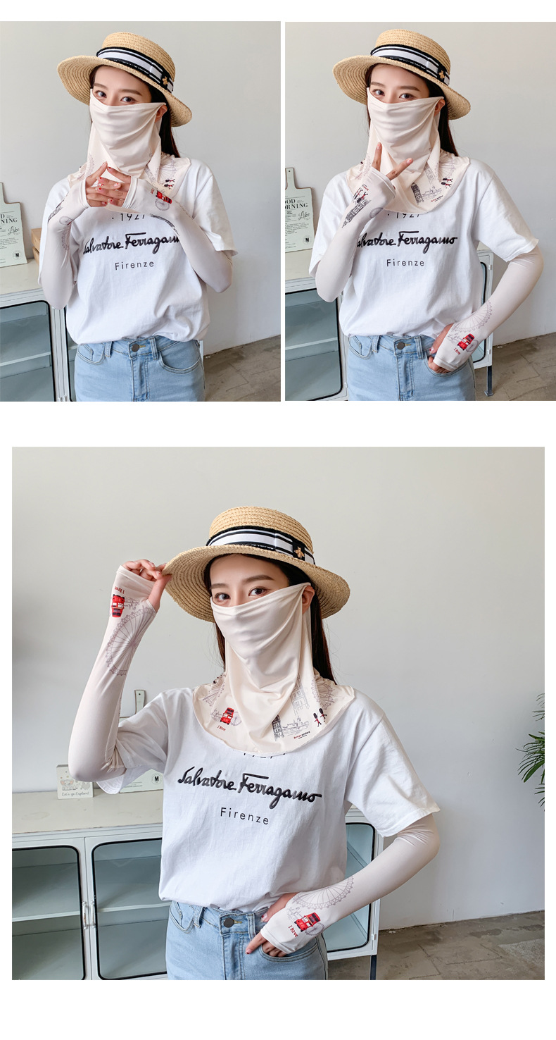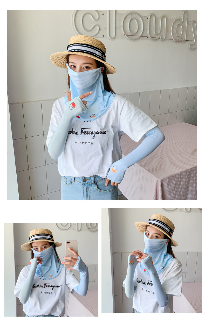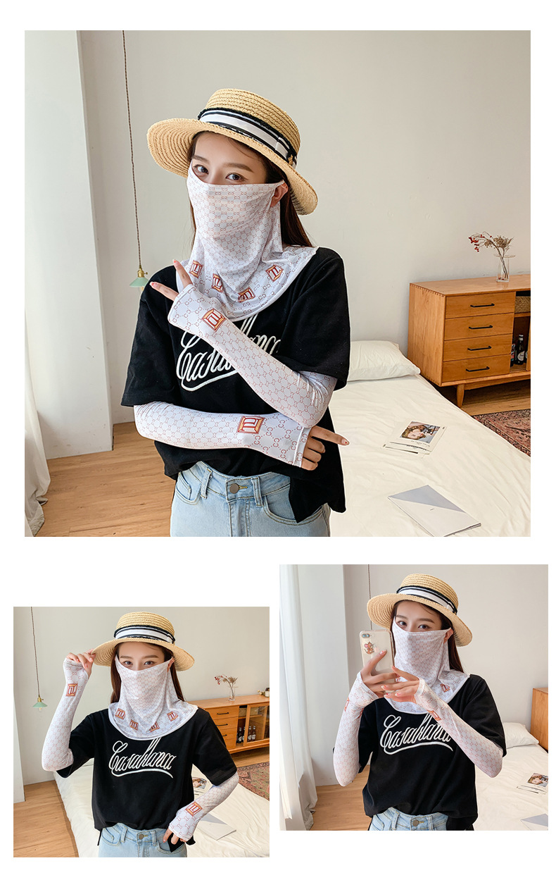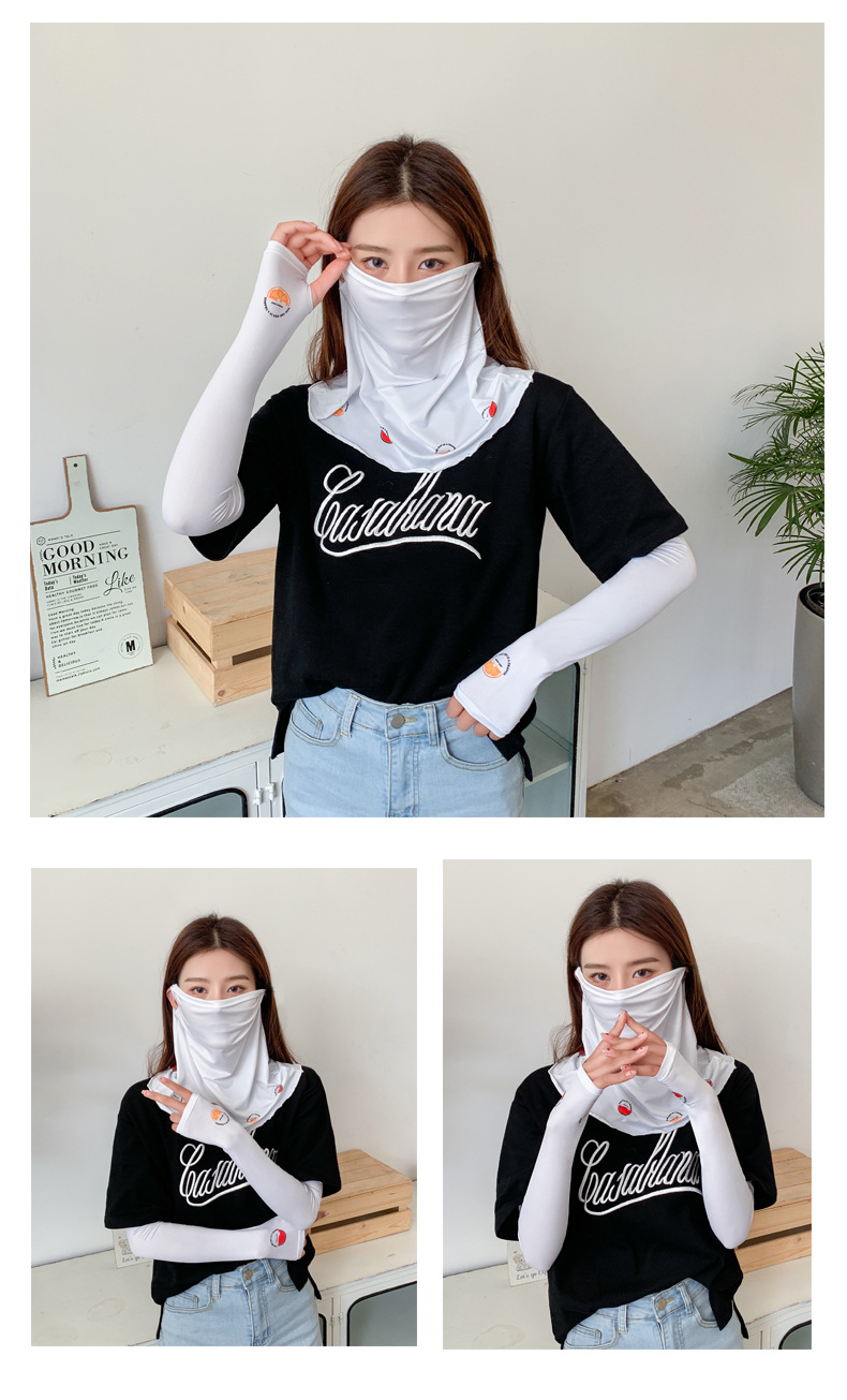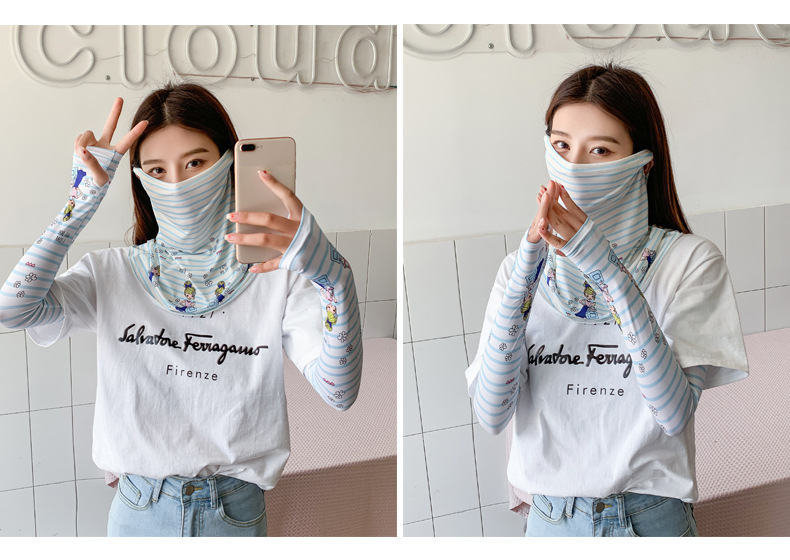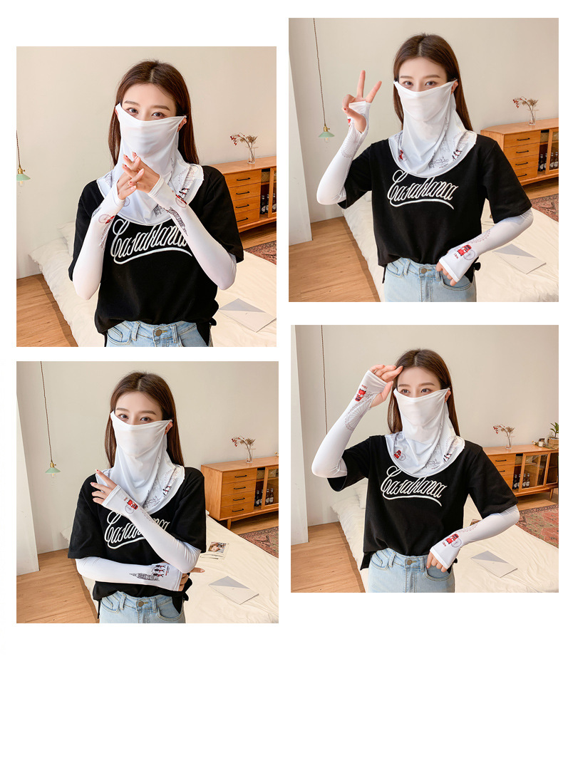 (五一出游必备——护颈防晒口罩+冰袖)女神泫雅风冰丝小雏菊系列一体防晒WY