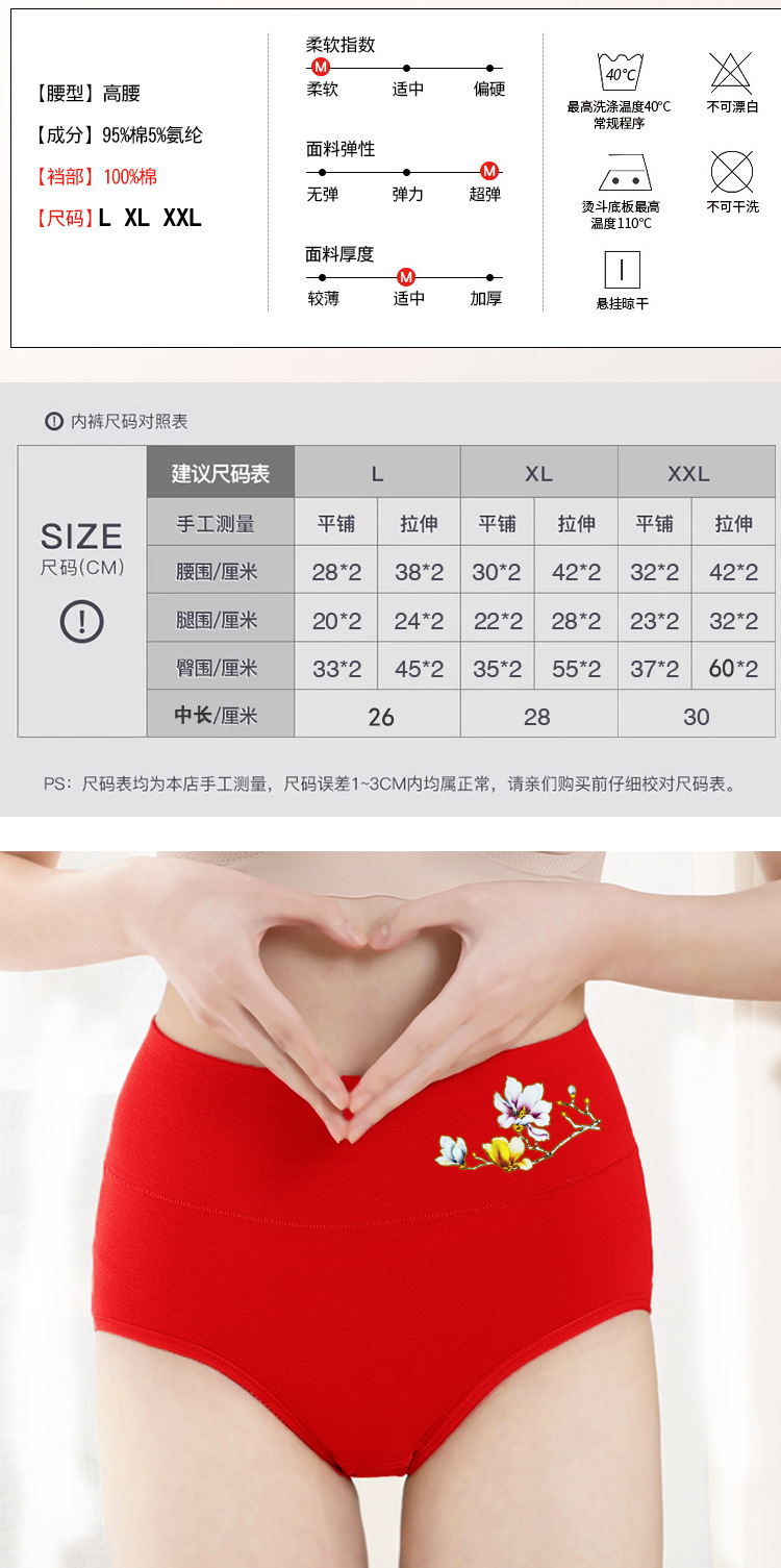 TZW-南极人4条莫代尔高腰内裤女裆加大码200斤三角裤头