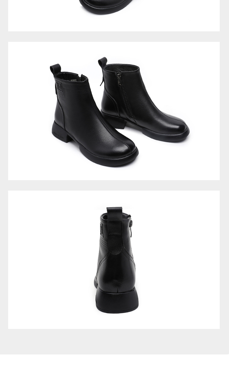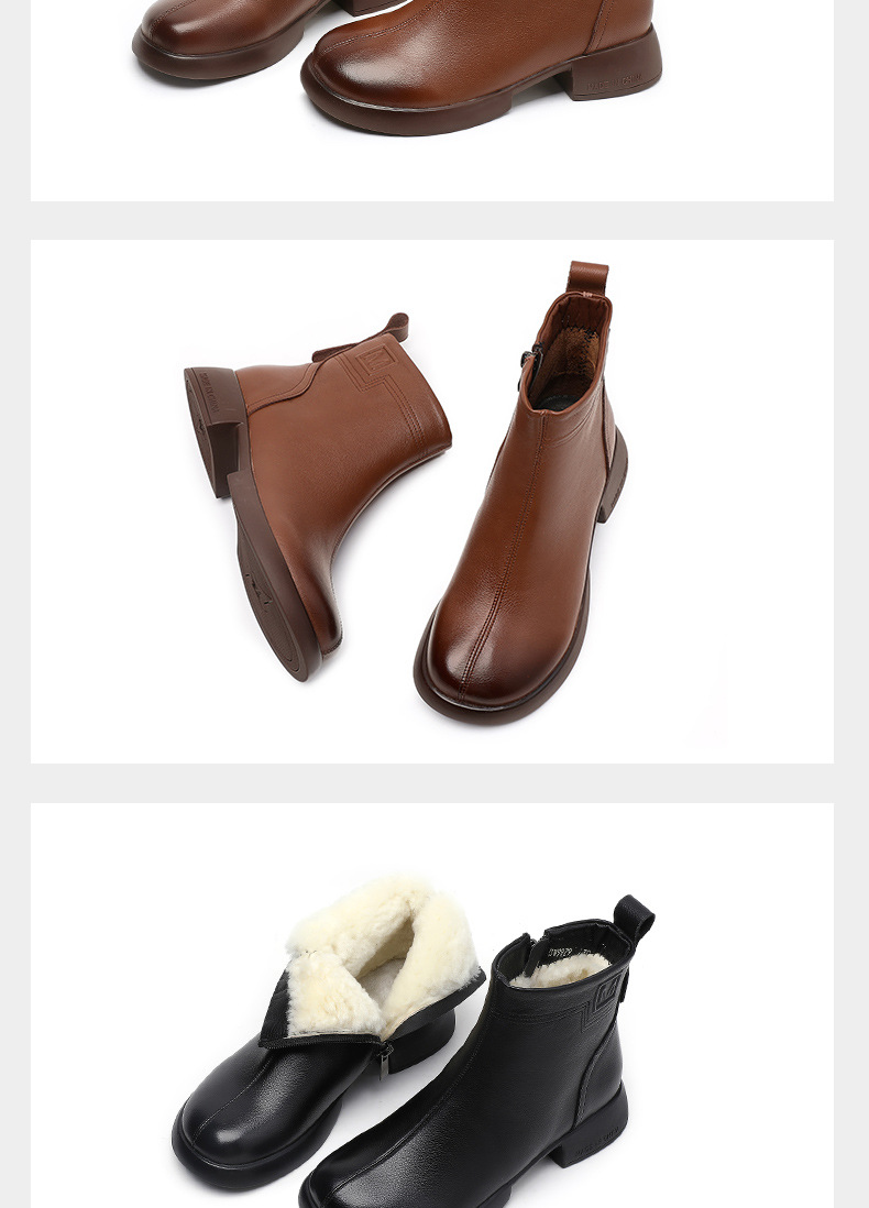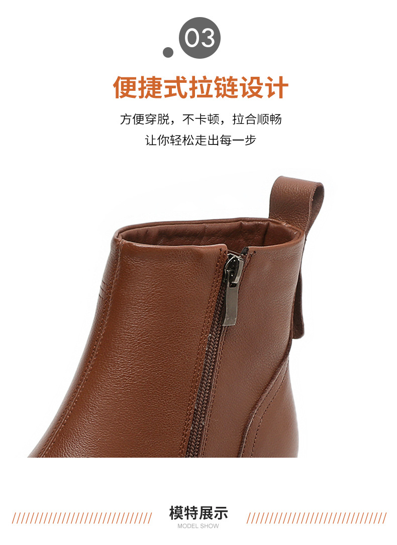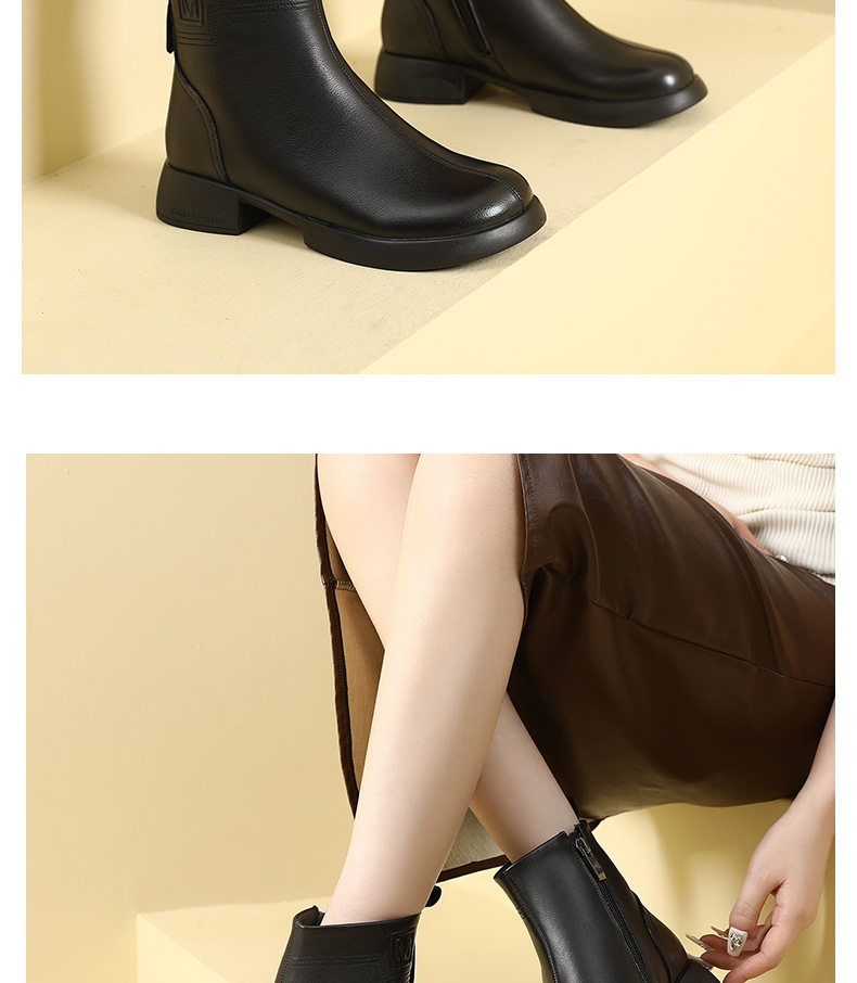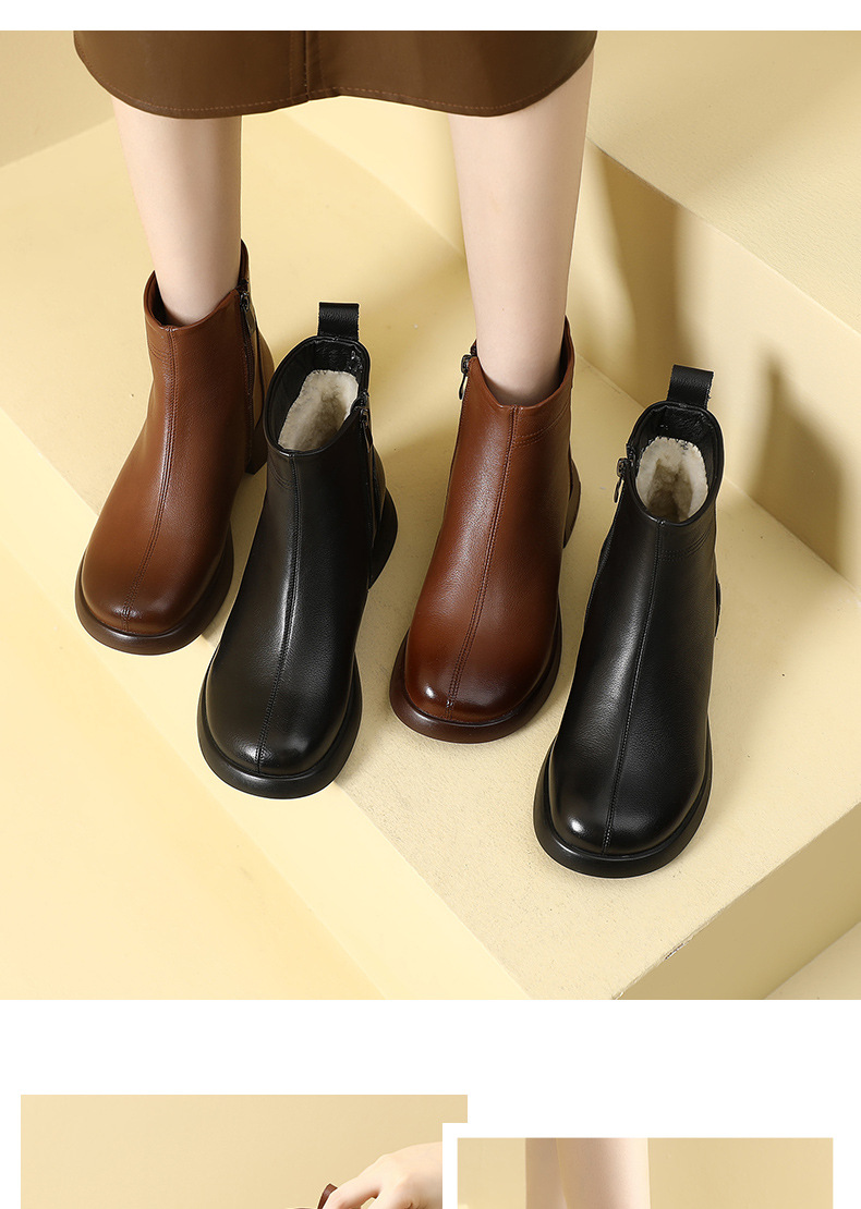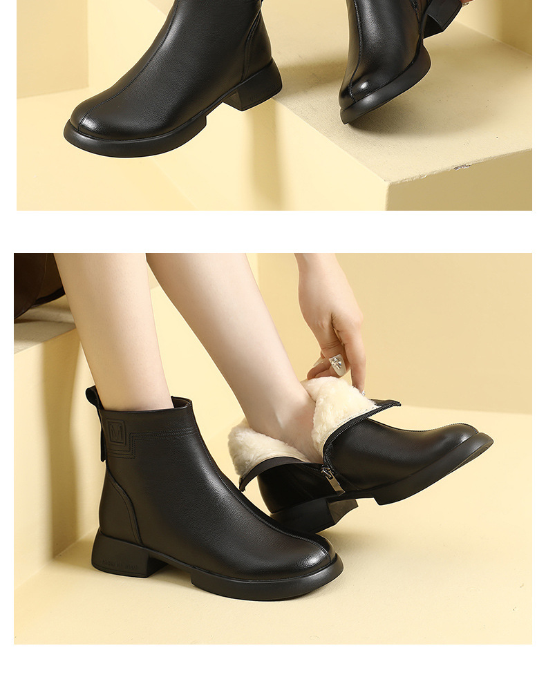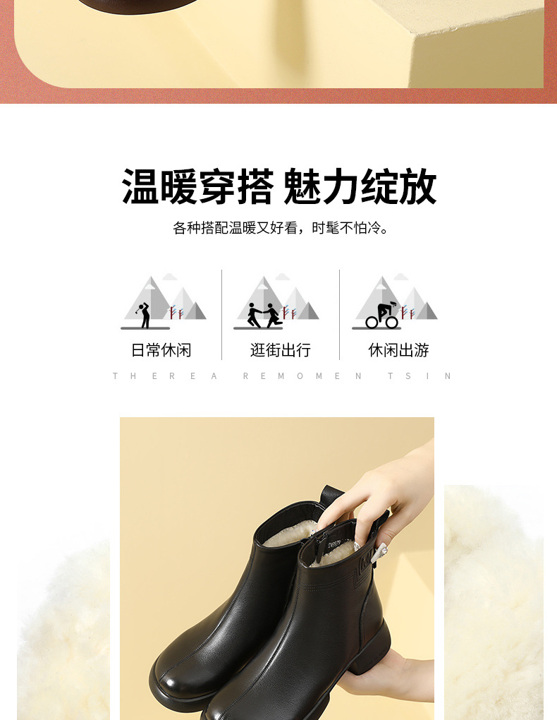 丁摩 雪地靴女秋冬真皮后拉链英伦厚底羊毛里粗跟百搭大码短靴5ZF-9979