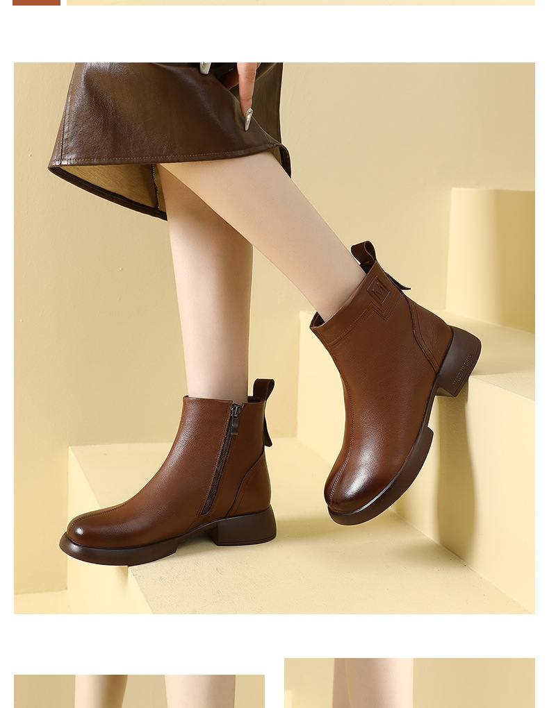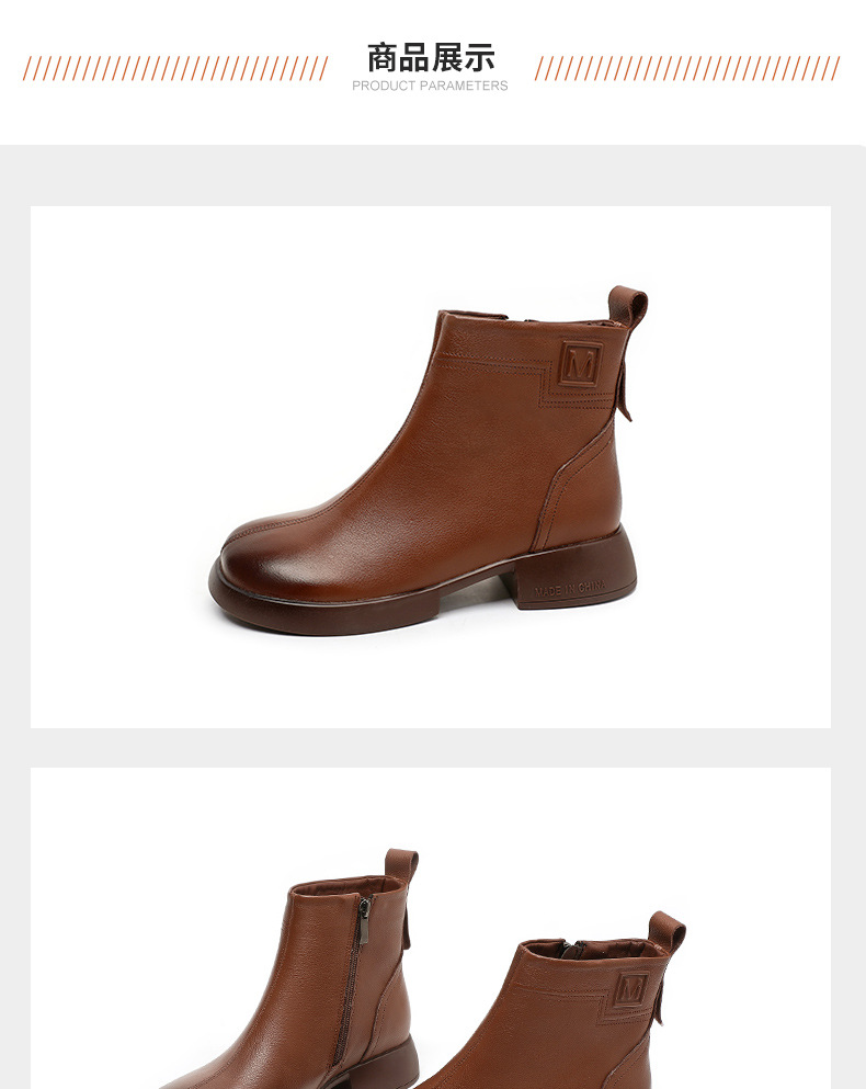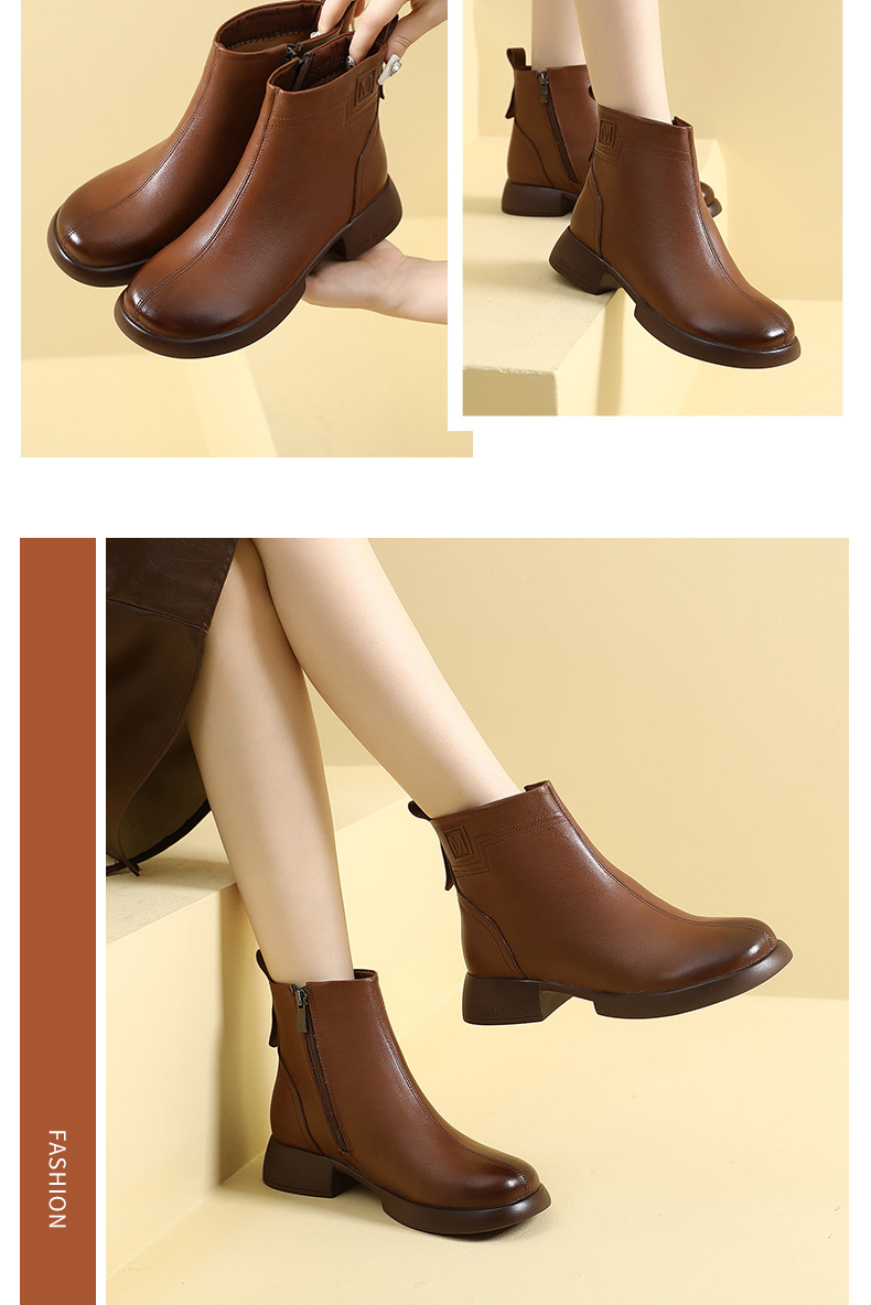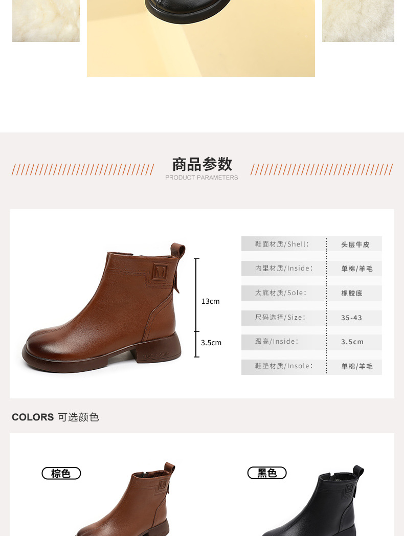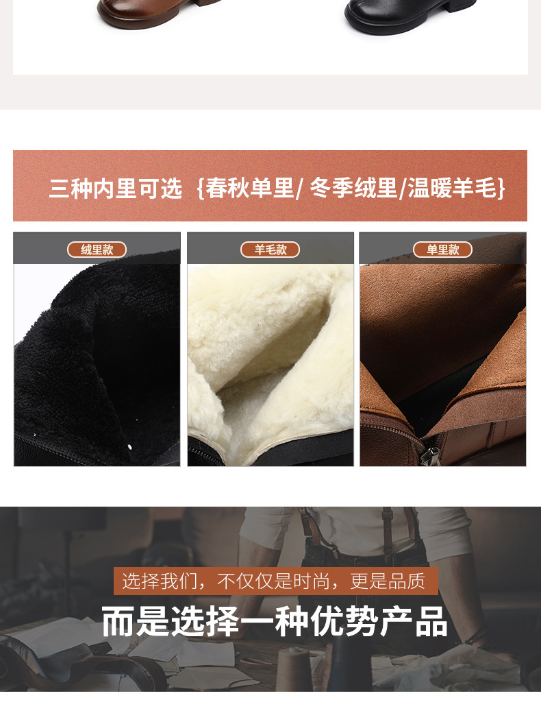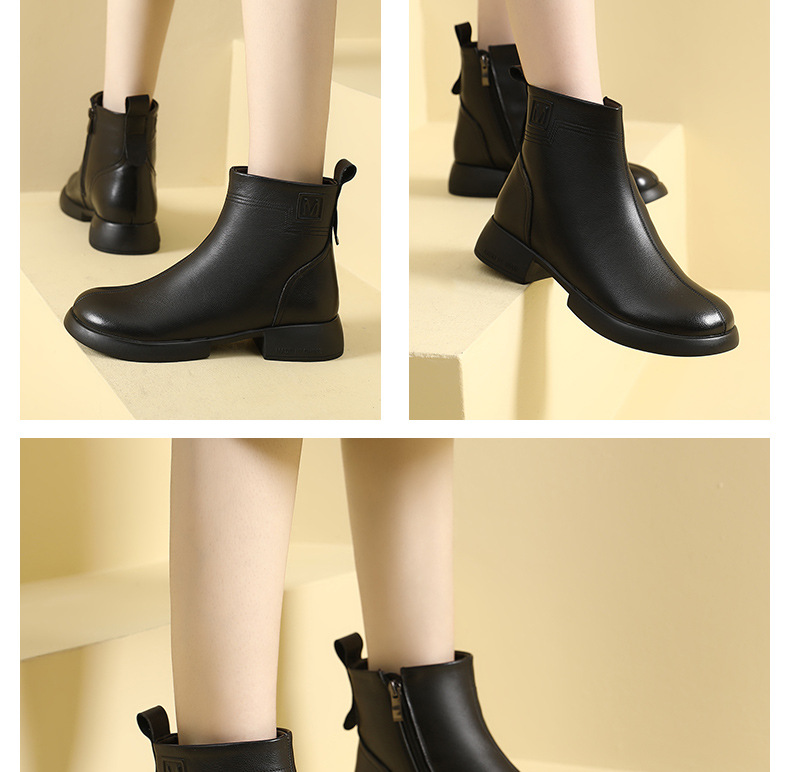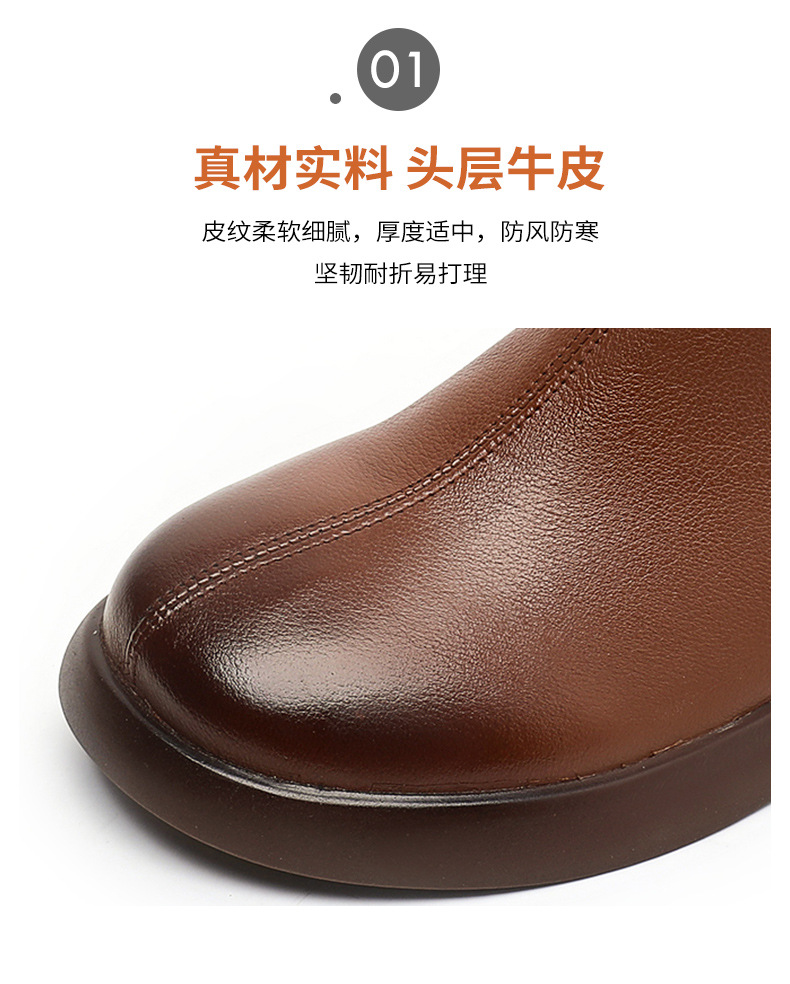 丁摩 雪地靴女秋冬真皮后拉链英伦厚底羊毛里粗跟百搭大码短靴5ZF-9979