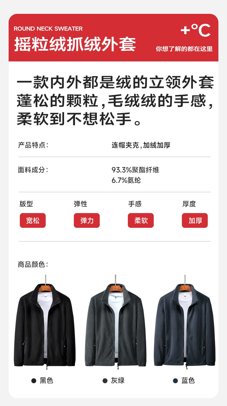 【新款DTH】大依优型大码摇粒绒外套立领抓绒开衫休闲弹力男宽松加肥加大码秋装上衣胖子