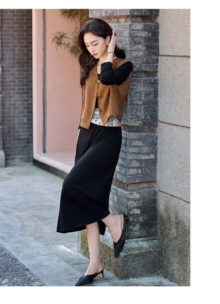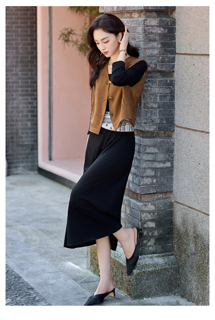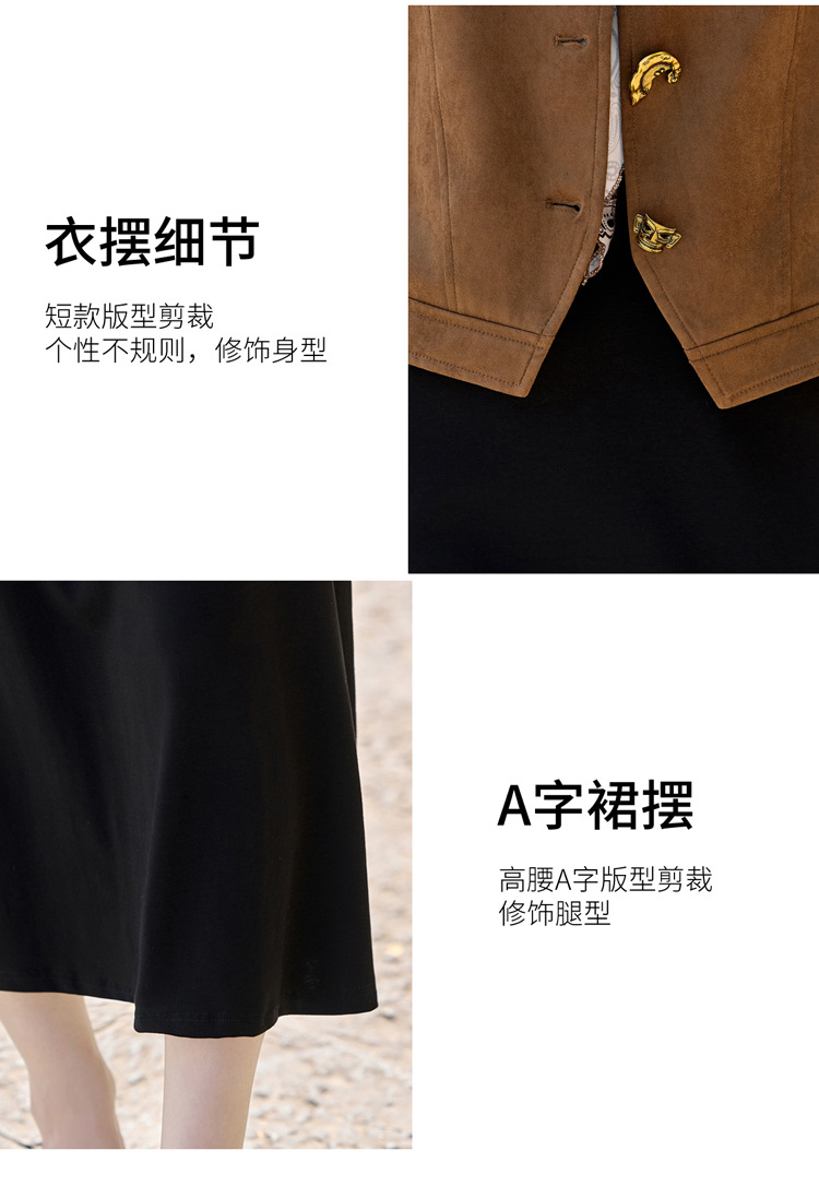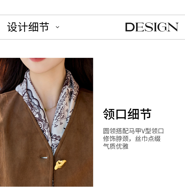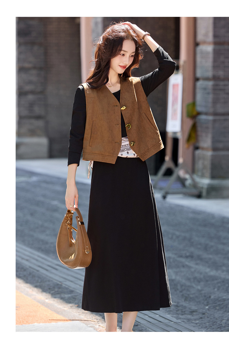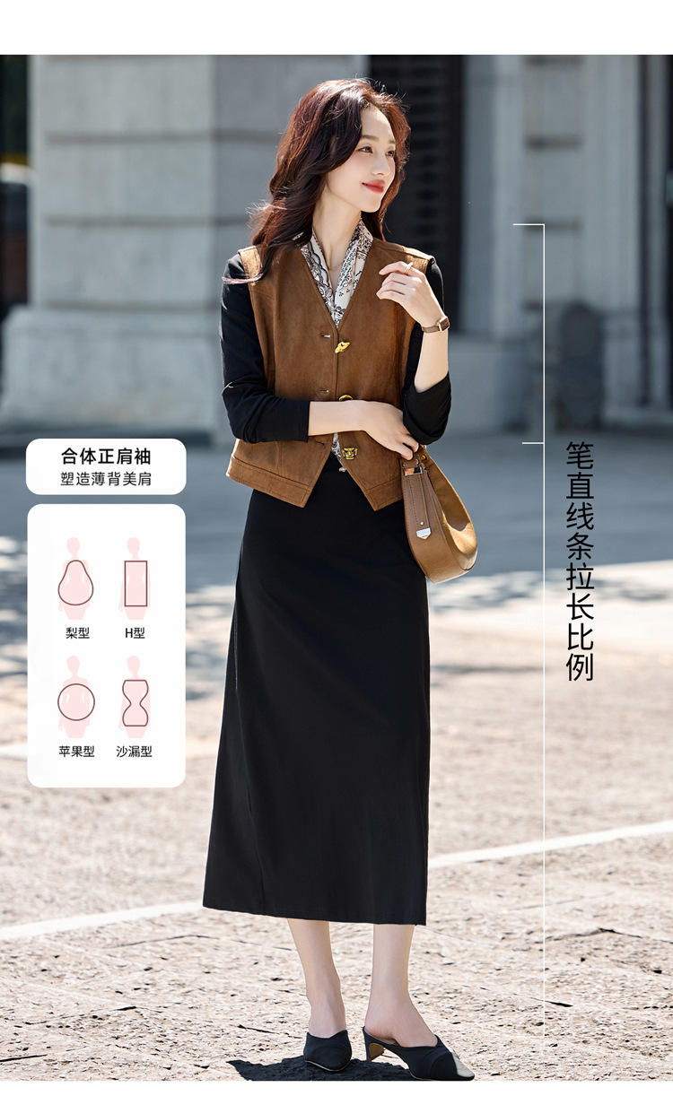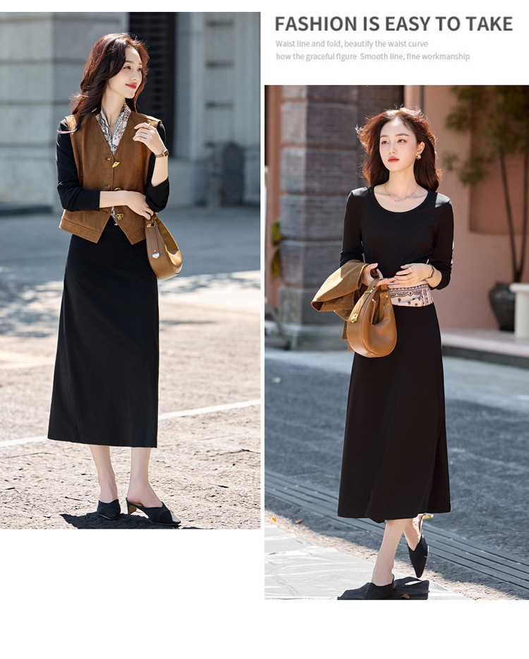 韩系时尚气质麂皮绒马甲,丝巾显瘦打底裙两件套HR-YF2621