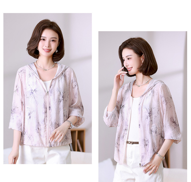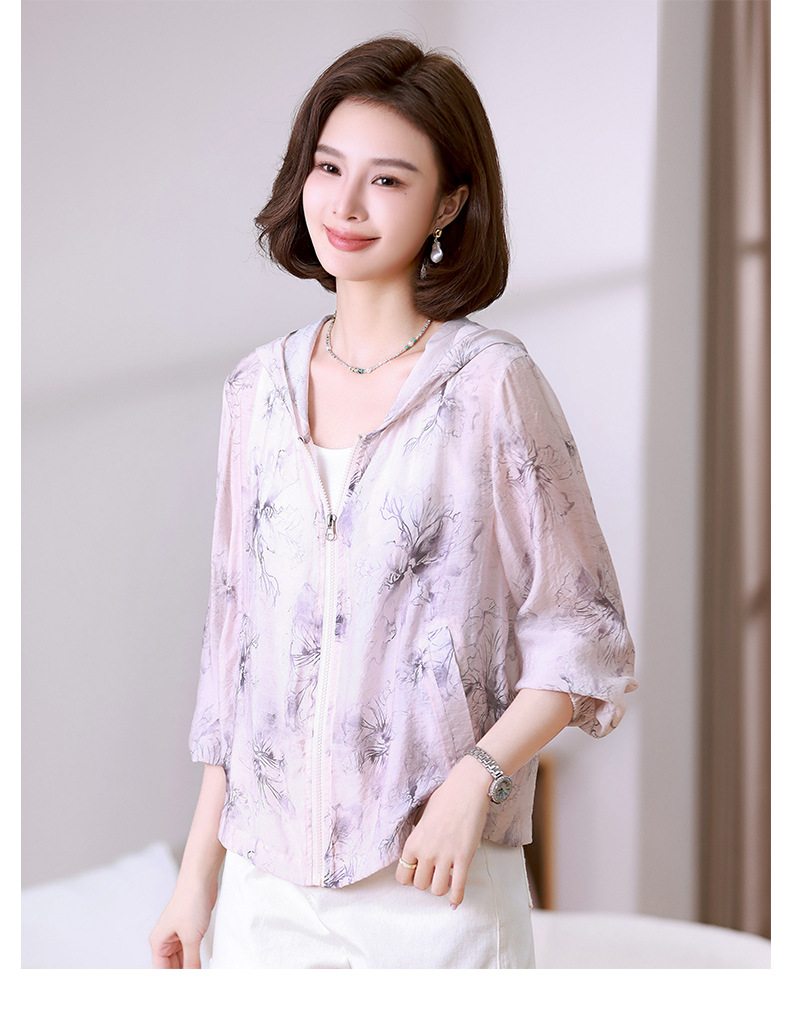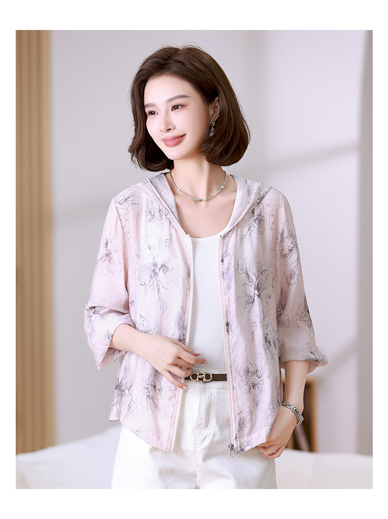 雀说 时尚轻薄连帽开衫透气防晒衣女325012