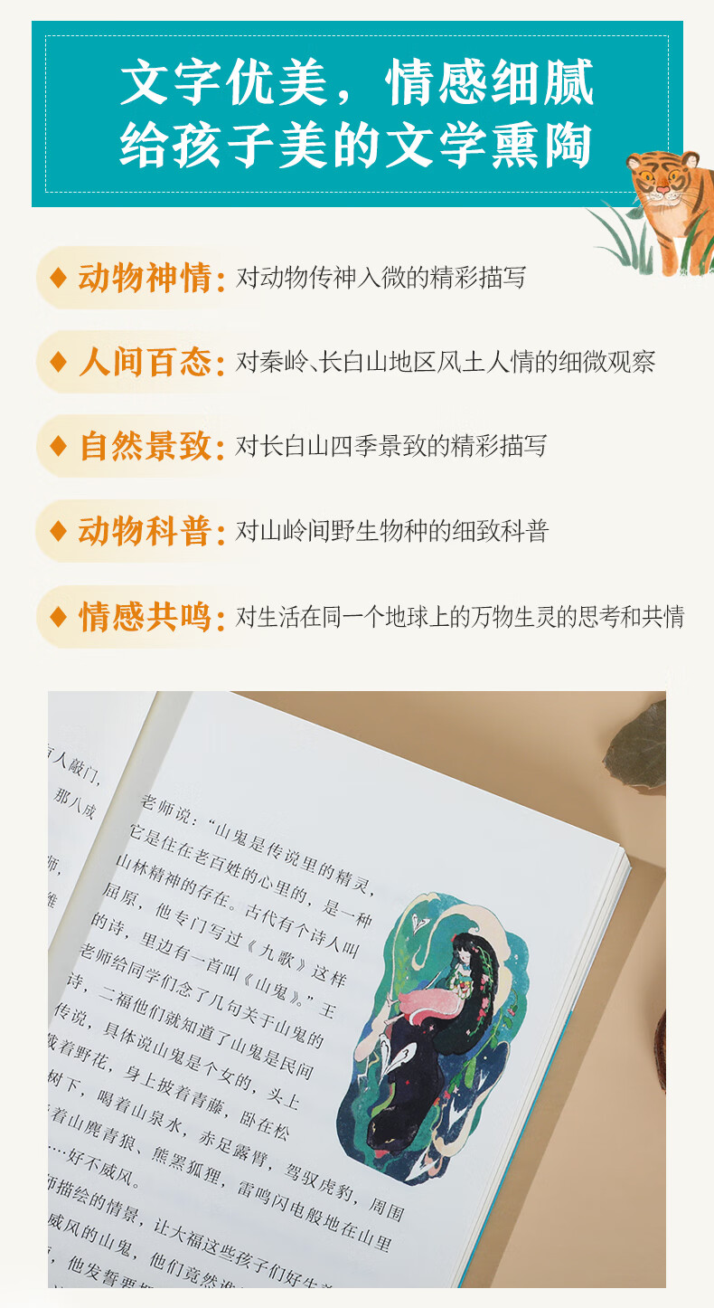 对动物传神入微的精彩描写,对人文风土的细致观察,叶老师站在孩子的角度,讲述着这座被称为“中华父亲山”——秦岭里的传奇故事。除了秦岭华南虎,故事中还出现了竹鼠、梅花鹿、豺狗、羚牛、豹猫等野生动物,它们都是这片山野不可或缺的主人和精灵。感谢叶广芩老师的精彩讲述,感谢她对万物生存与命运的思考,诚如叶老师在后记中所写:“地球上不应该只有人类。”因为我们如何在地球上和谐的生存,永远是人类的极命题。