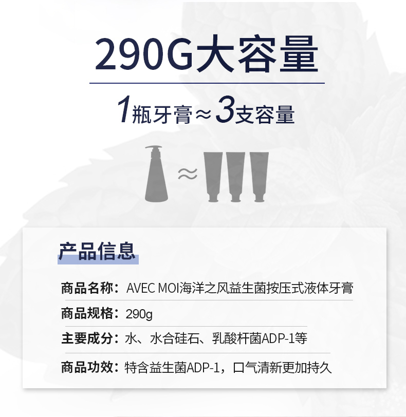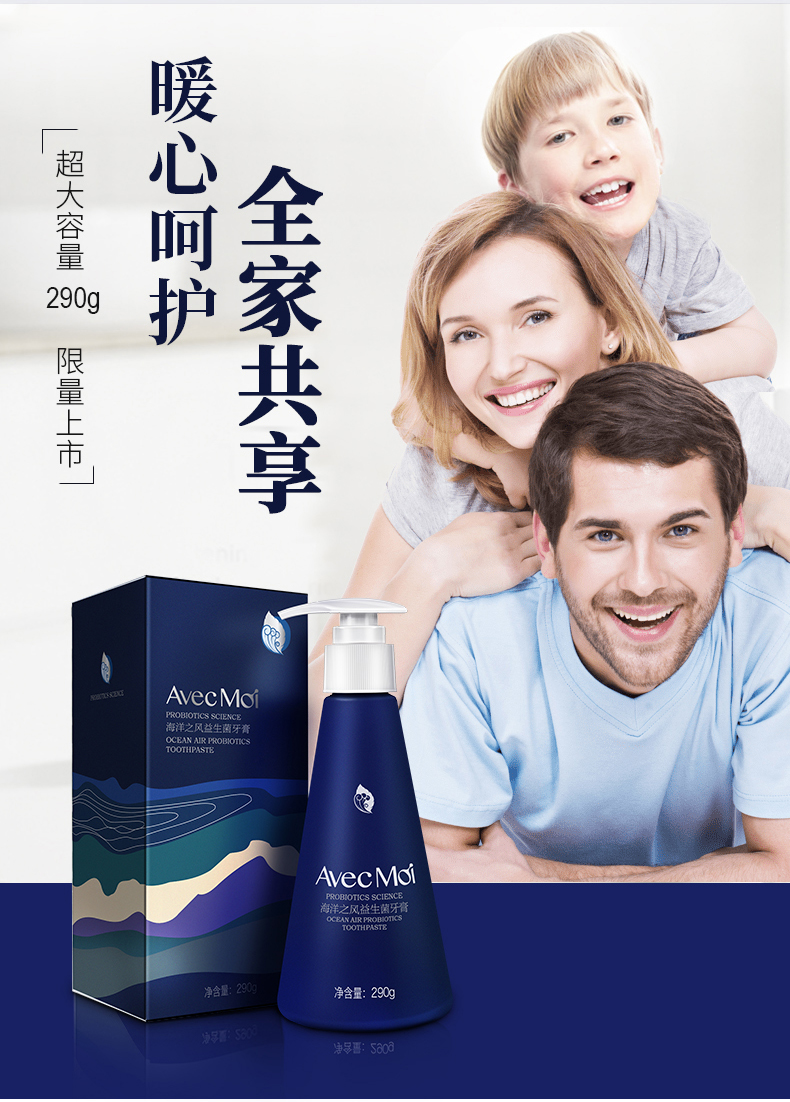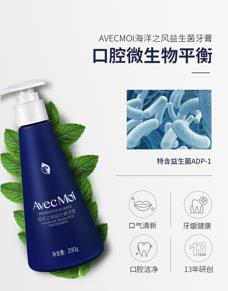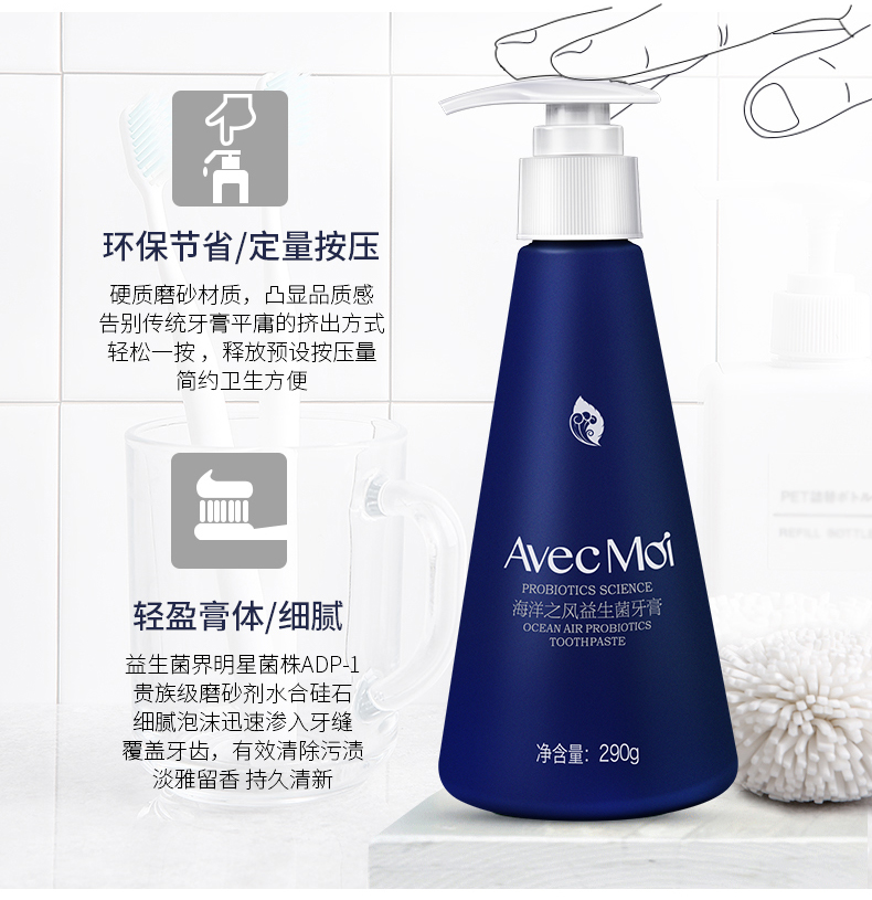 (官方直供)海洋之风 Avecmoi 益生菌牙膏 按压式海洋之风益生菌牙膏 女男士清新口气口腔异味