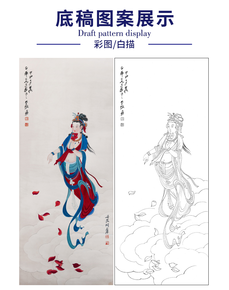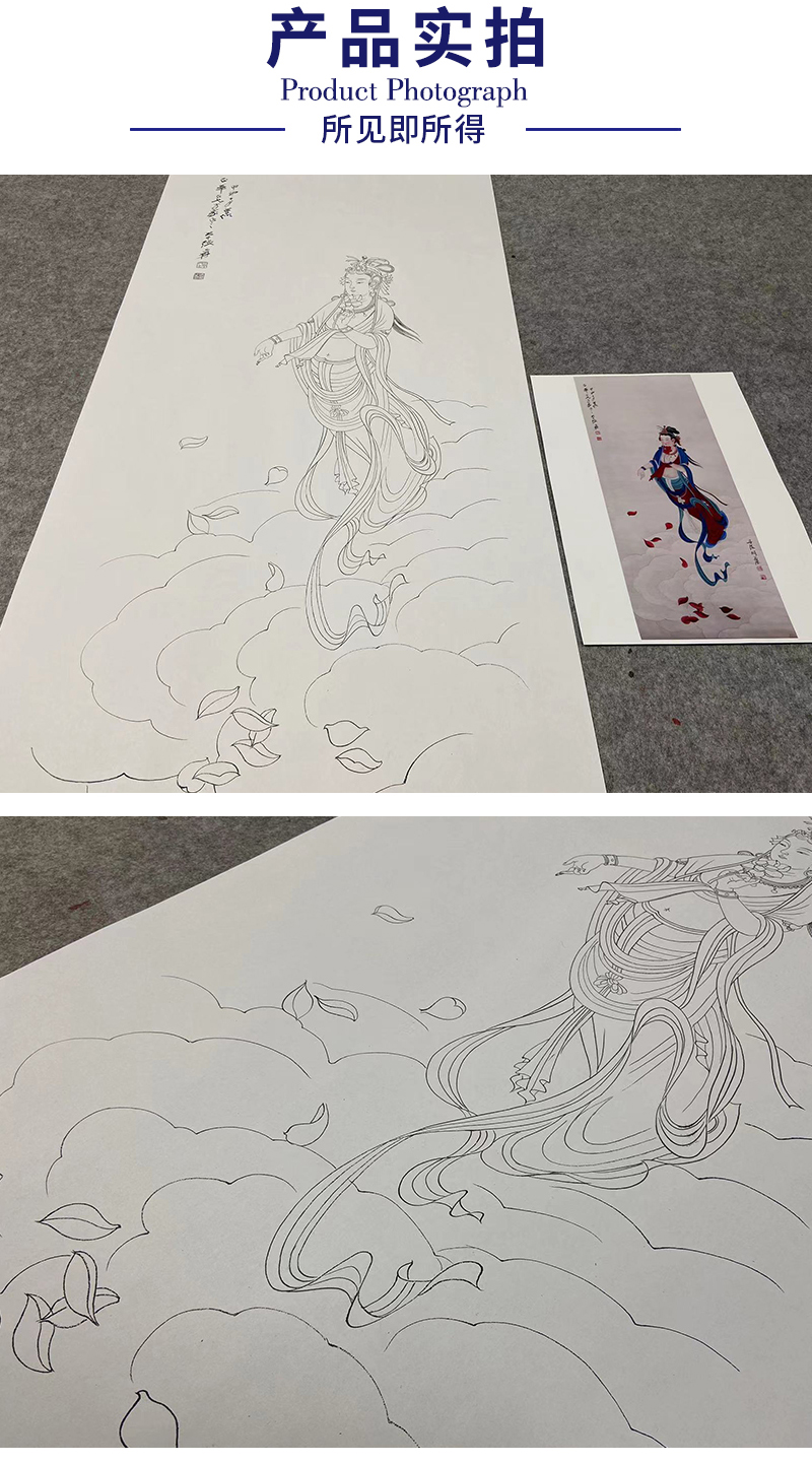 【大彩图】张大千工笔画白描底稿《菩萨造像》观音佛像临摹勾线高清打印稿QD65