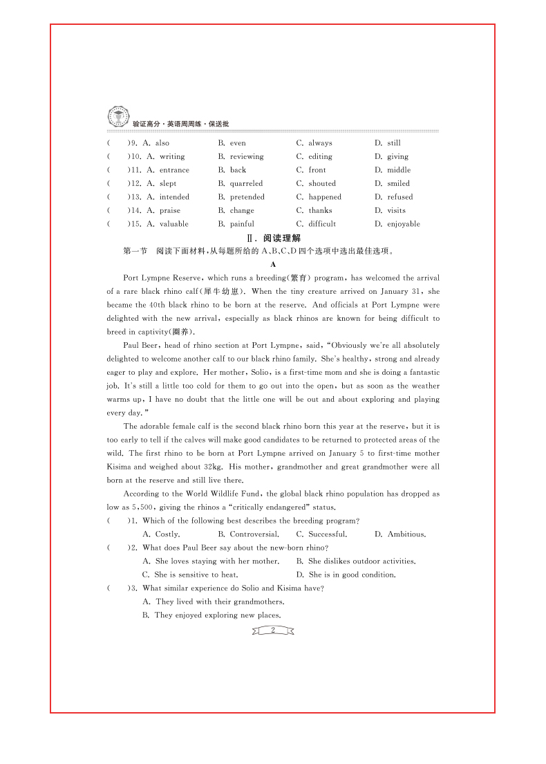 新版 验证高分英语周周练 中考金版 保送批