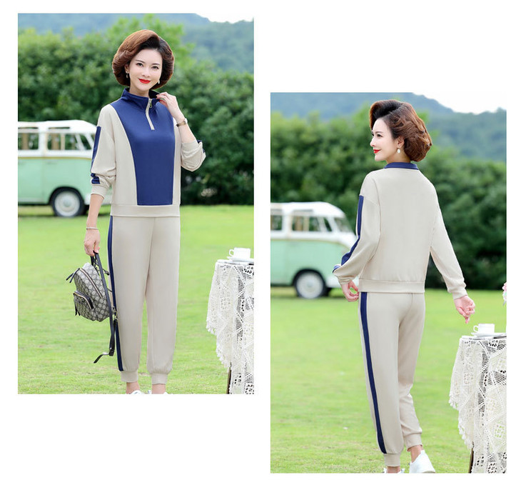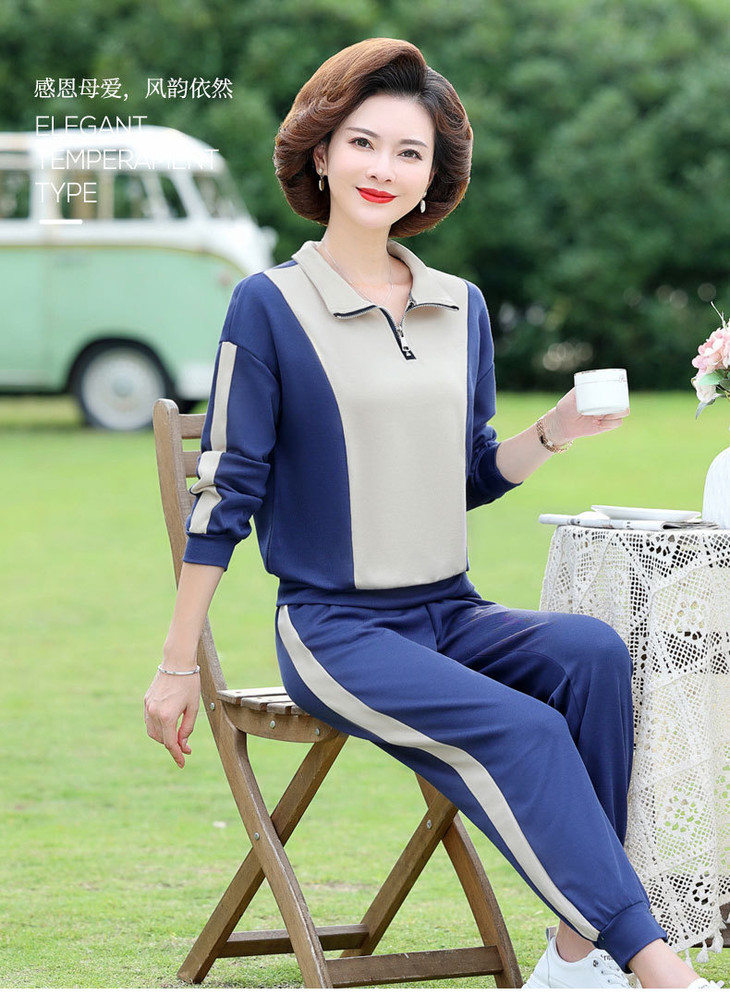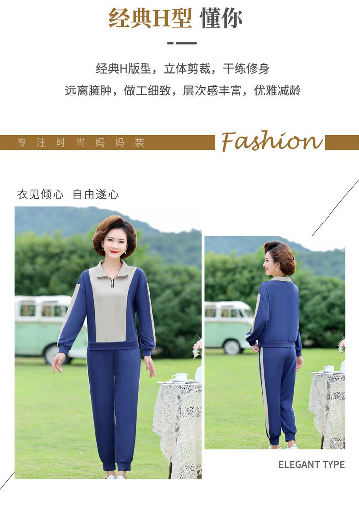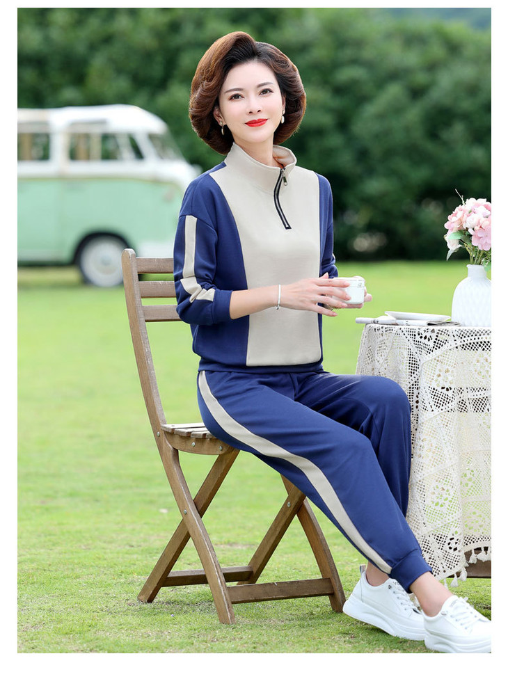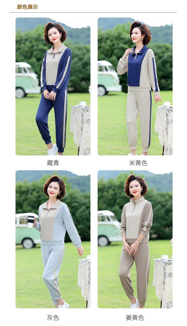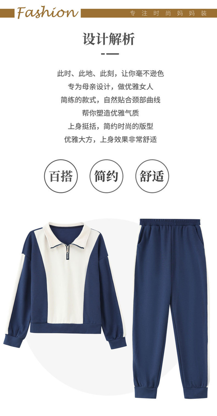 YMS-AA1149新款时尚气质休闲运动拼色拉链翻领卫衣裤子两件套