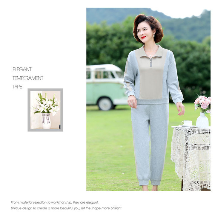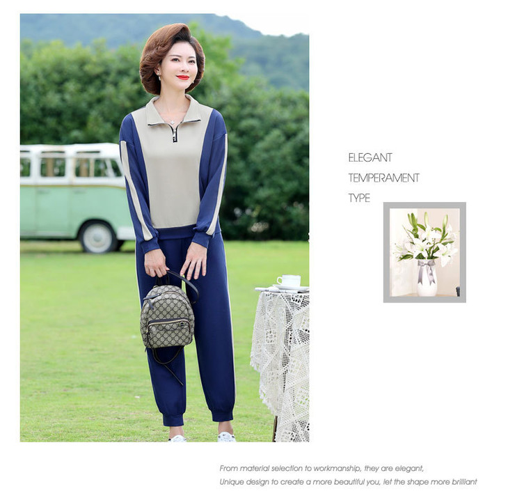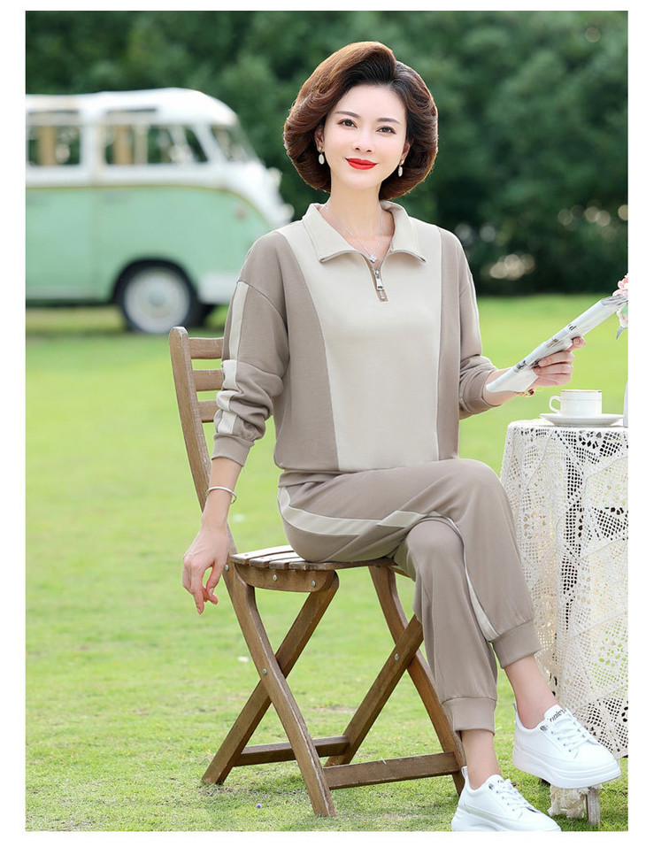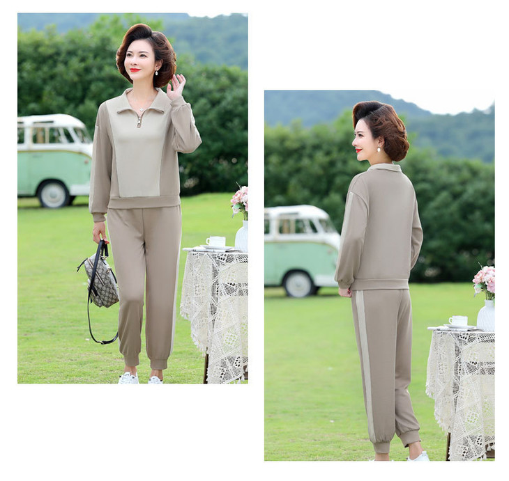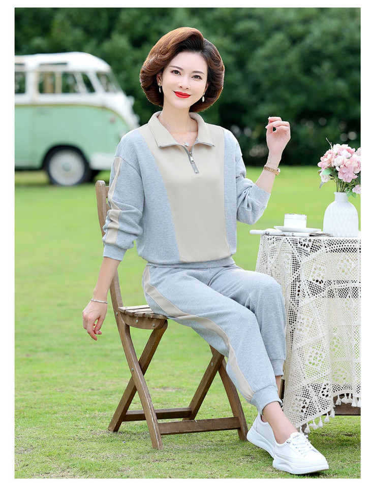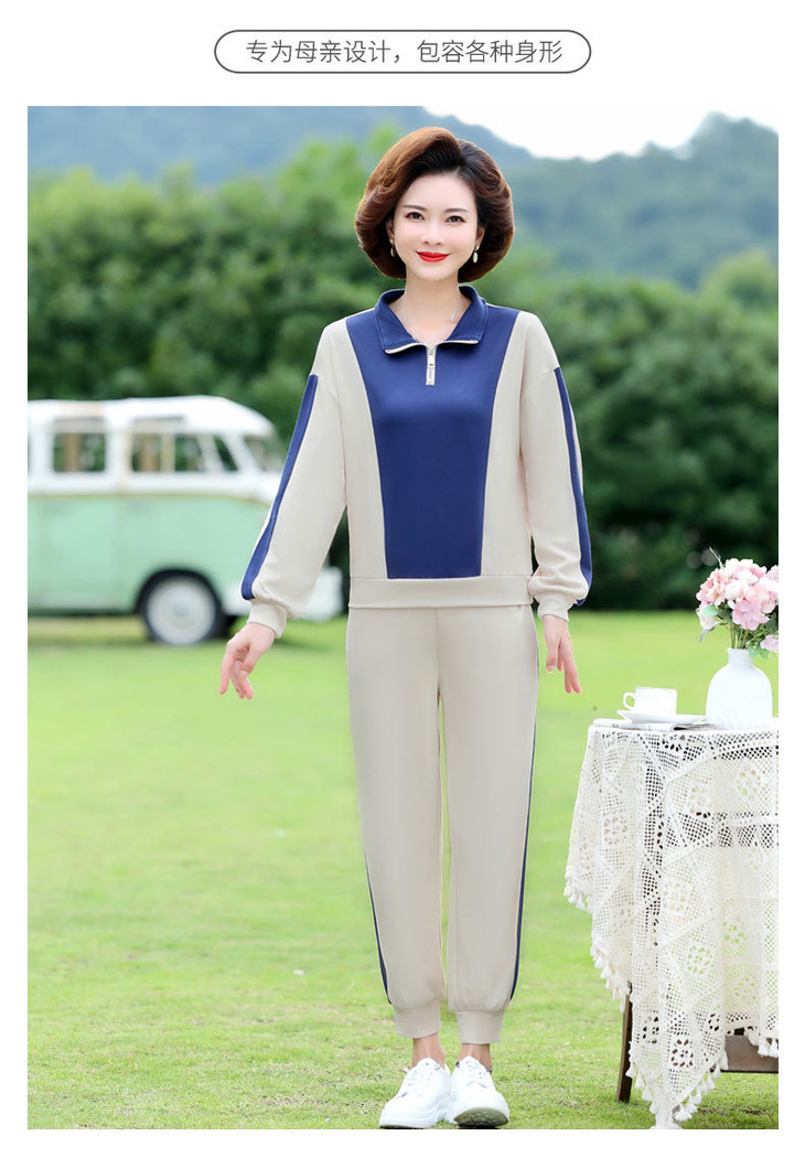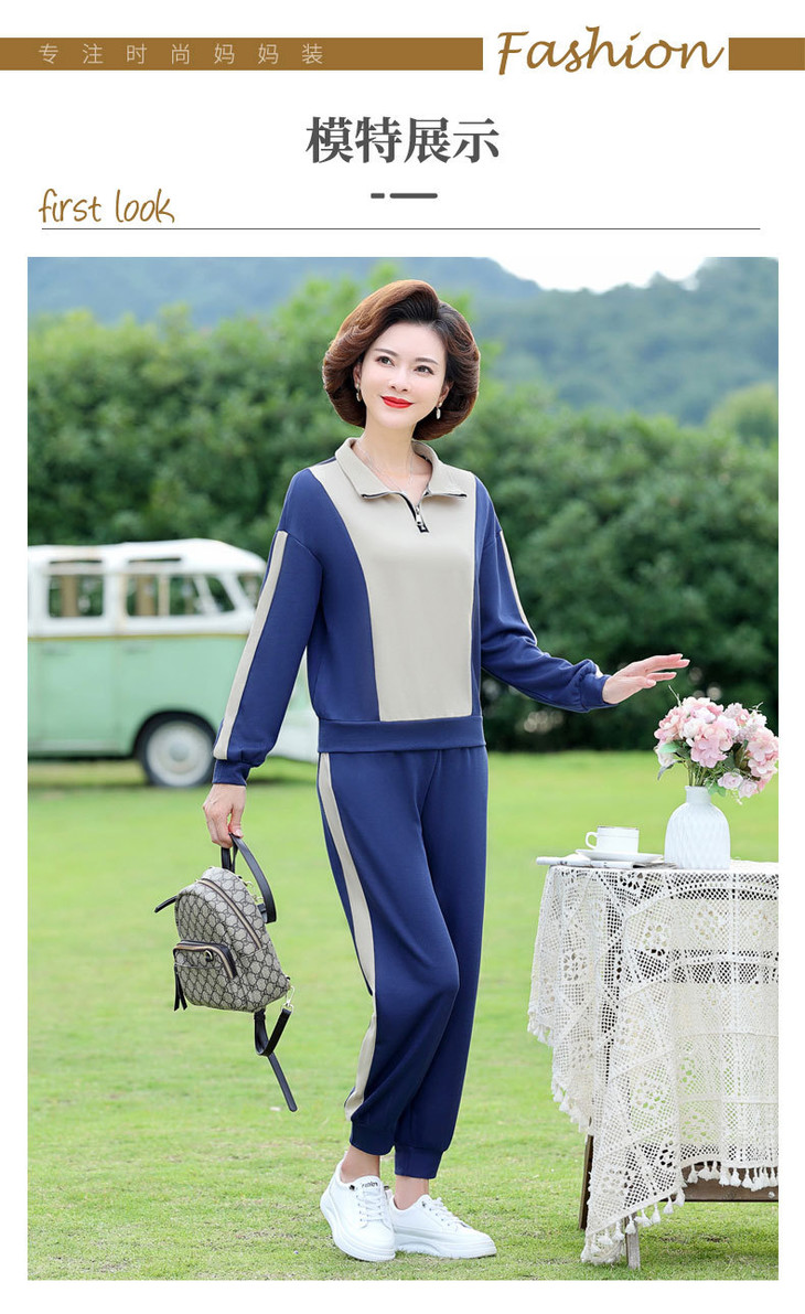 YMS-AA1149新款时尚气质休闲运动拼色拉链翻领卫衣裤子两件套
