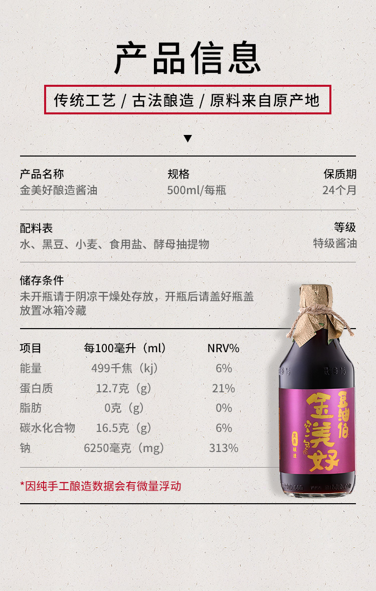 【豆油伯】金美好黑豆釀造醬油500ml零添加
