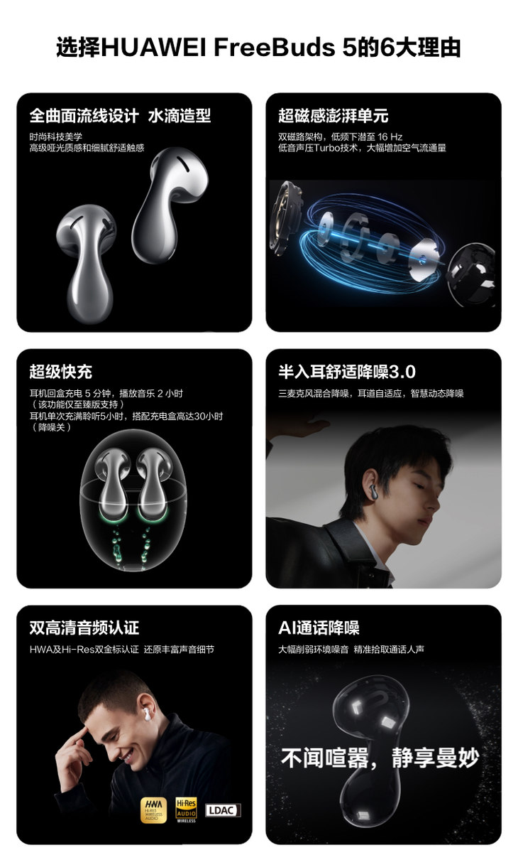 HUAWEI FreeBuds 5 至臻版 真无线蓝牙舒适降噪运动耳机