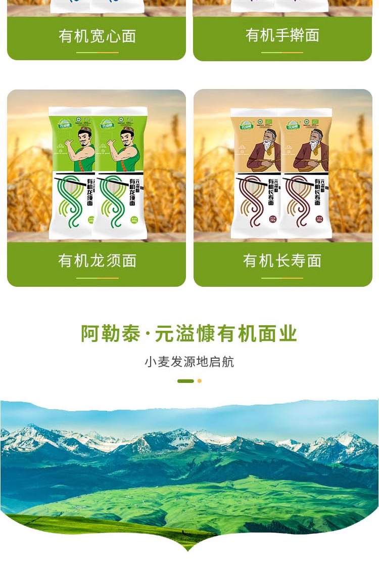 元溢慷·有机面条组合 280g*4包(龙须面+长寿面+手擀面+宽心面)