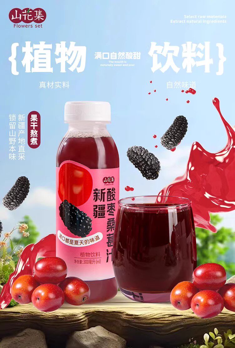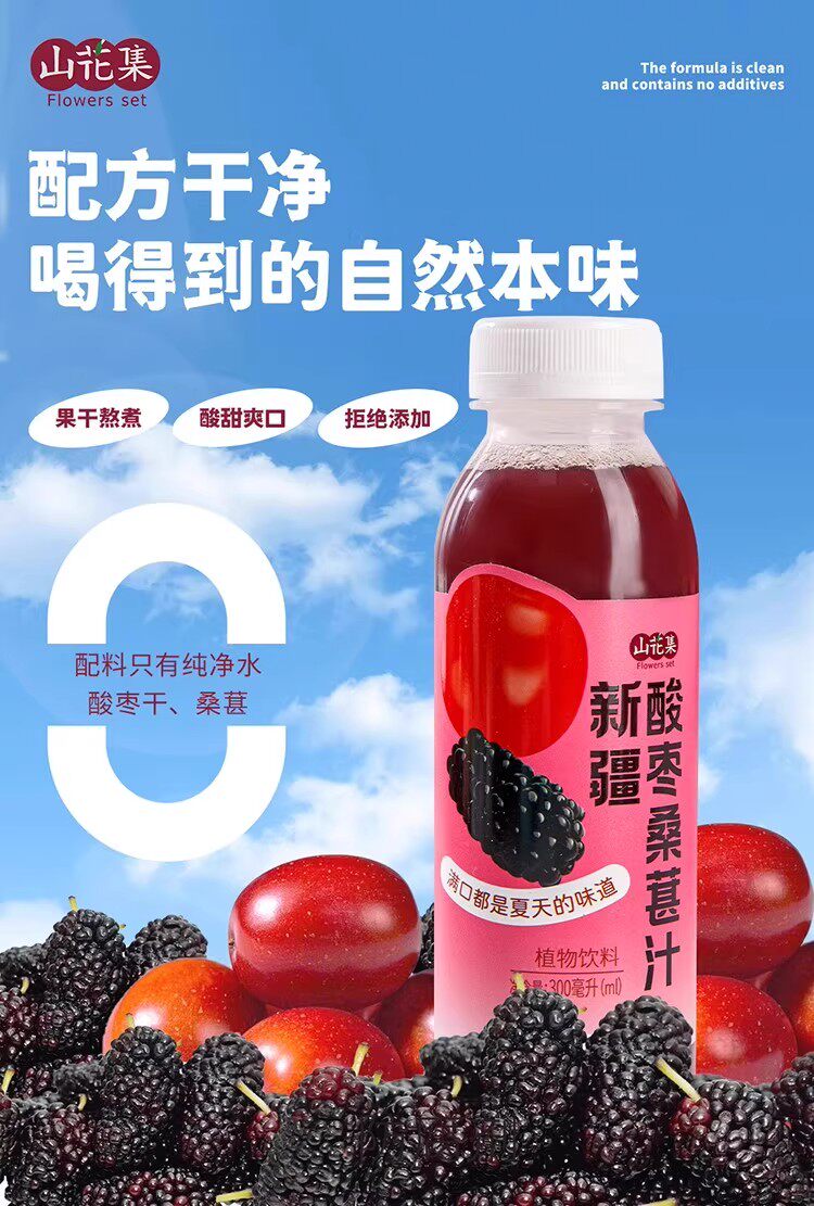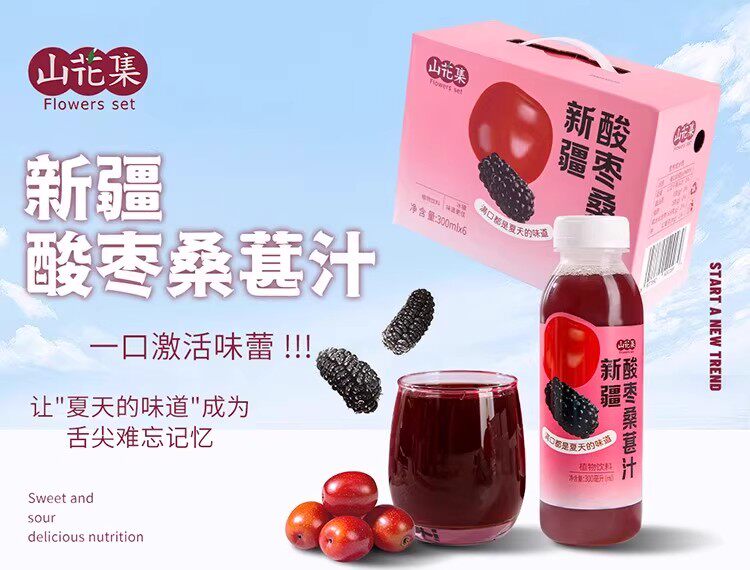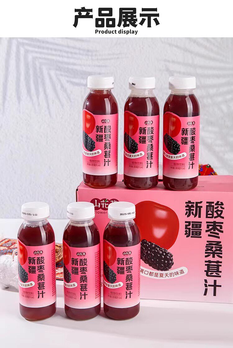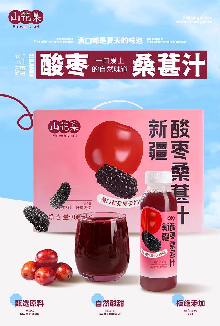 山花集·新疆酸枣桑葚汁300ml*6瓶 果汁含量100%