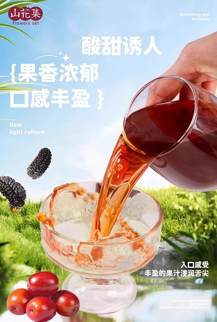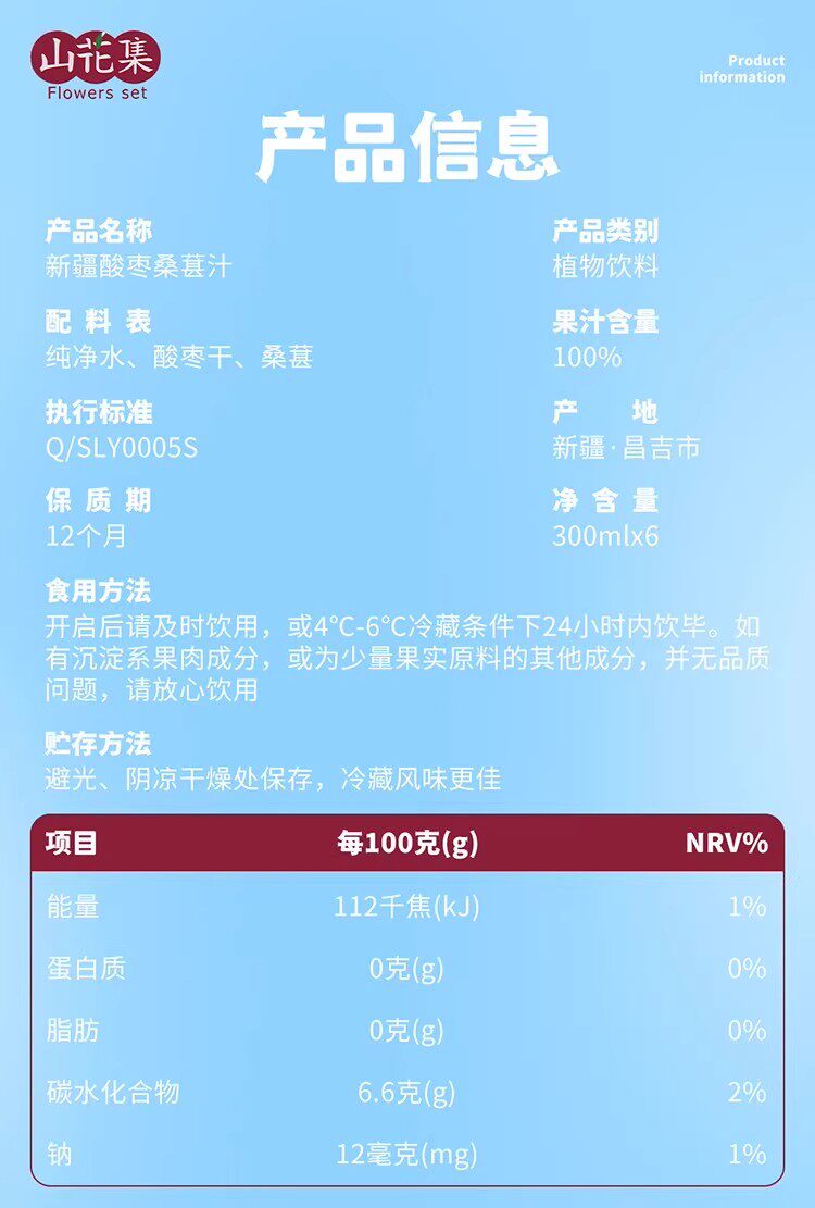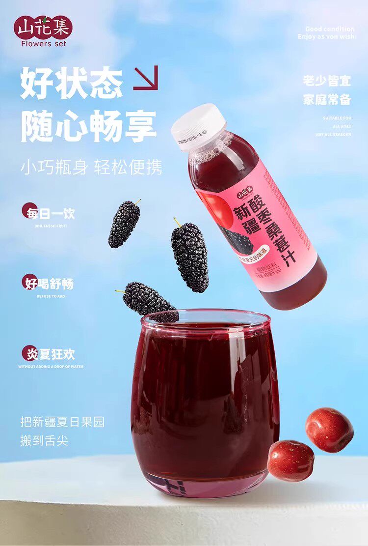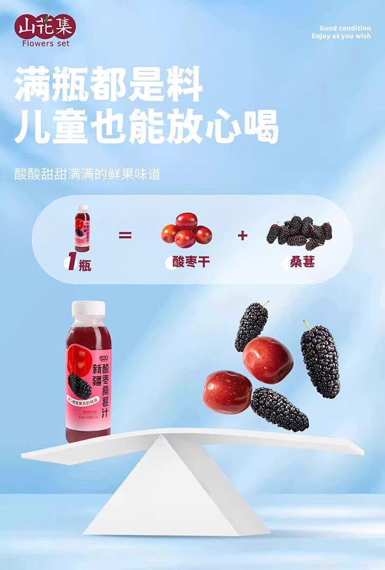 山花集·新疆酸枣桑葚汁300ml*6瓶 果汁含量100%