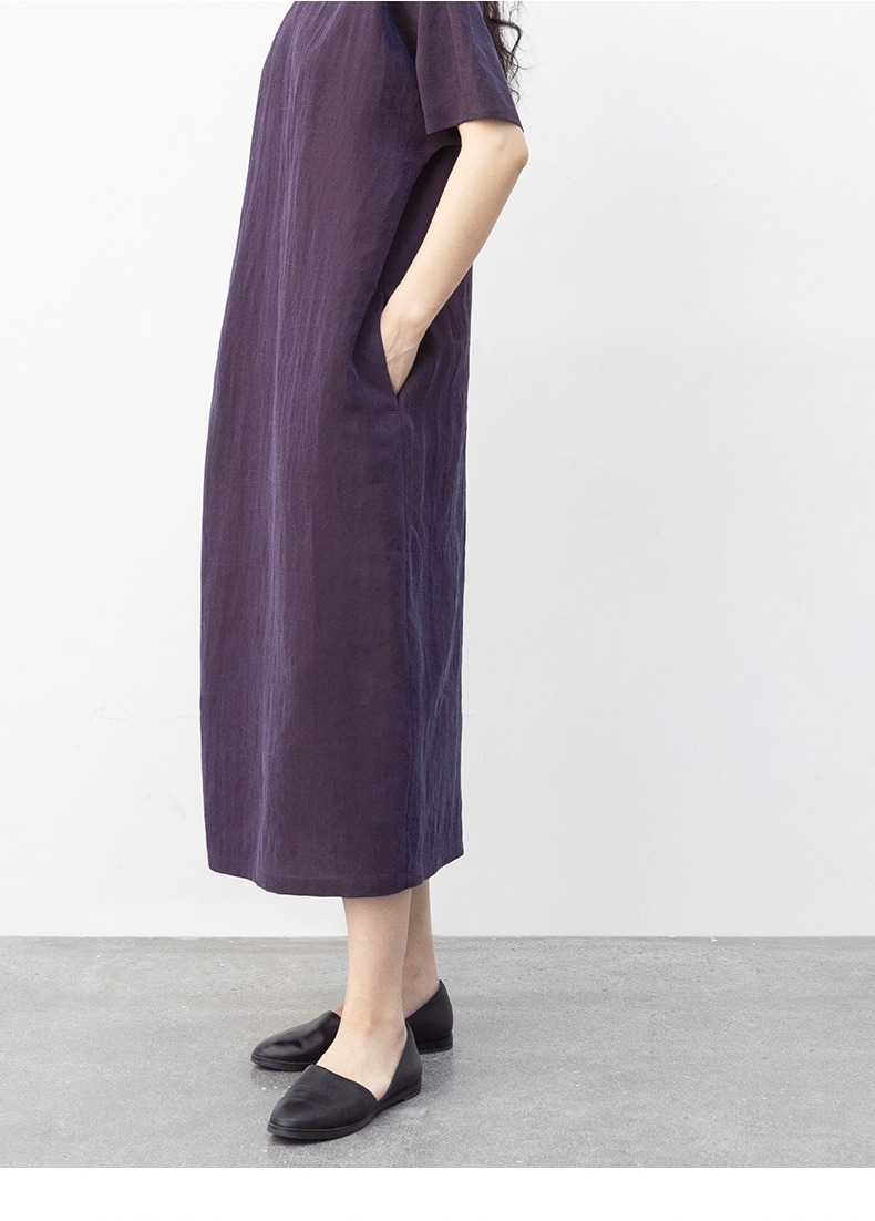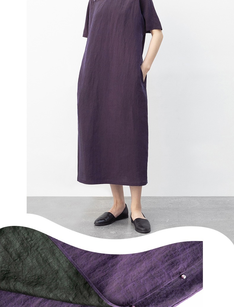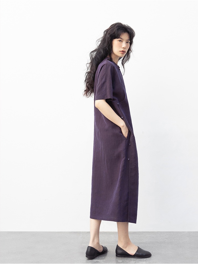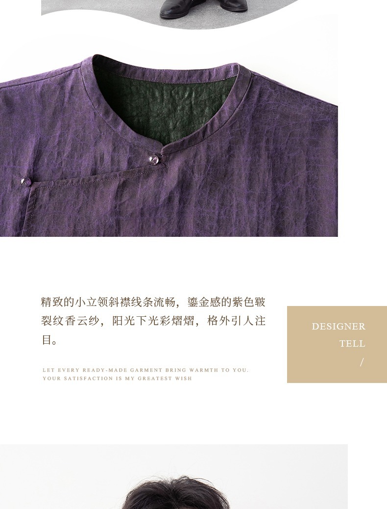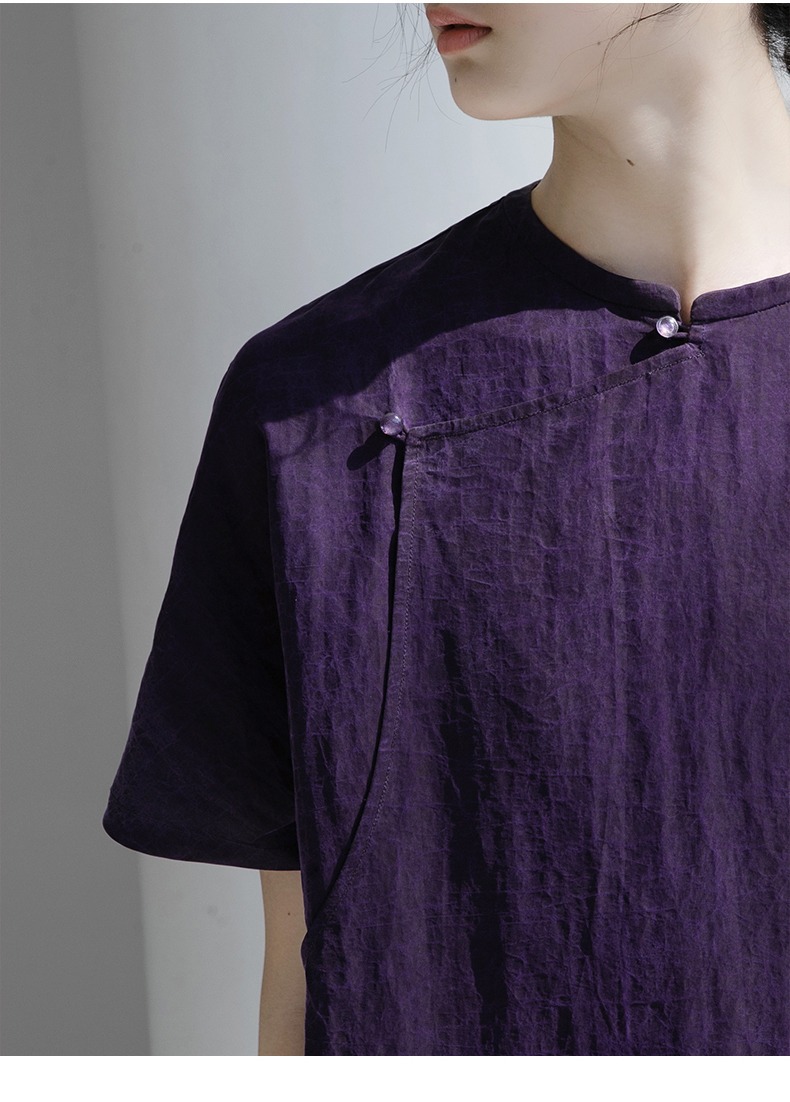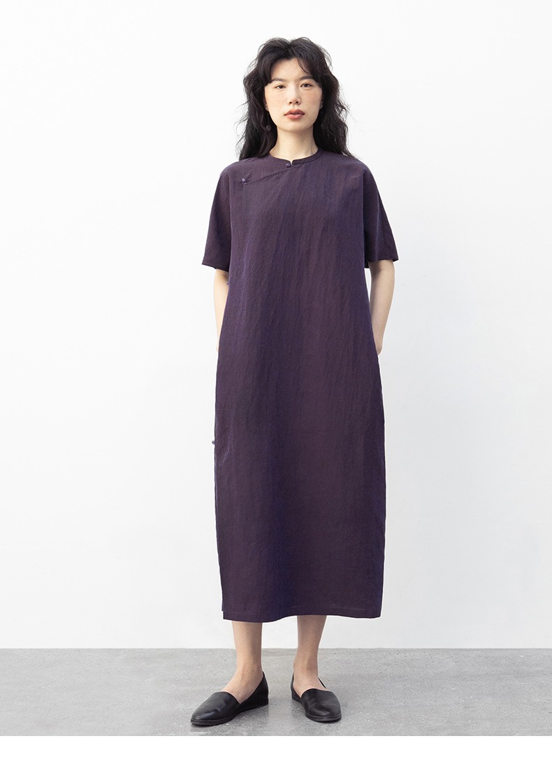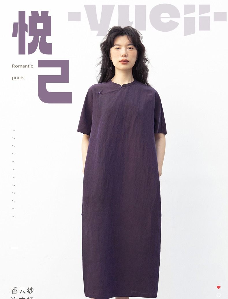 丁摩 真丝香云纱龟裂纹新中式紫色改良旗袍100%桑蚕丝连衣裙5ZF-34710