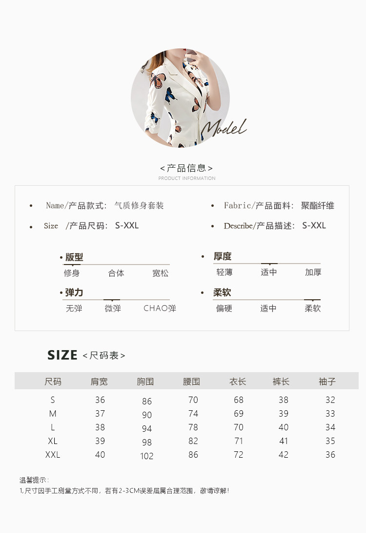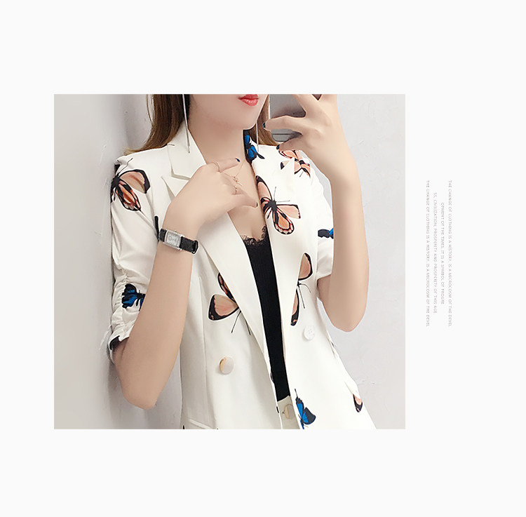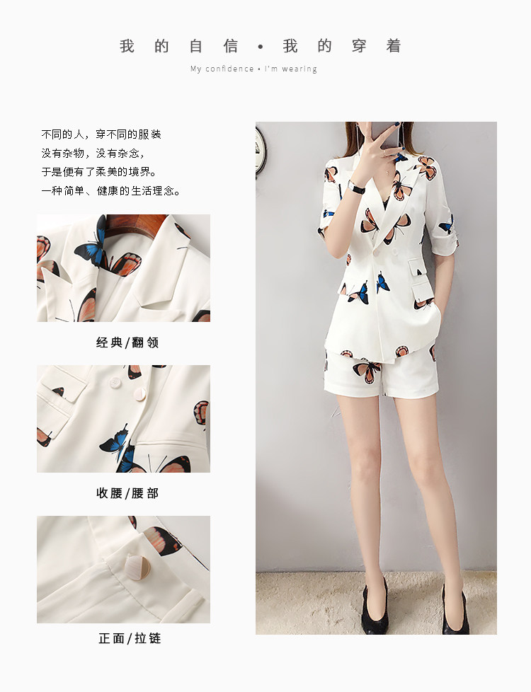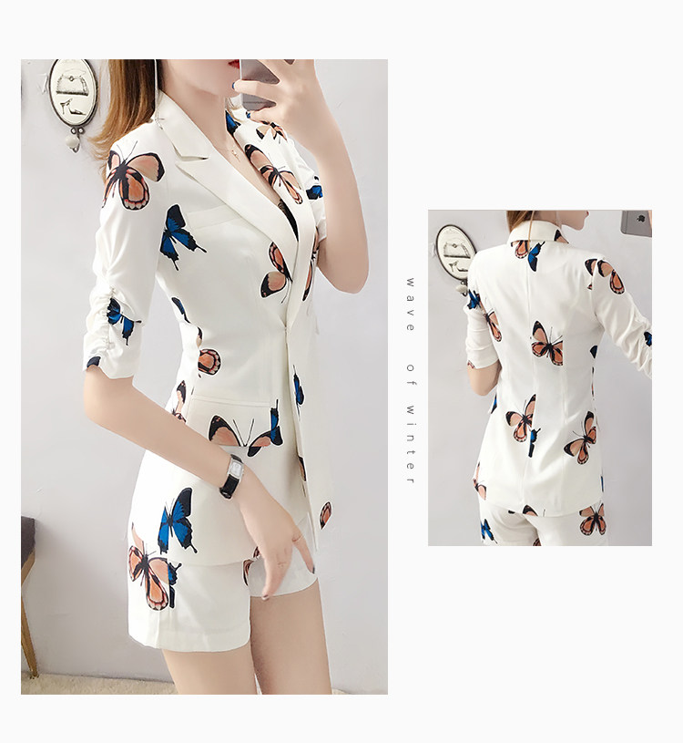 SWYC-蝴蝶印花小西服套装 2020新款韩版短裤洋气两件套