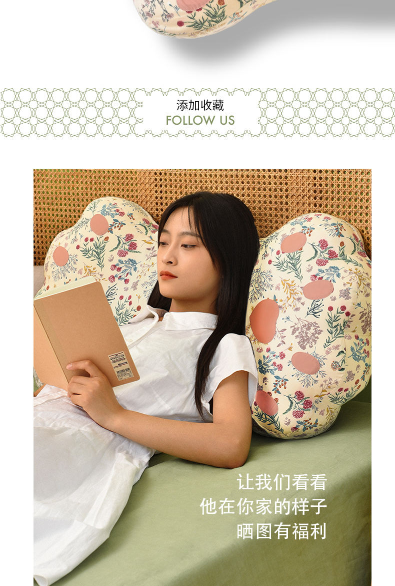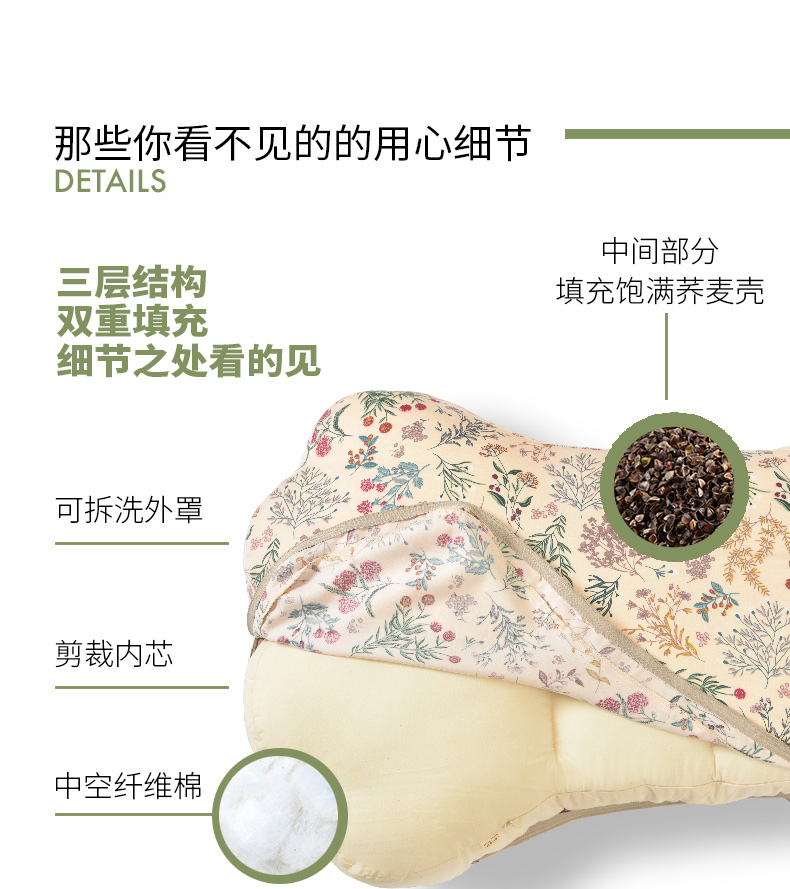雅蕊系列猫爪枕头双色荞麦壳助睡眠中空纤维棉床头靠
