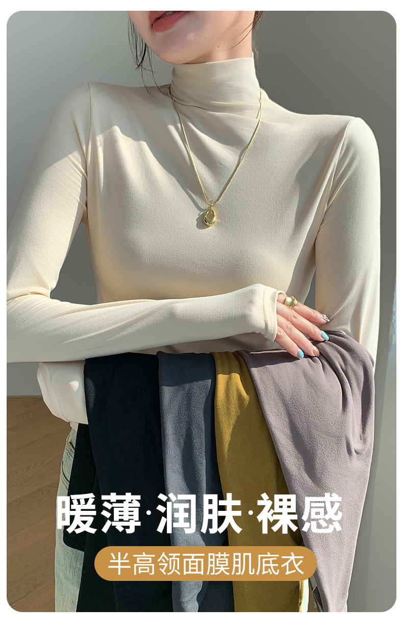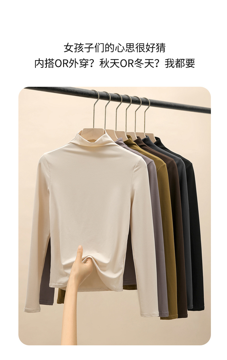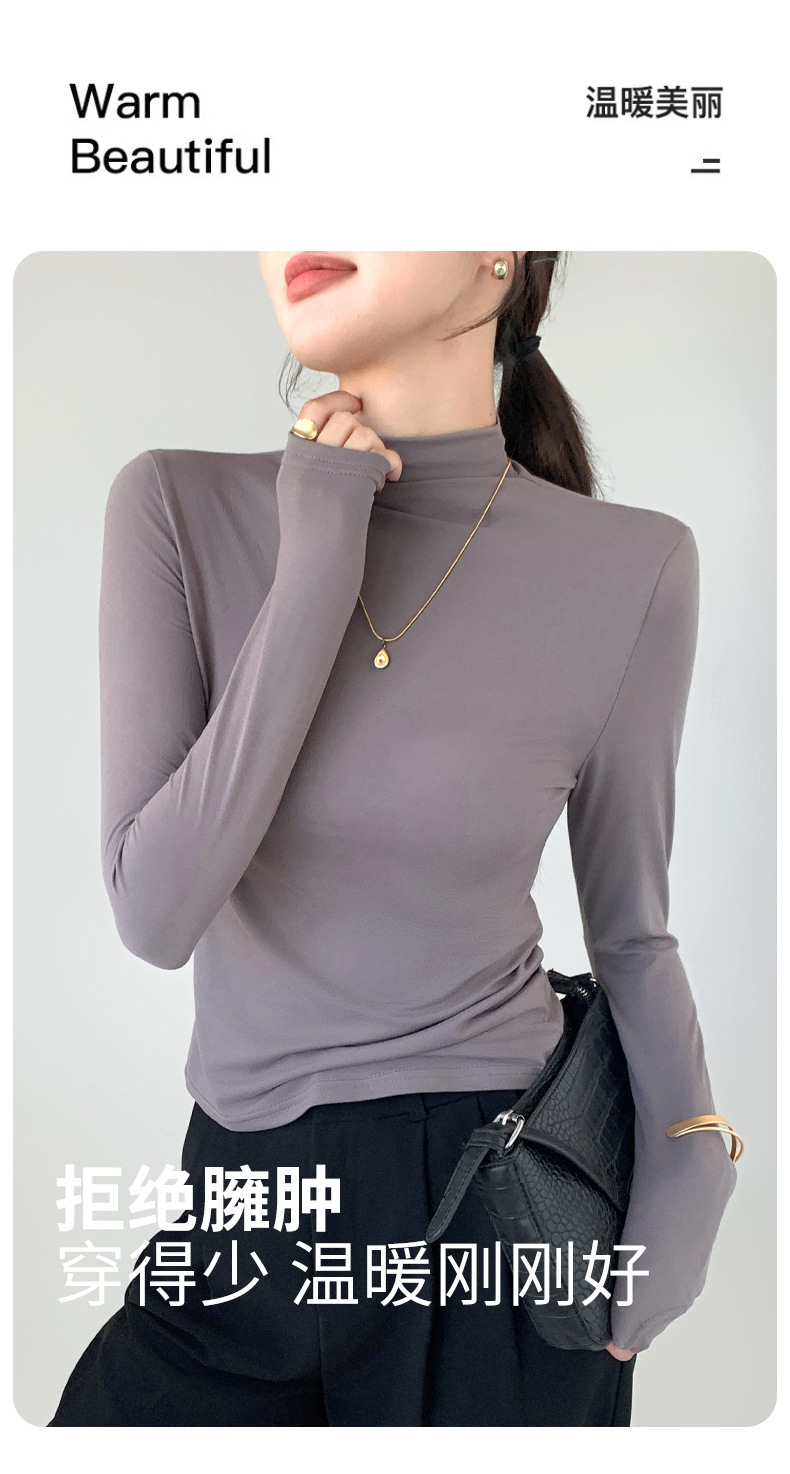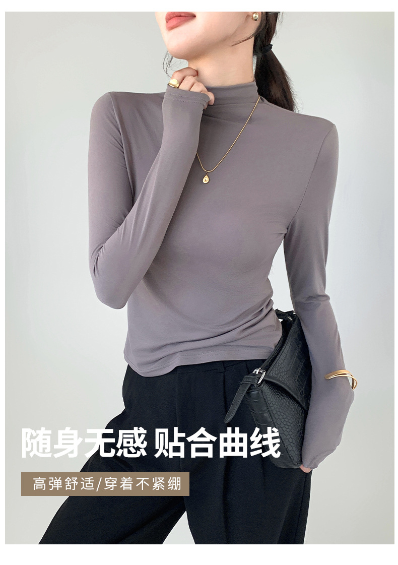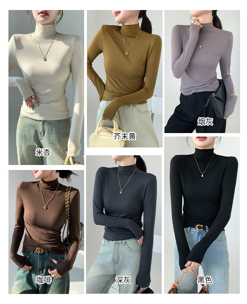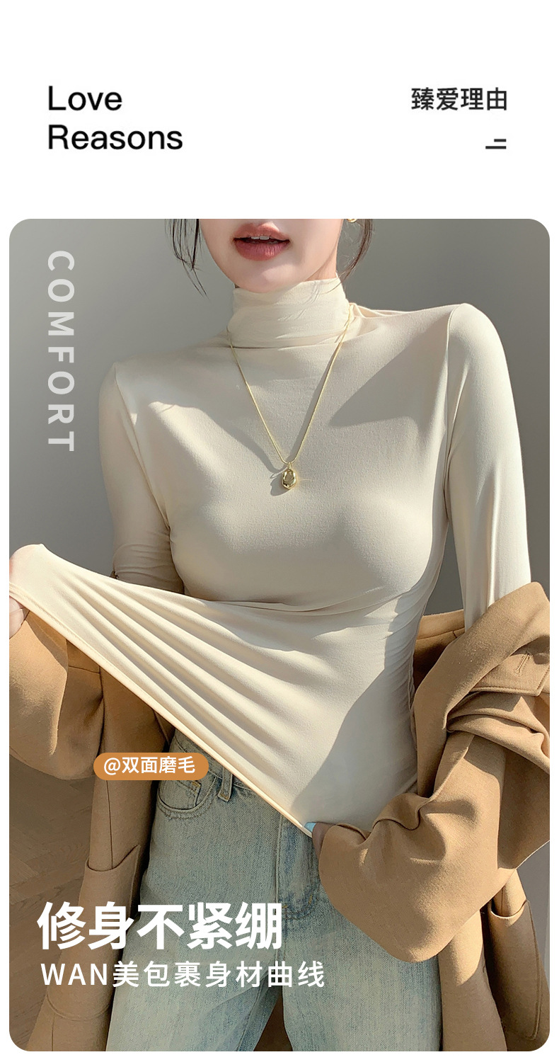 雀说半高领面膜衫女内搭秋冬磨毛打底衫修身保暖外穿长袖T恤上衣AL528
