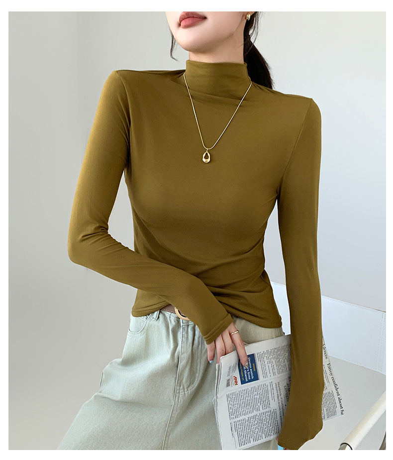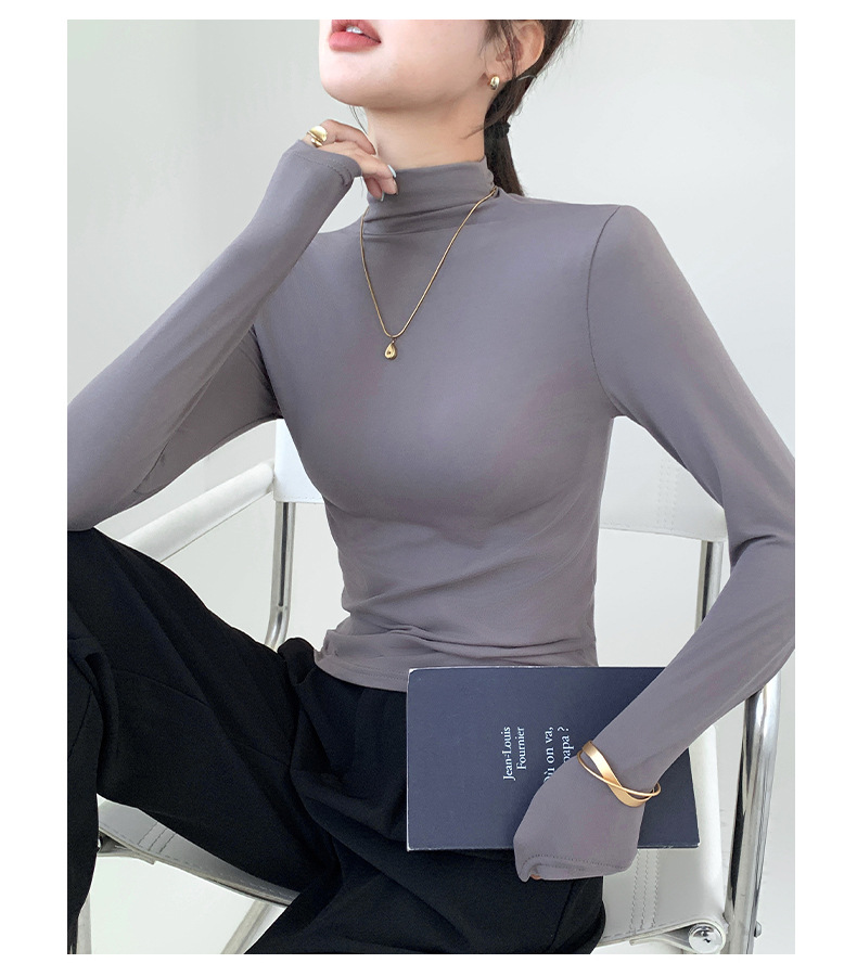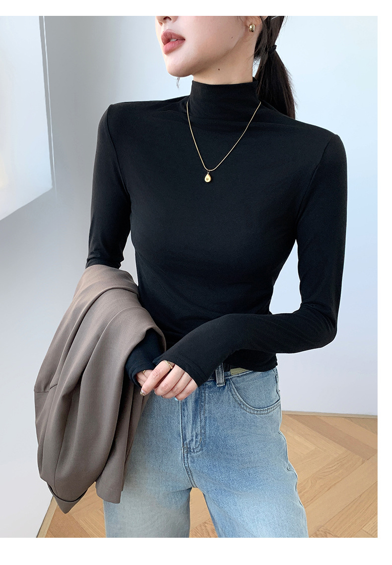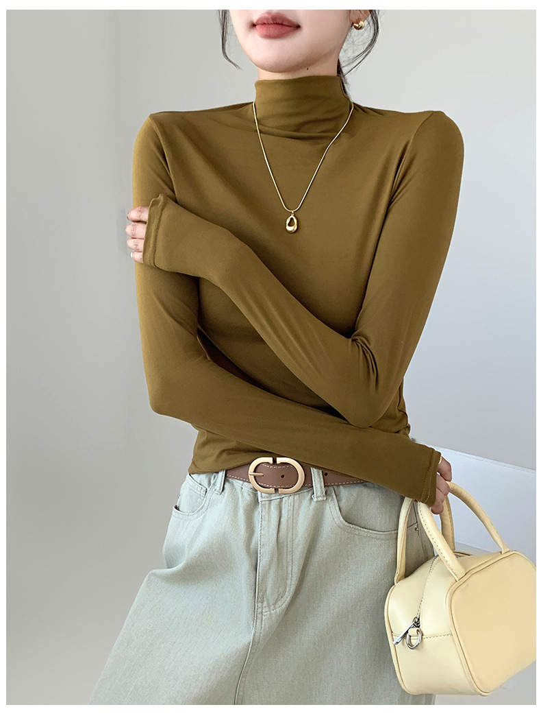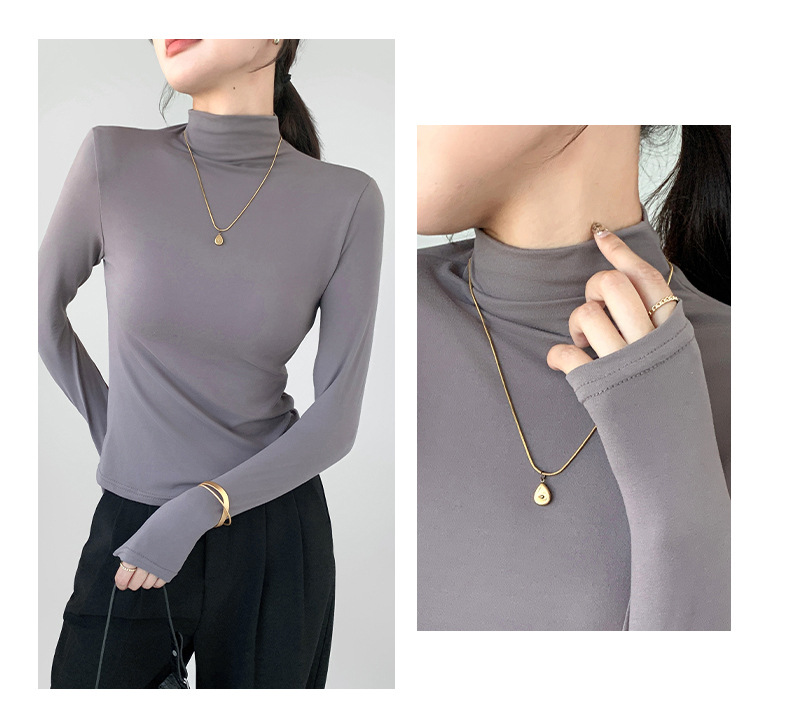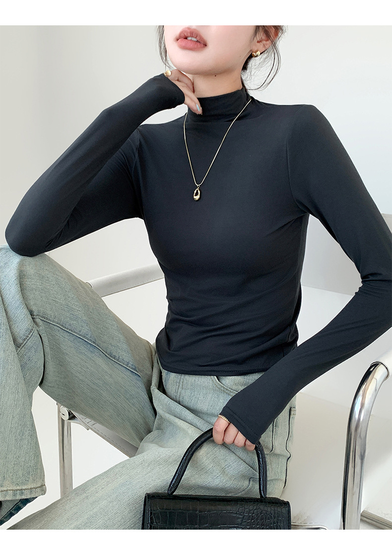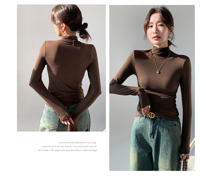 雀说半高领面膜衫女内搭秋冬磨毛打底衫修身保暖外穿长袖T恤上衣AL528