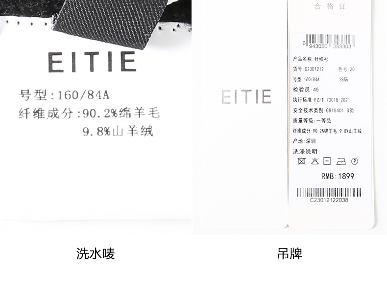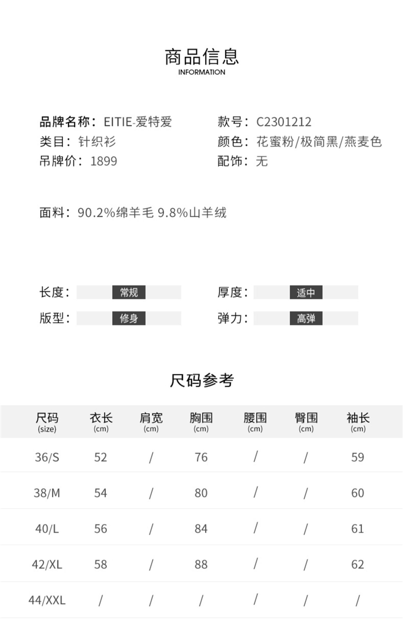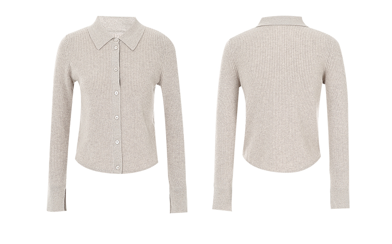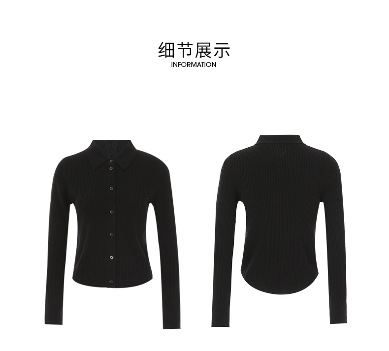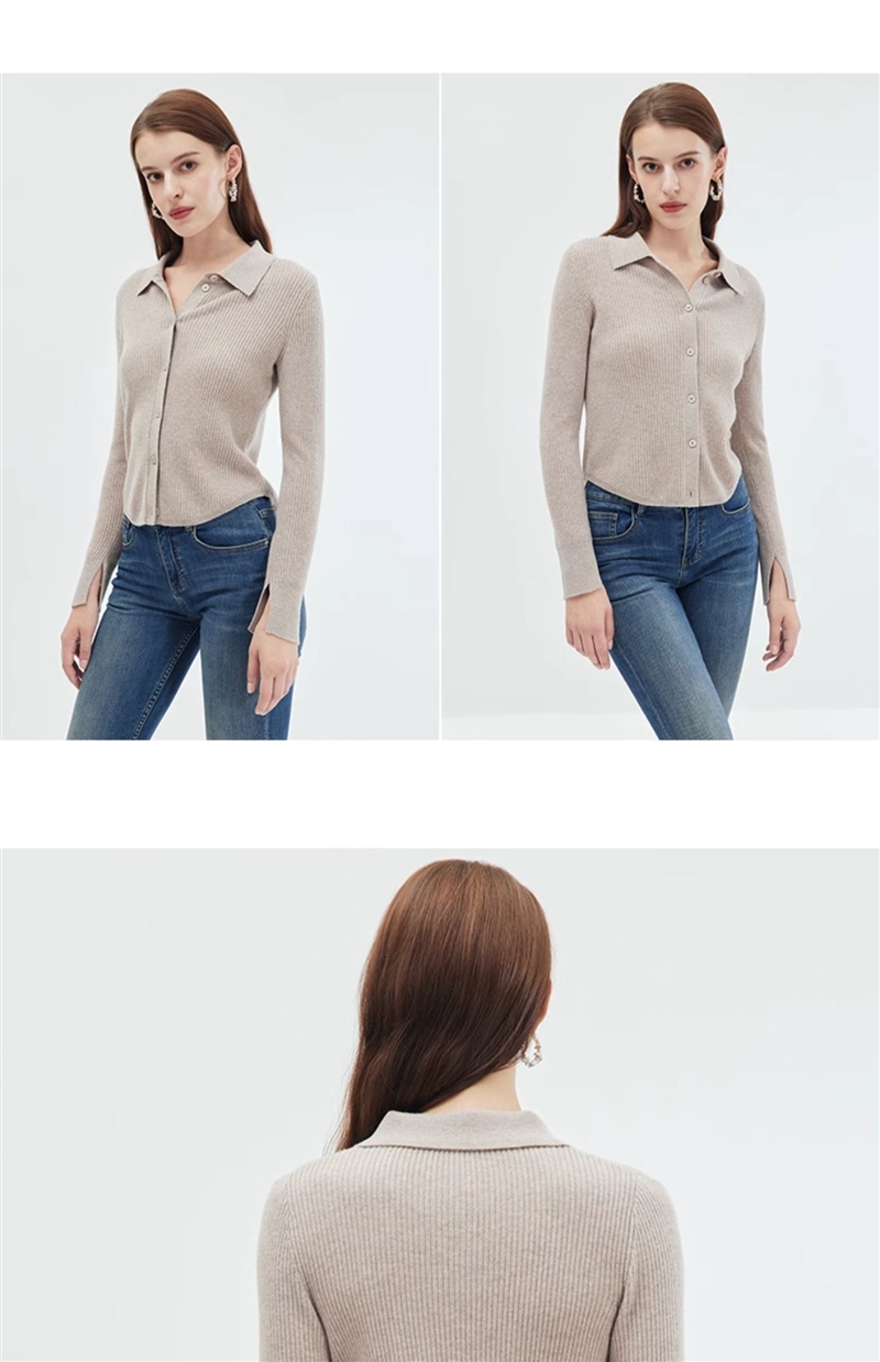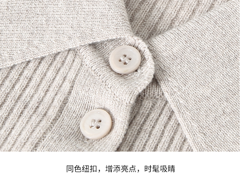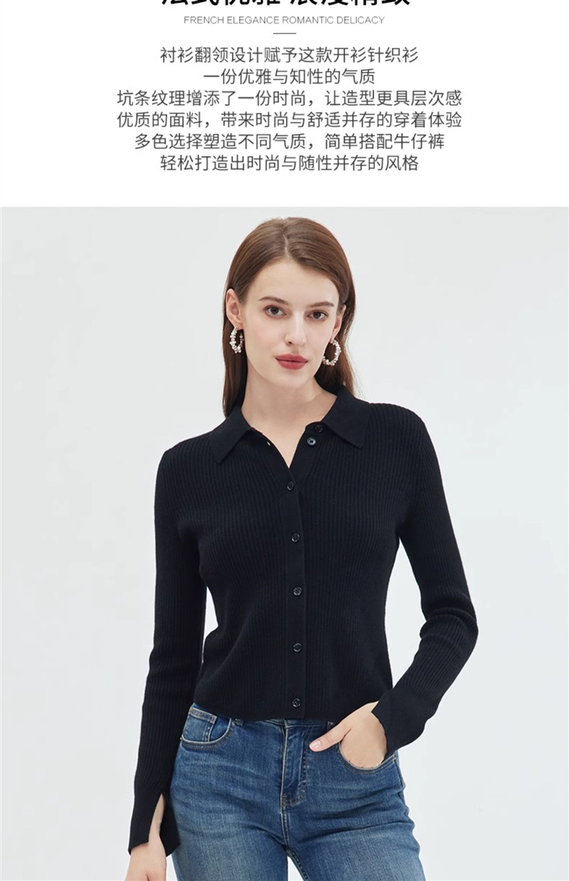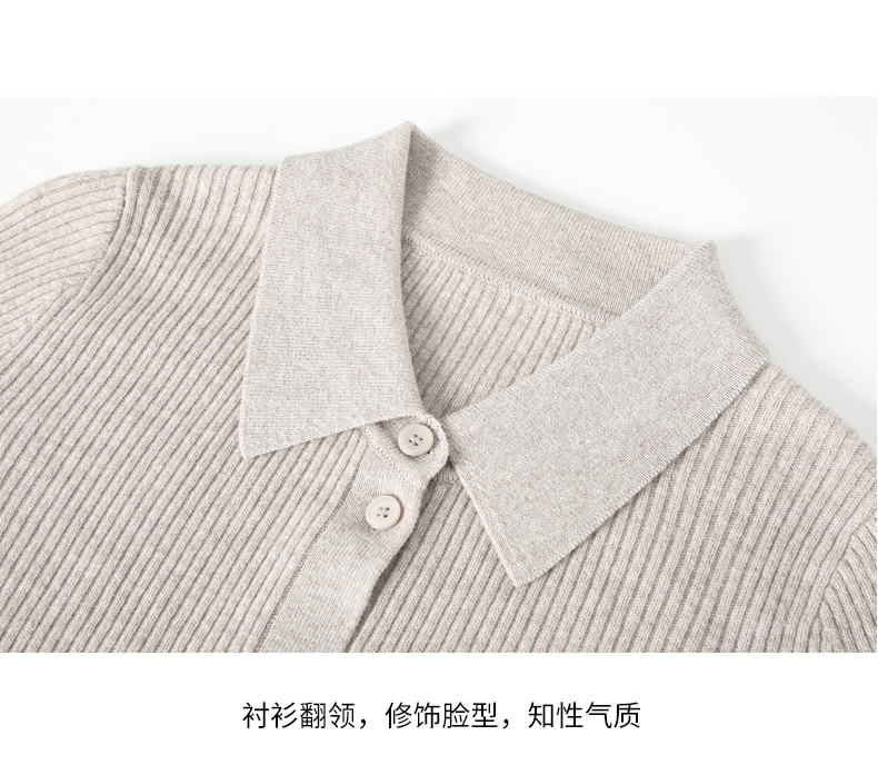 EITIE爱特爱简约POLO翻领修身纯色显瘦舒适羊毛针织开衫秋新款C2301212