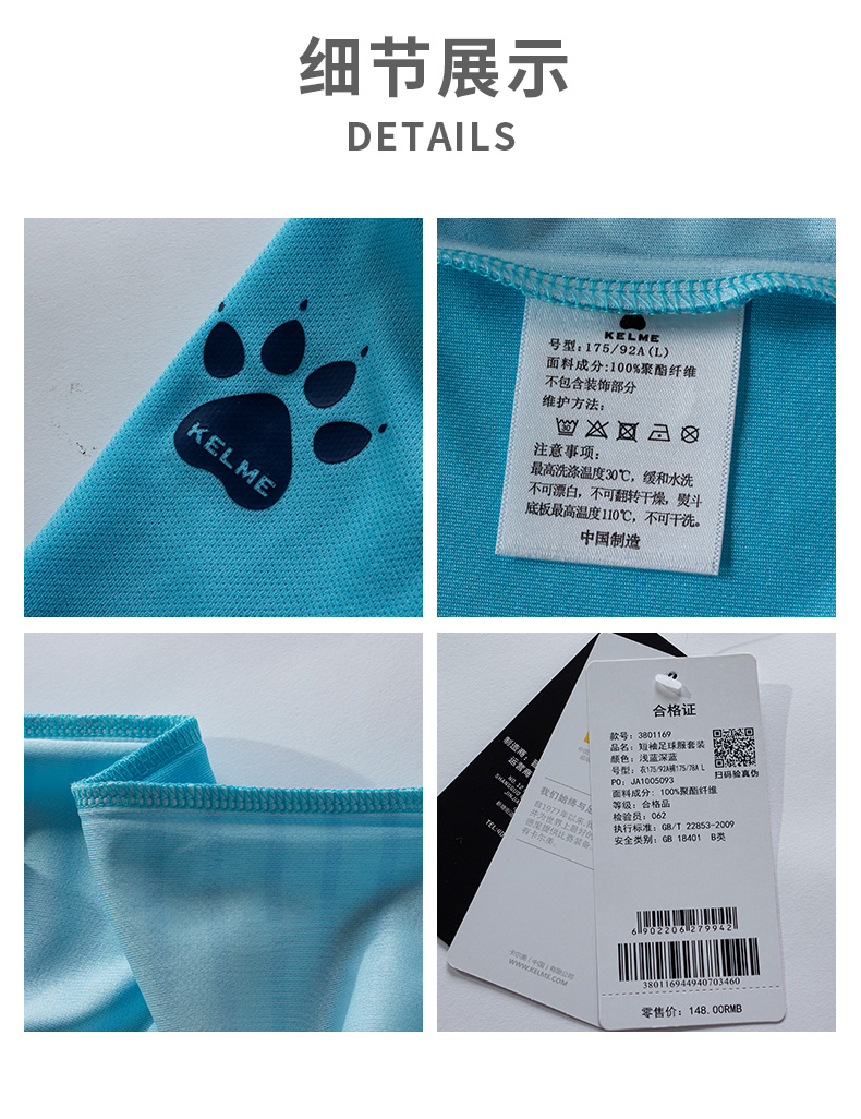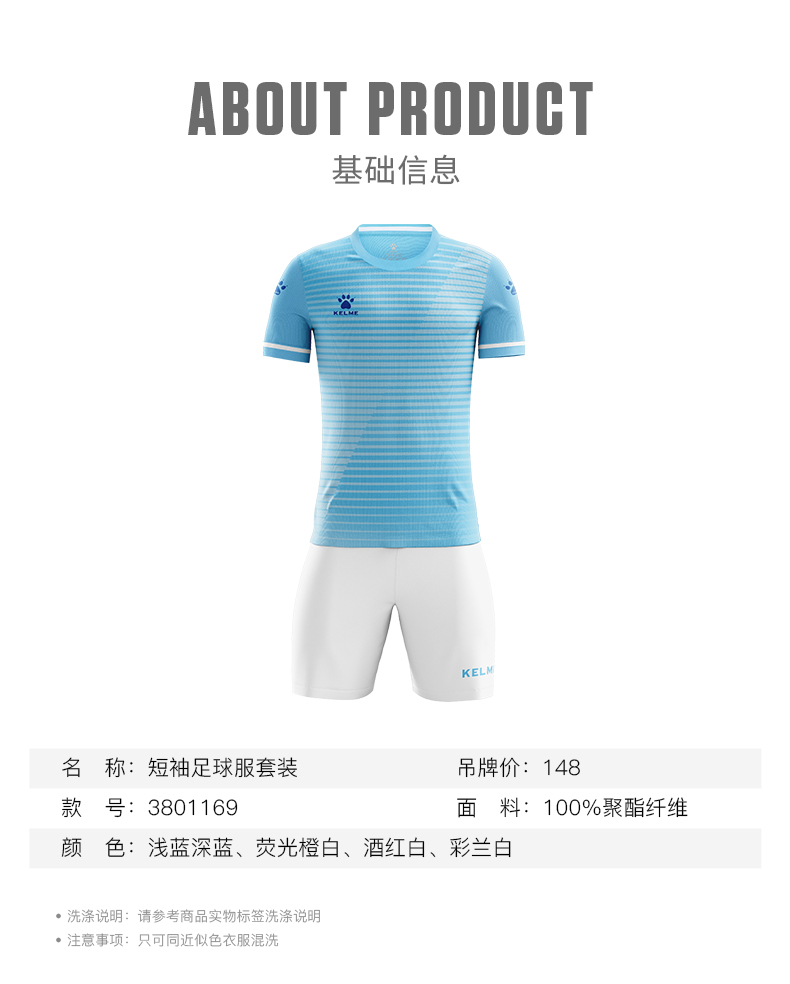 kelme卡尔美官方足球服套装 成人短袖比赛训练组队球衣圆领球服