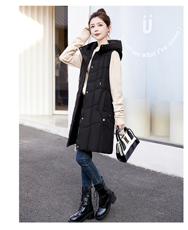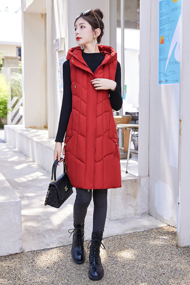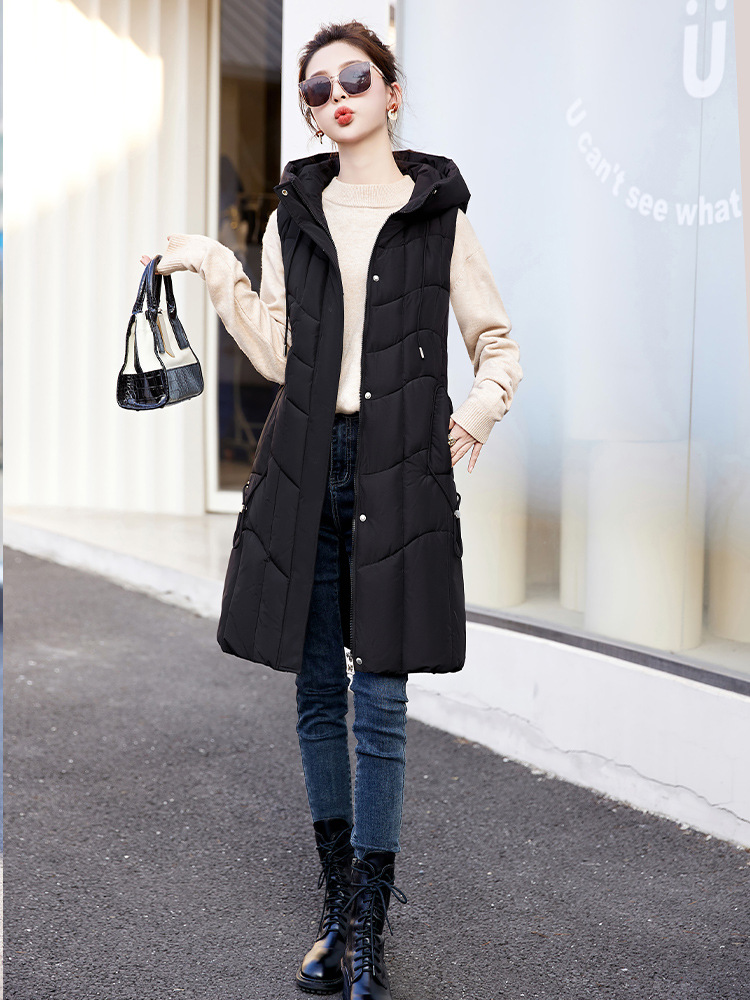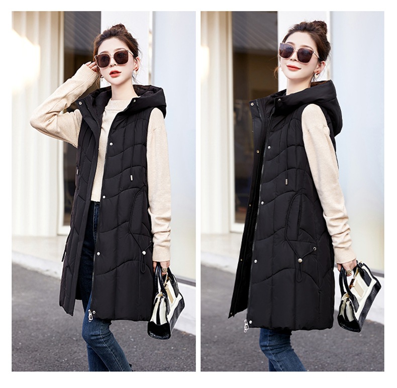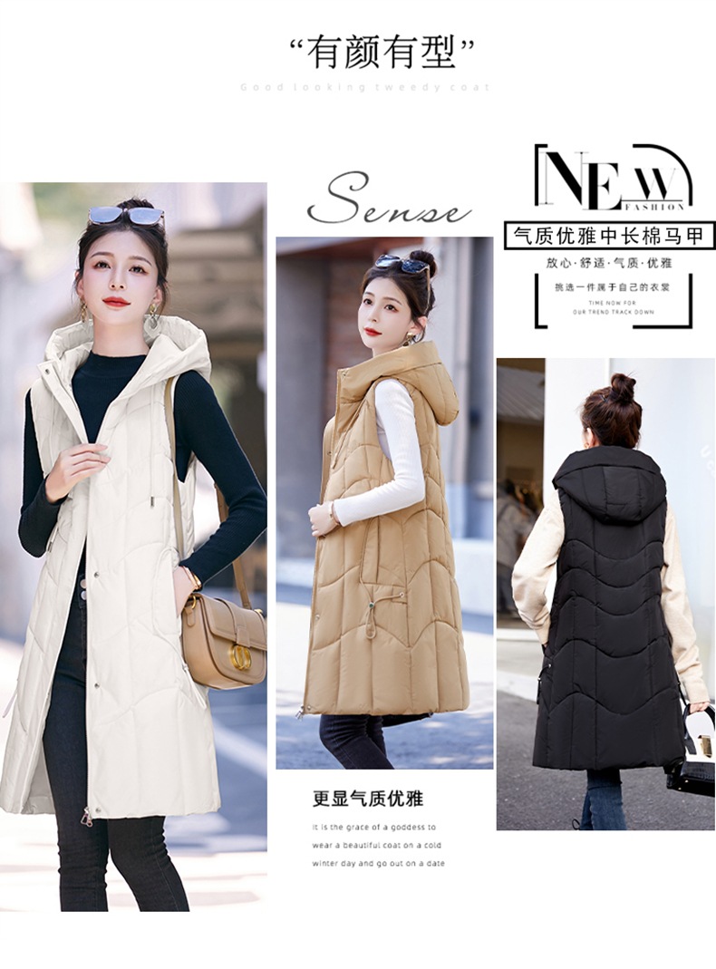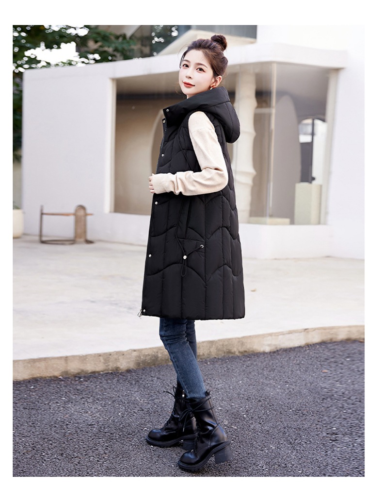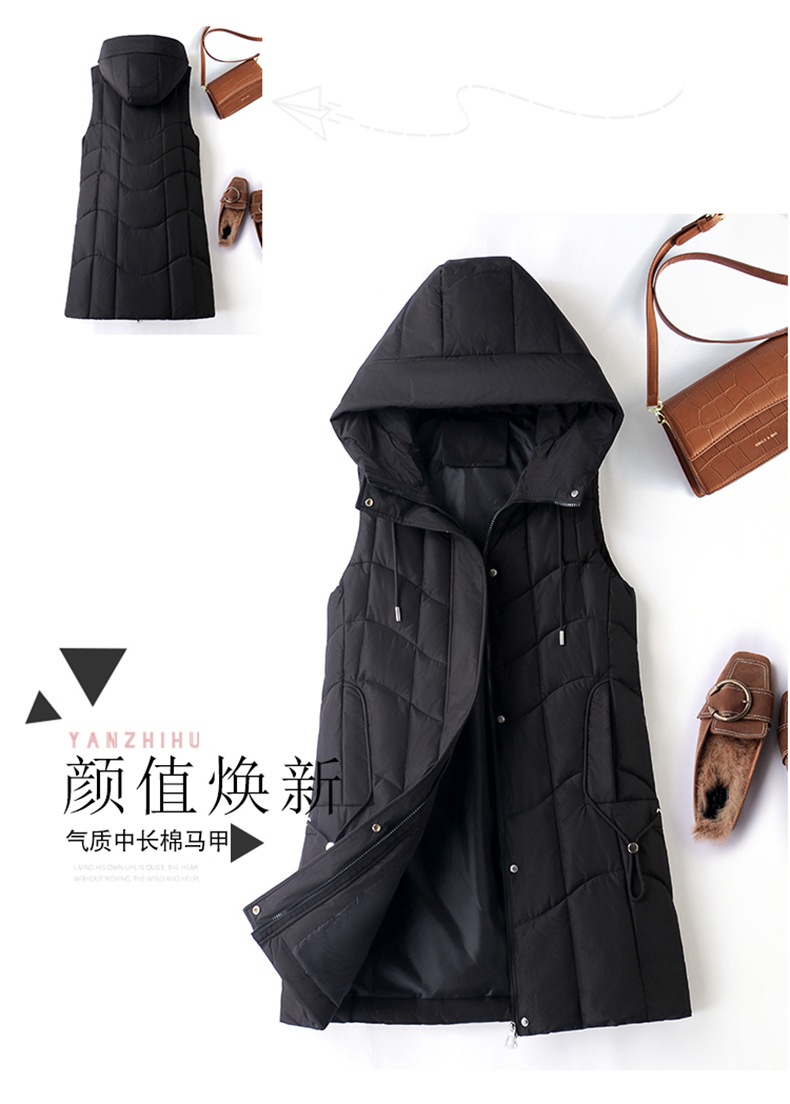 百媚生 棉马甲中长款过膝时尚外套坎肩连帽棉服GXA2305