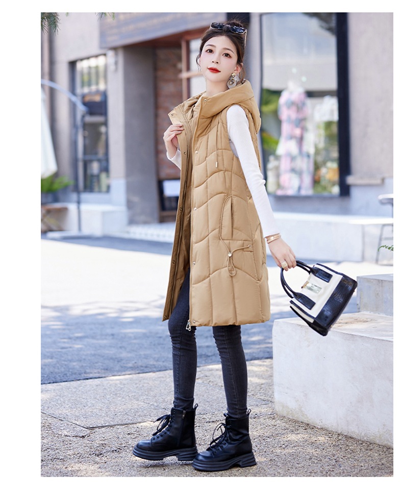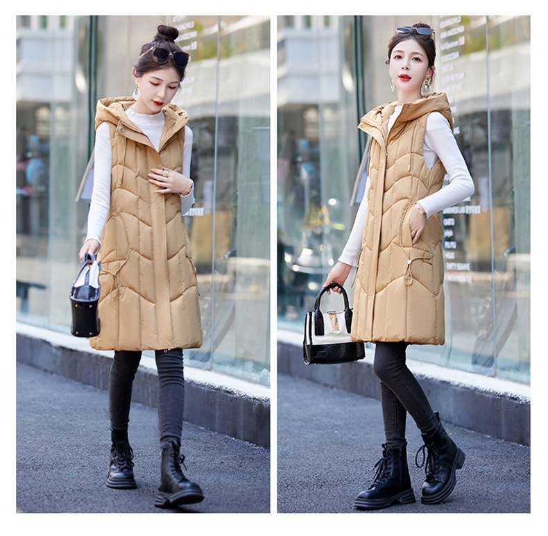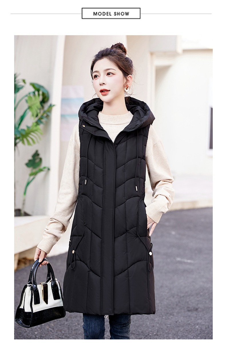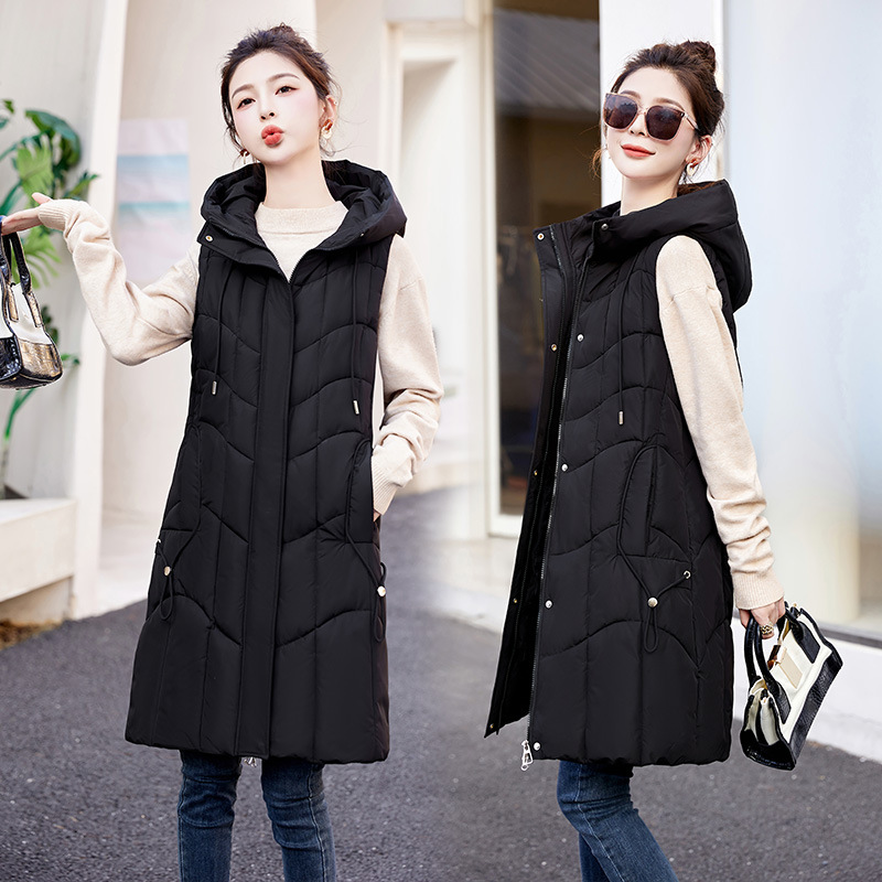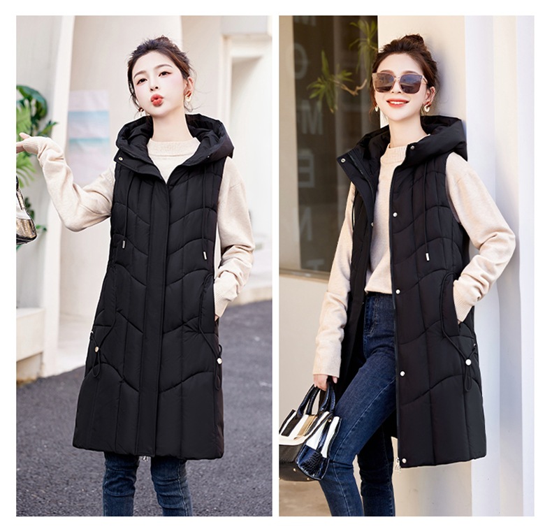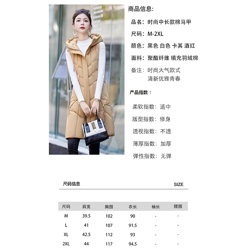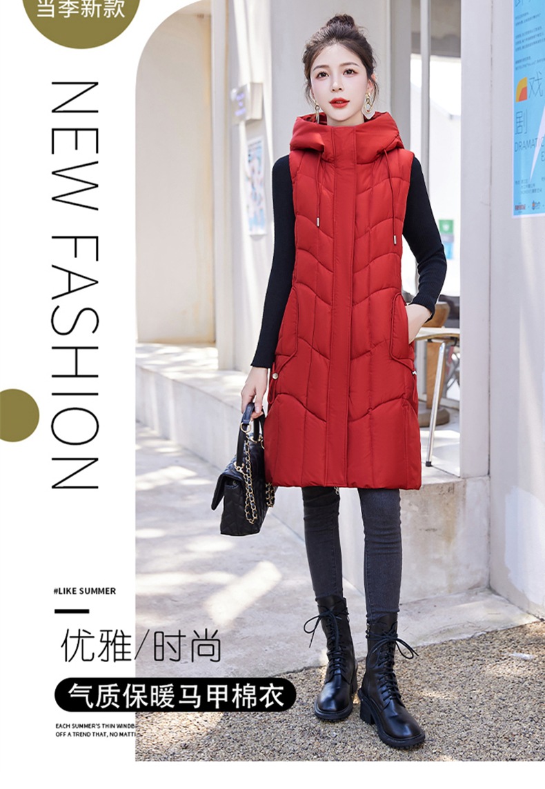 百媚生 棉马甲中长款过膝时尚外套坎肩连帽棉服GXA2305