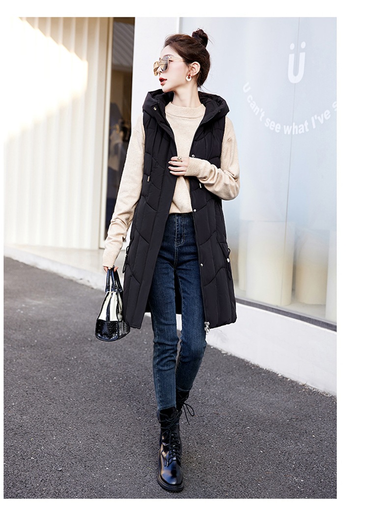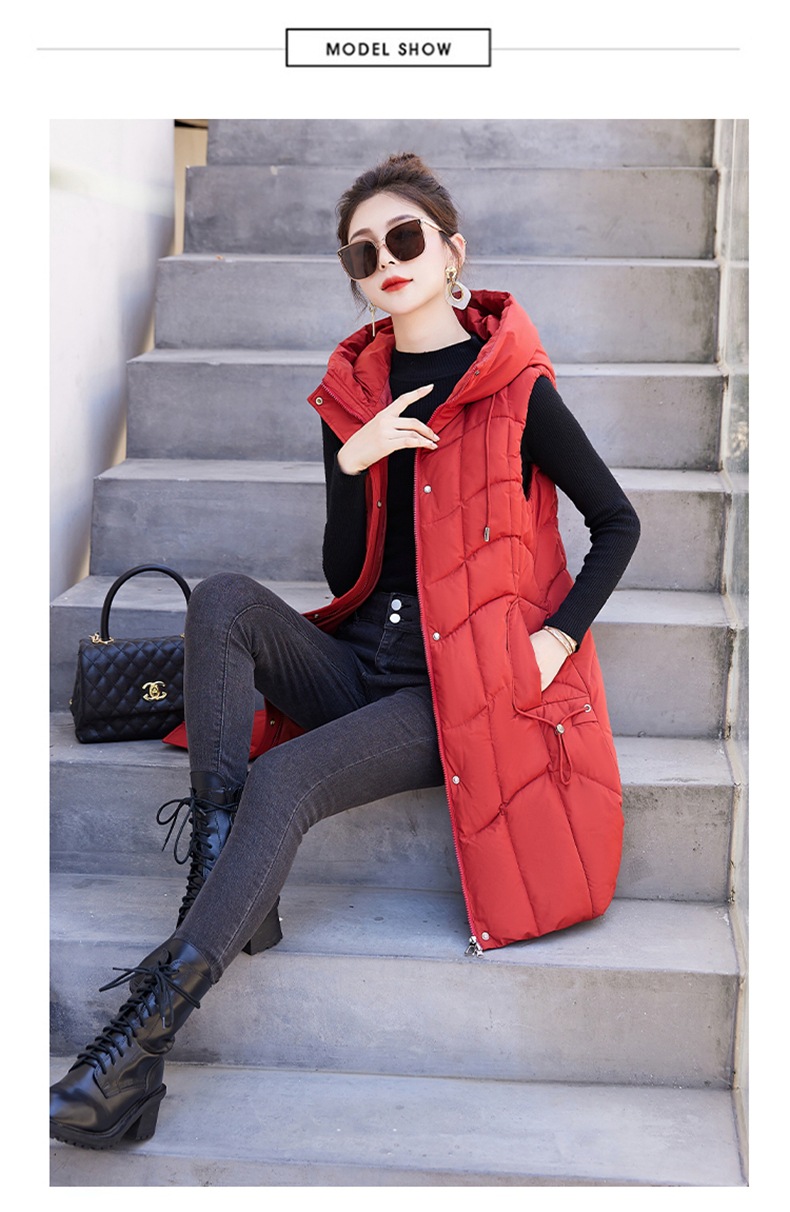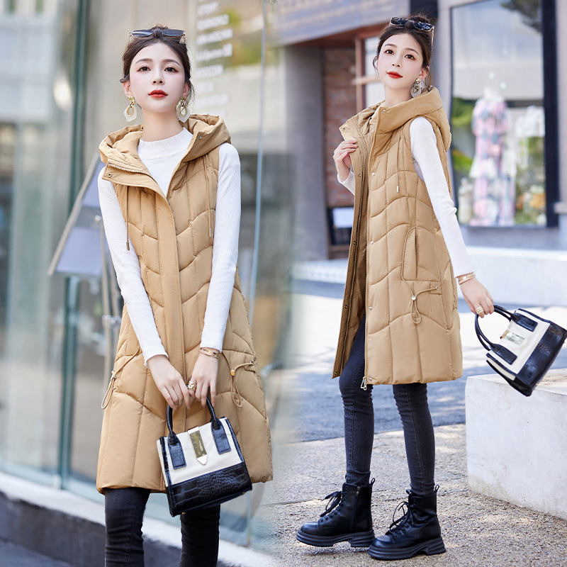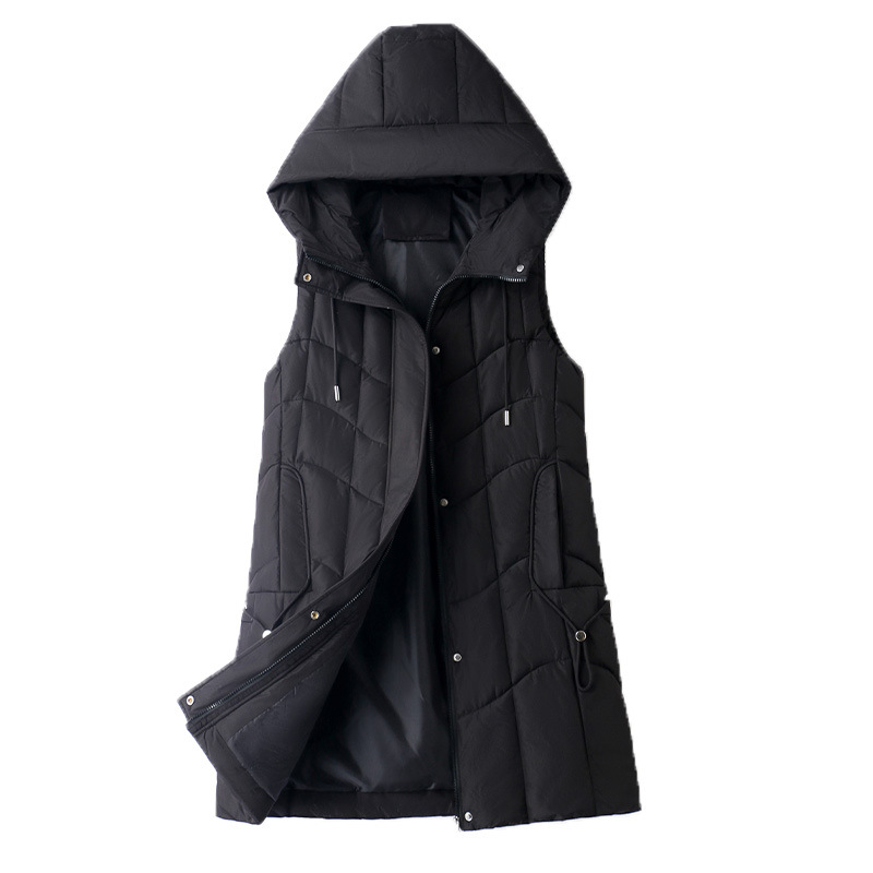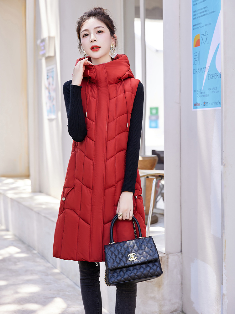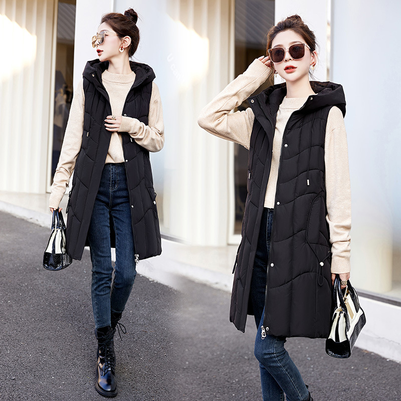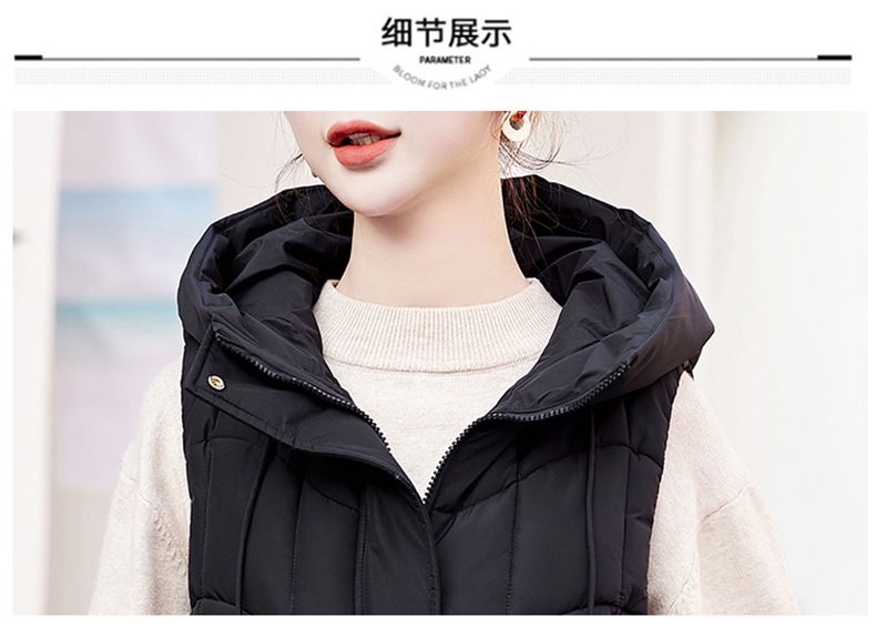 百媚生 棉马甲中长款过膝时尚外套坎肩连帽棉服GXA2305