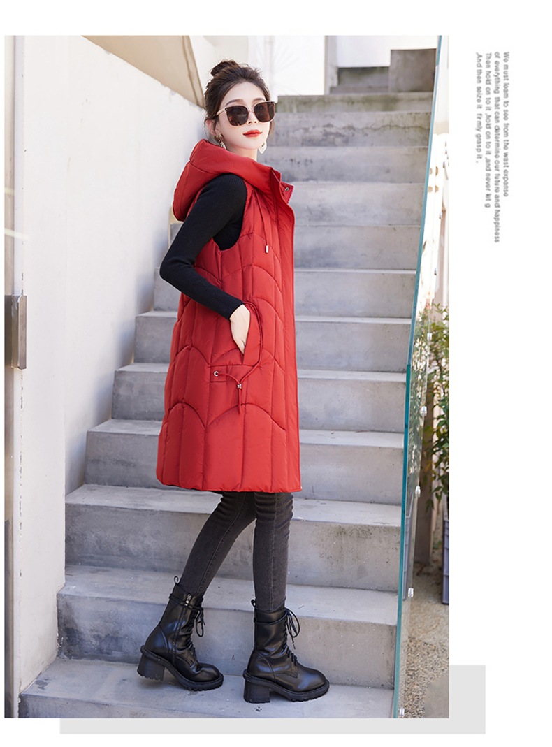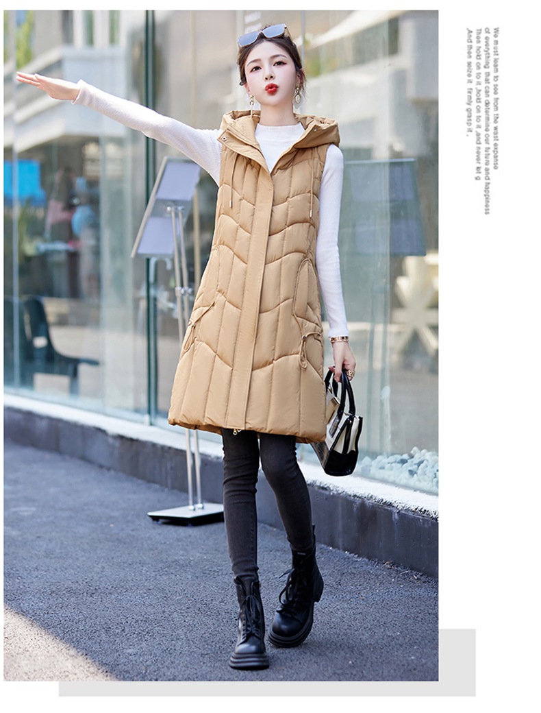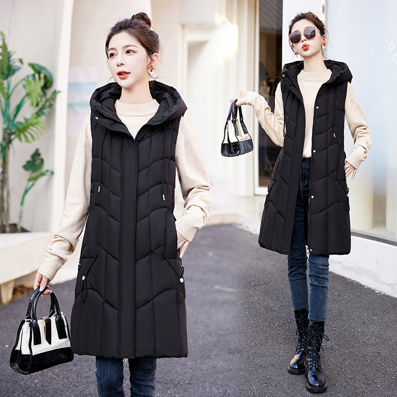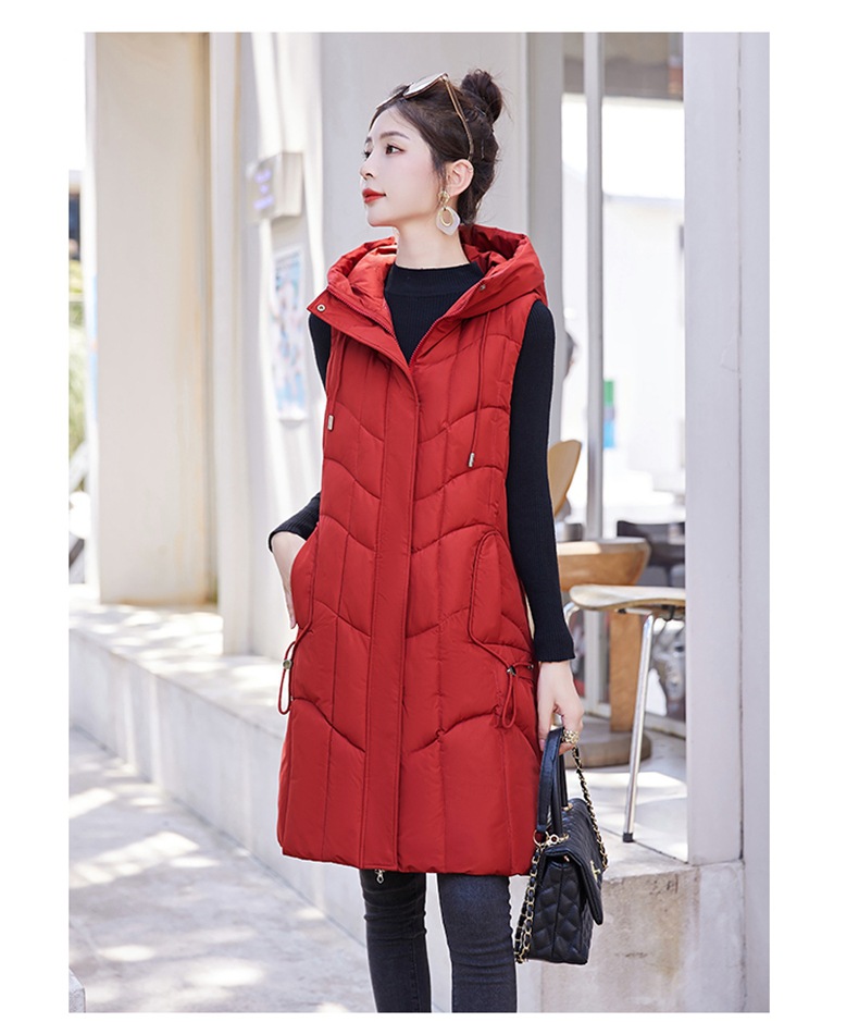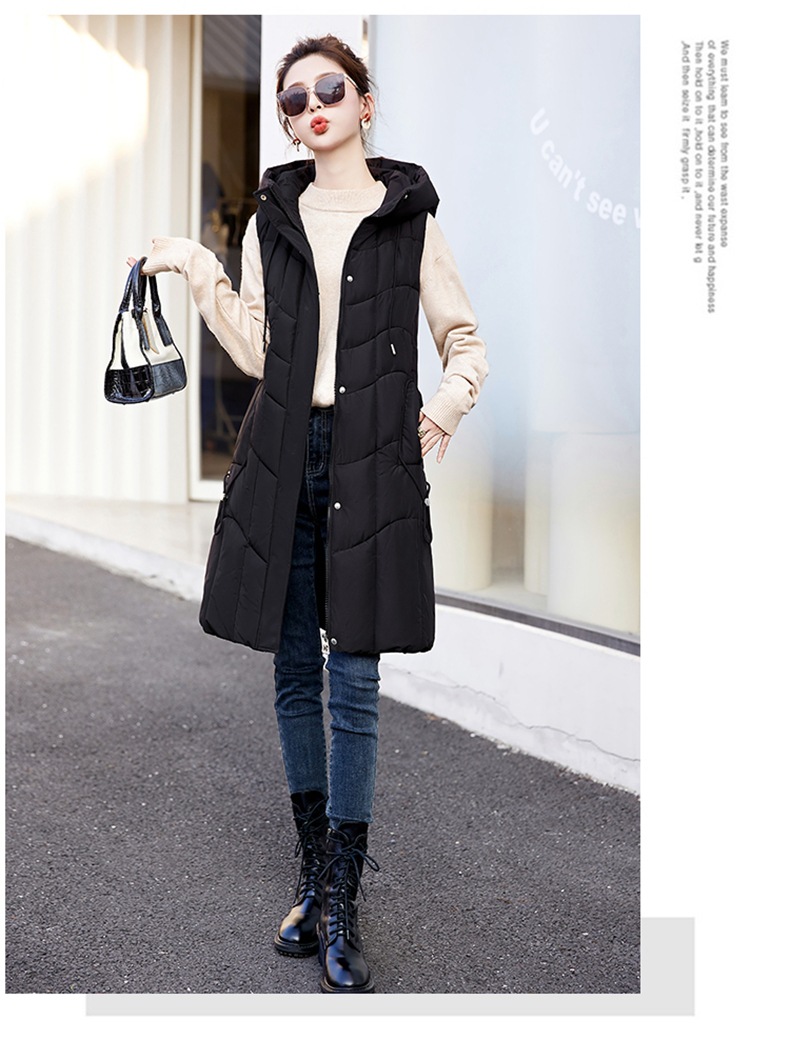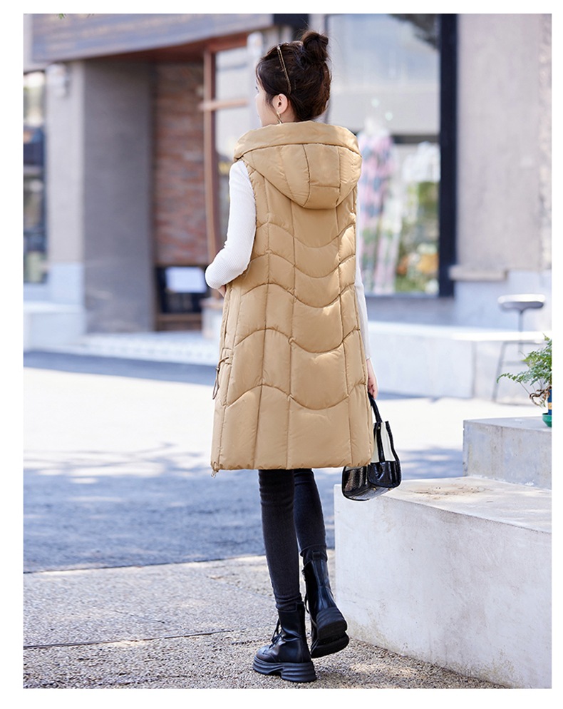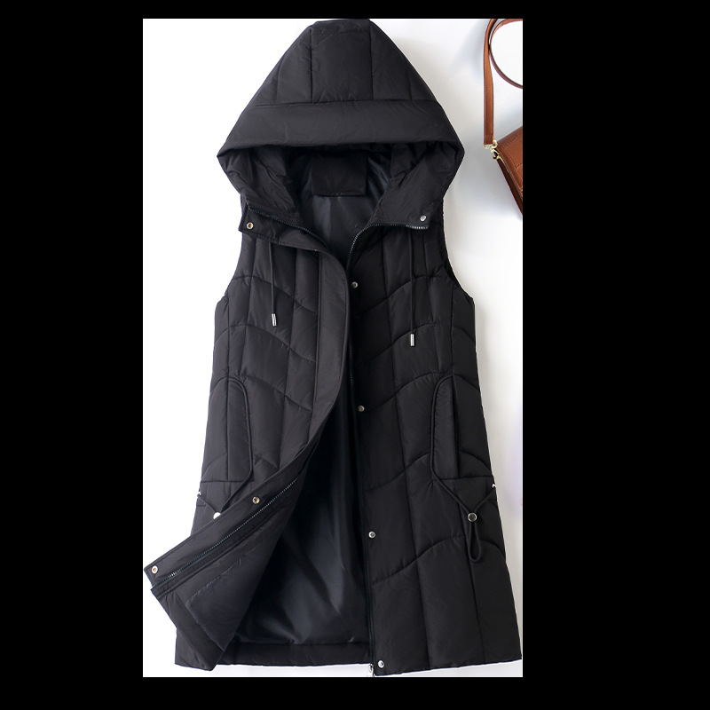 百媚生 棉马甲中长款过膝时尚外套坎肩连帽棉服GXA2305