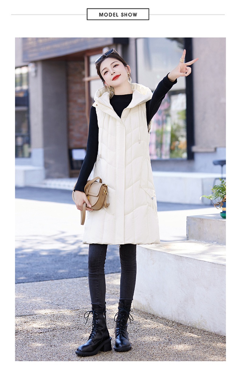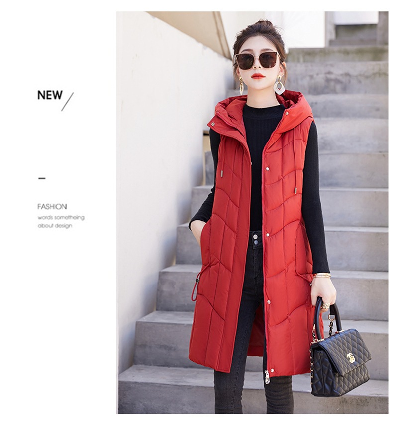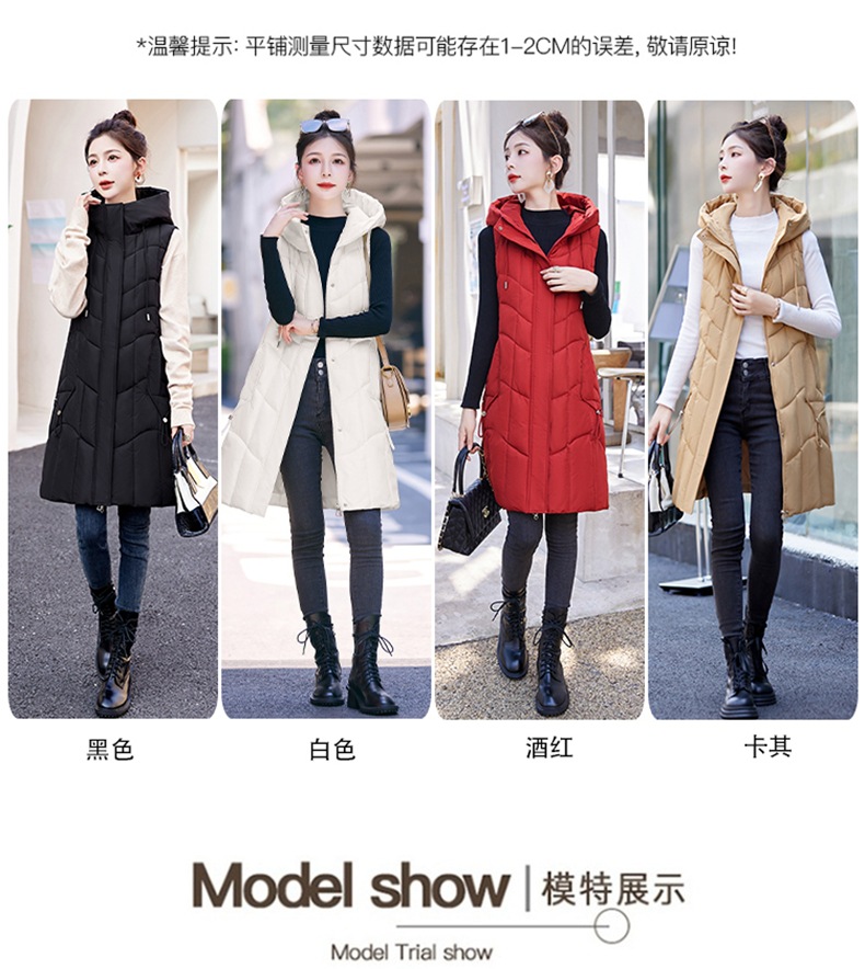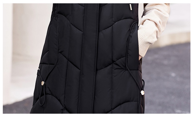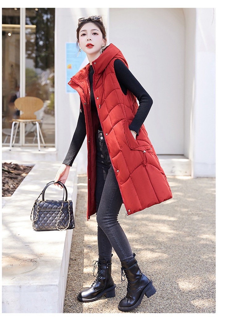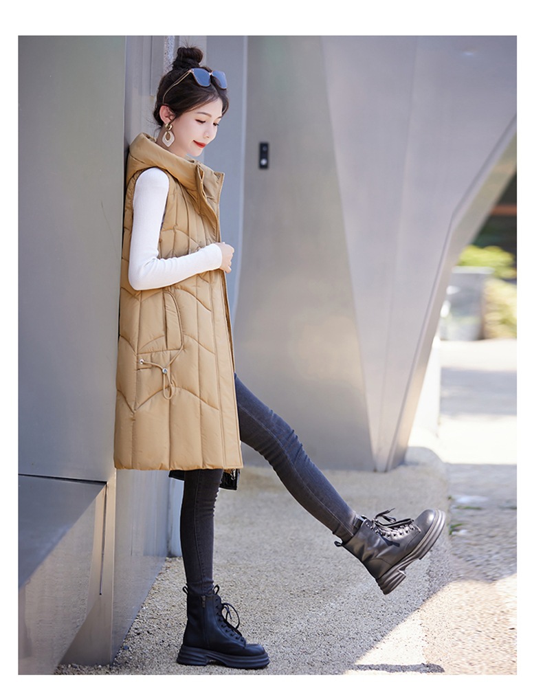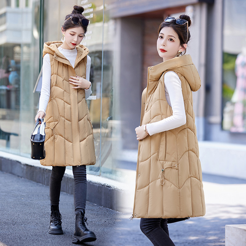 百媚生 棉马甲中长款过膝时尚外套坎肩连帽棉服GXA2305