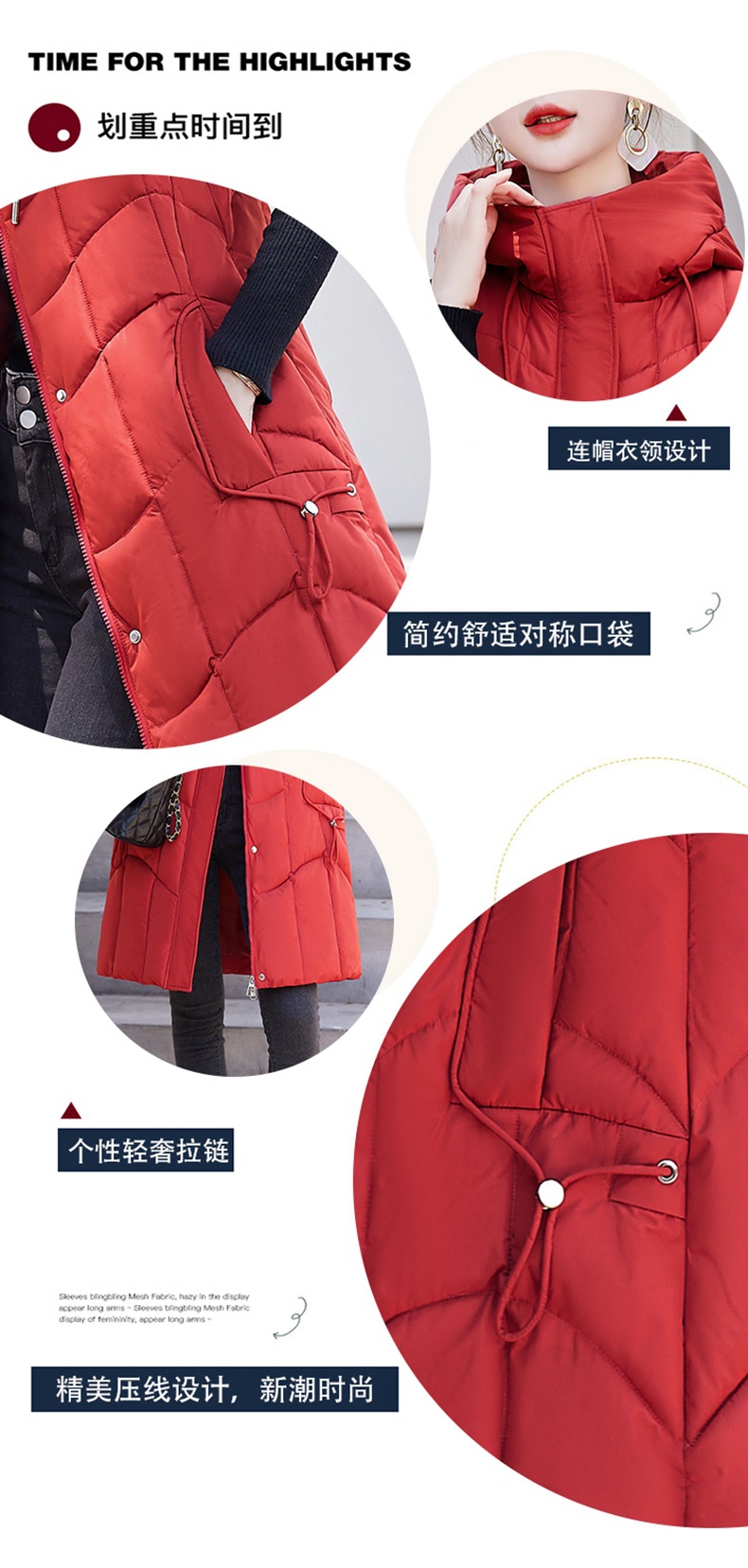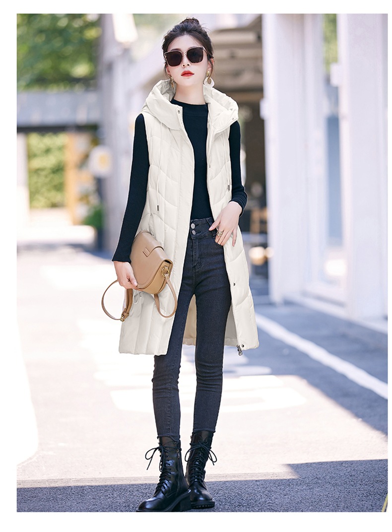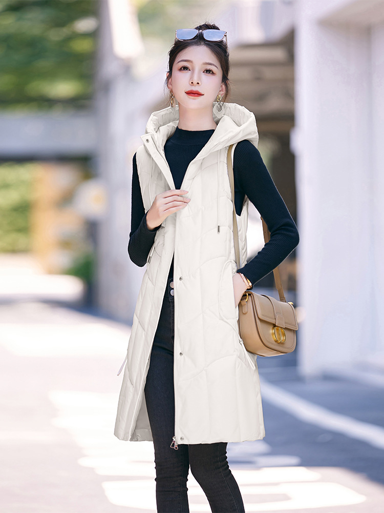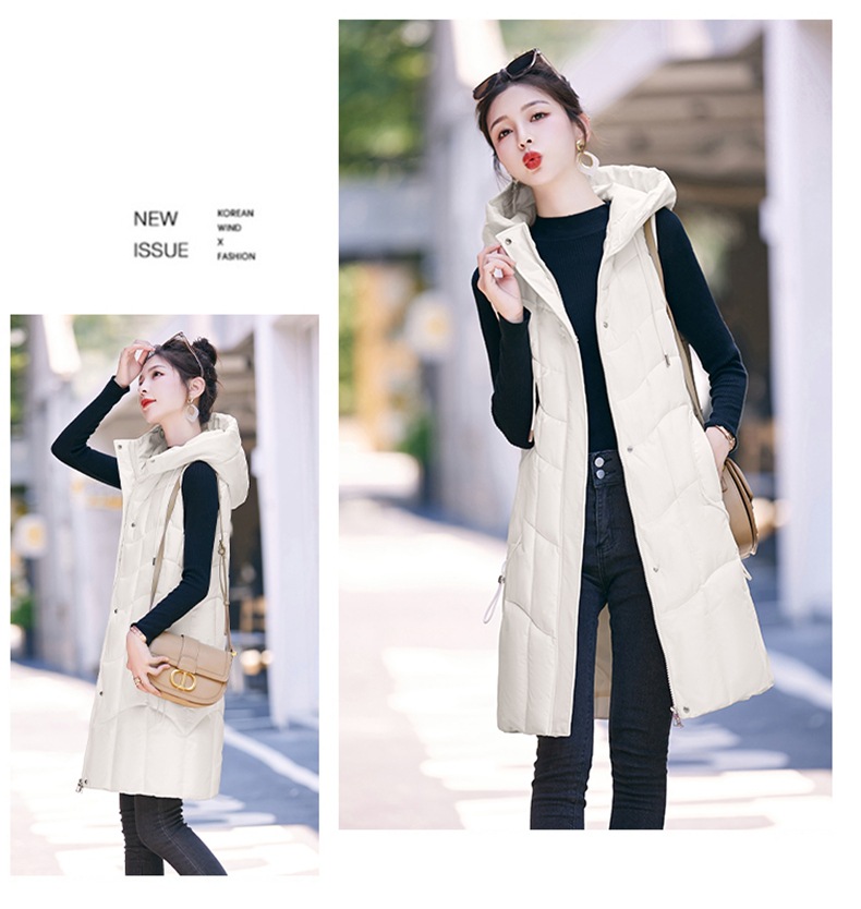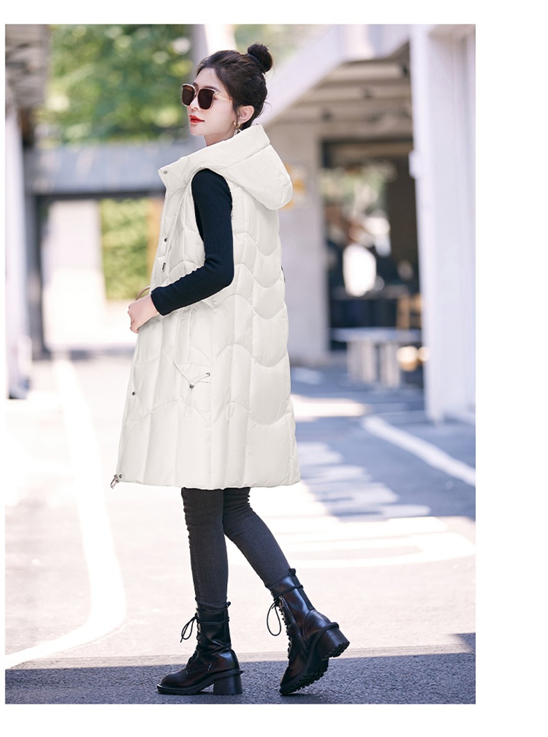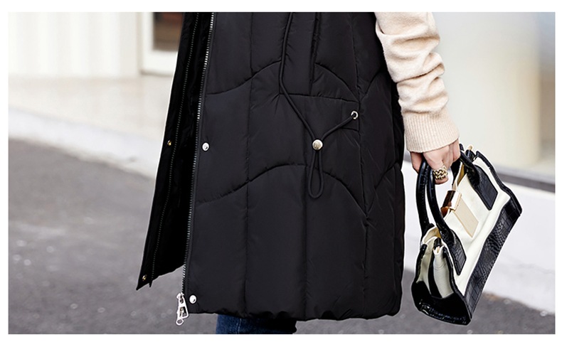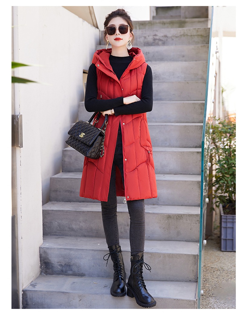 百媚生 棉马甲中长款过膝时尚外套坎肩连帽棉服GXA2305