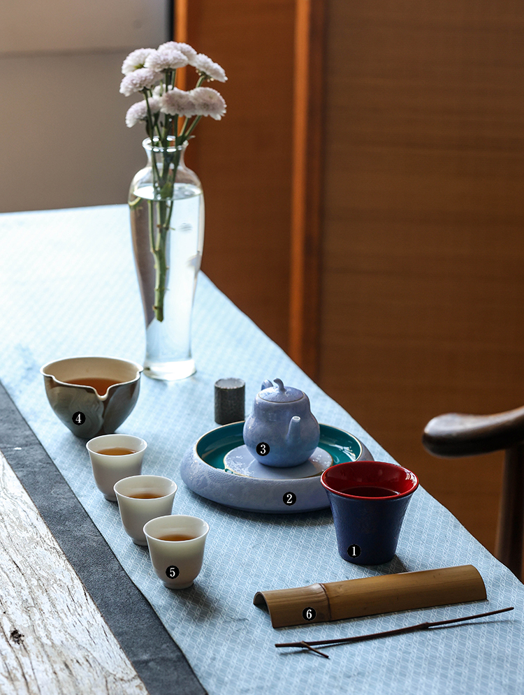 茶香记 古帛扒花大红可乐杯(孔雀蓝)120ml陶瓷茶杯主人杯水杯