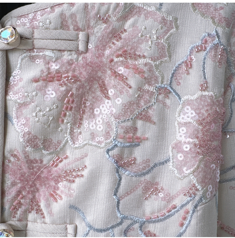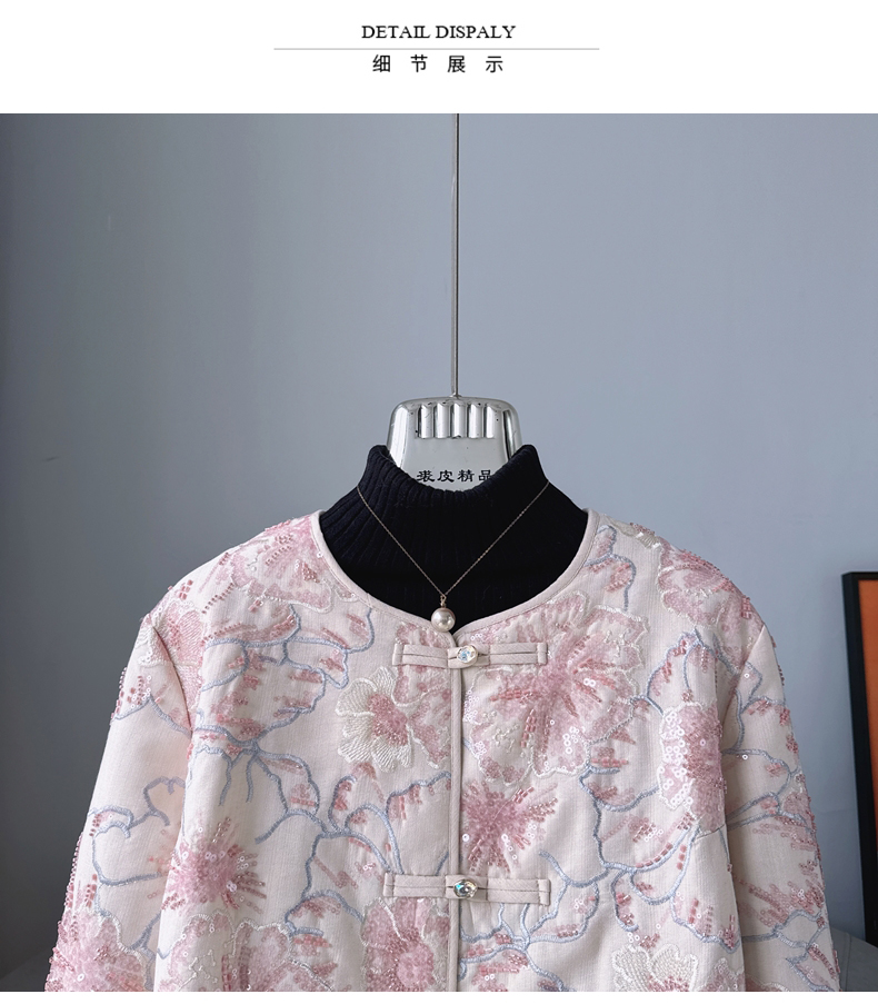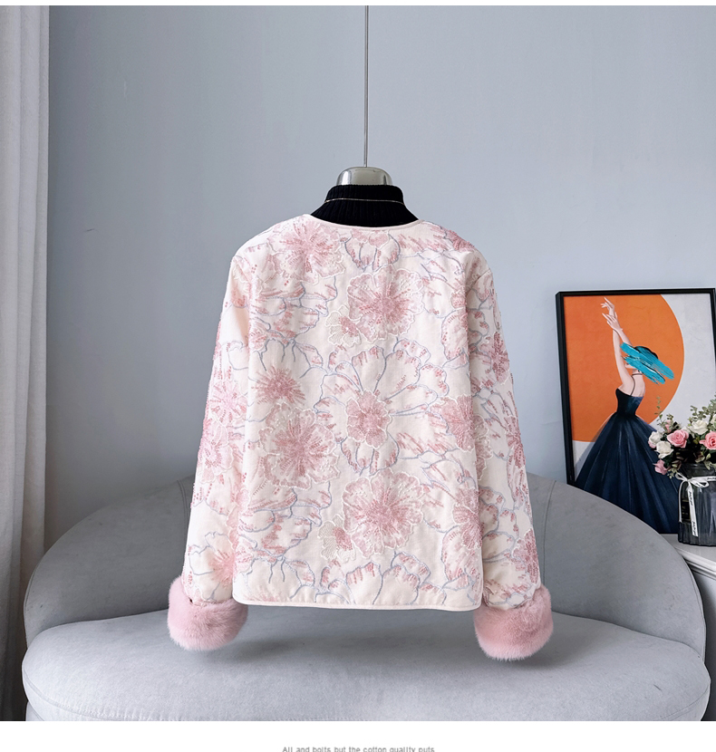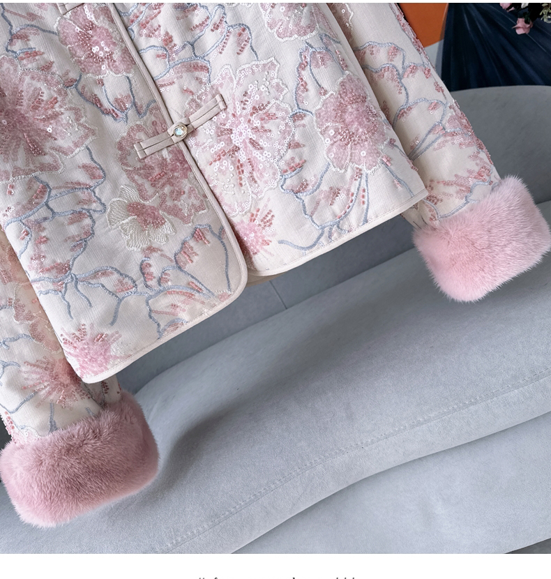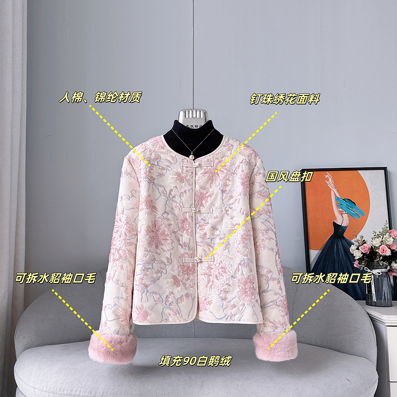 SR 913新中式水貂毛羽绒服皮草钉珠绣花气质鹅绒重工外套