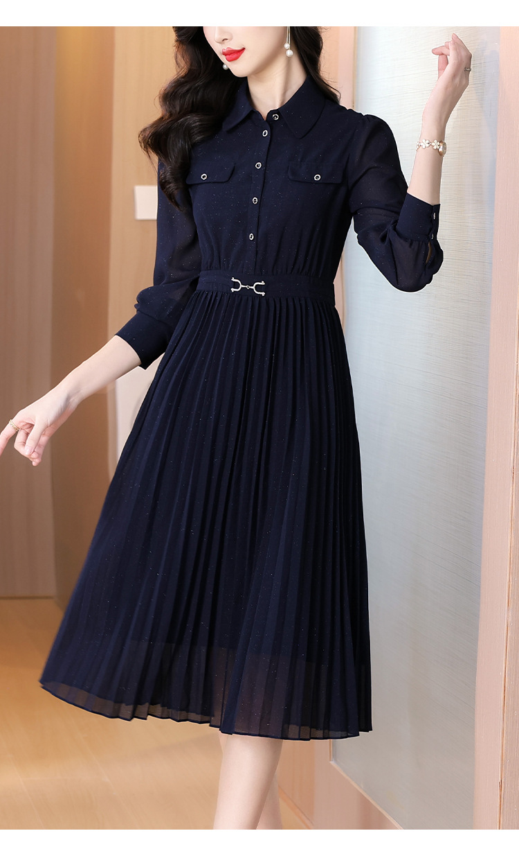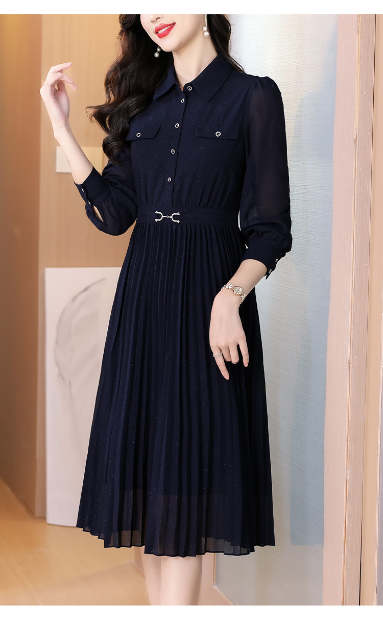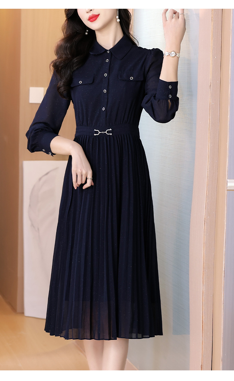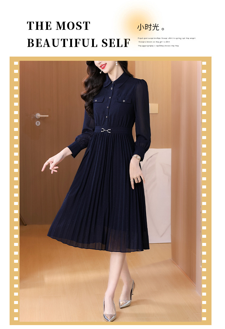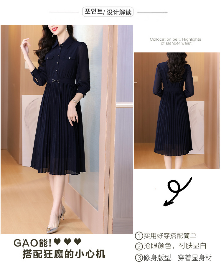 AHM bynz6606气质通勤衬衫领连衣裙显瘦中长款百褶裙 商品图3