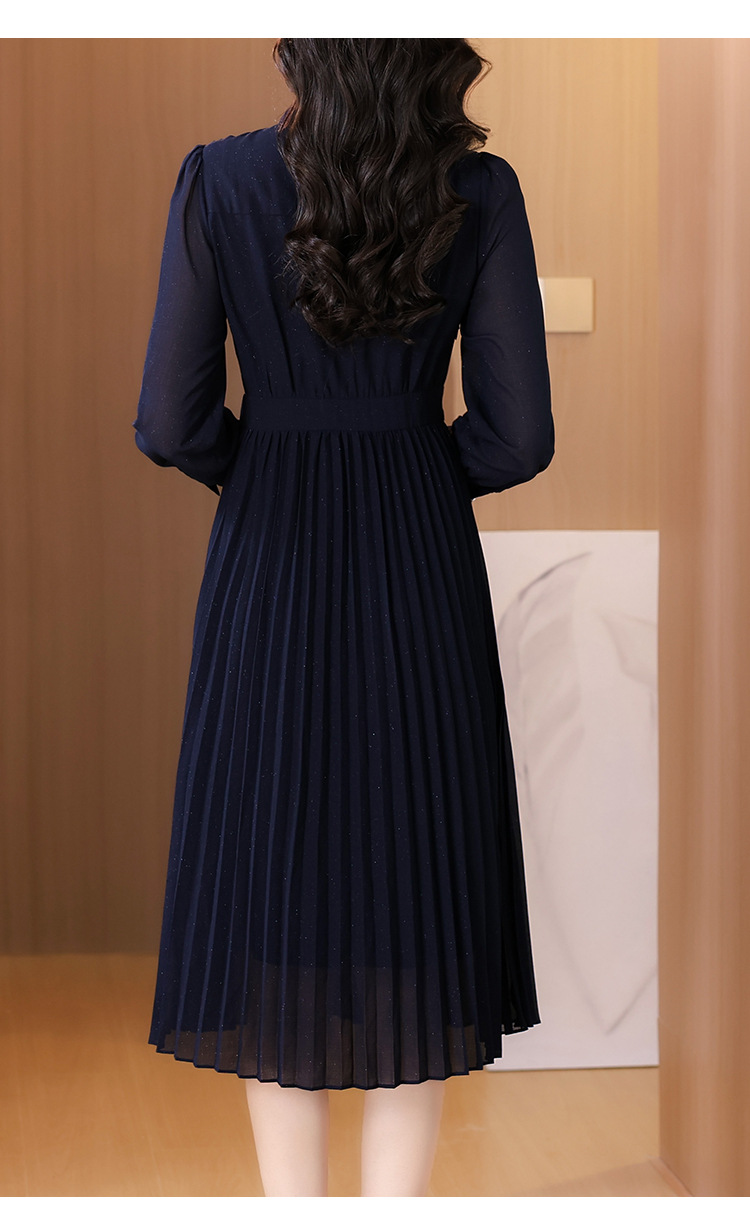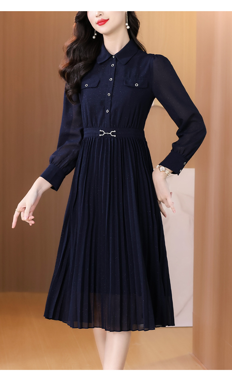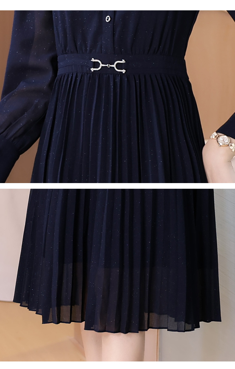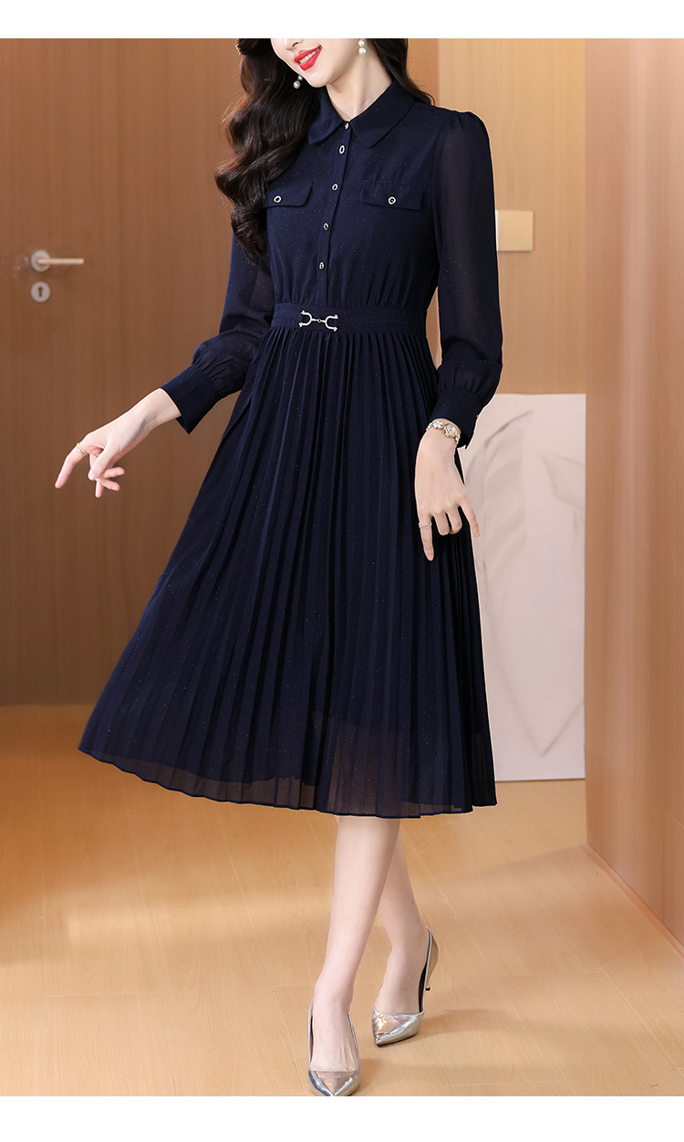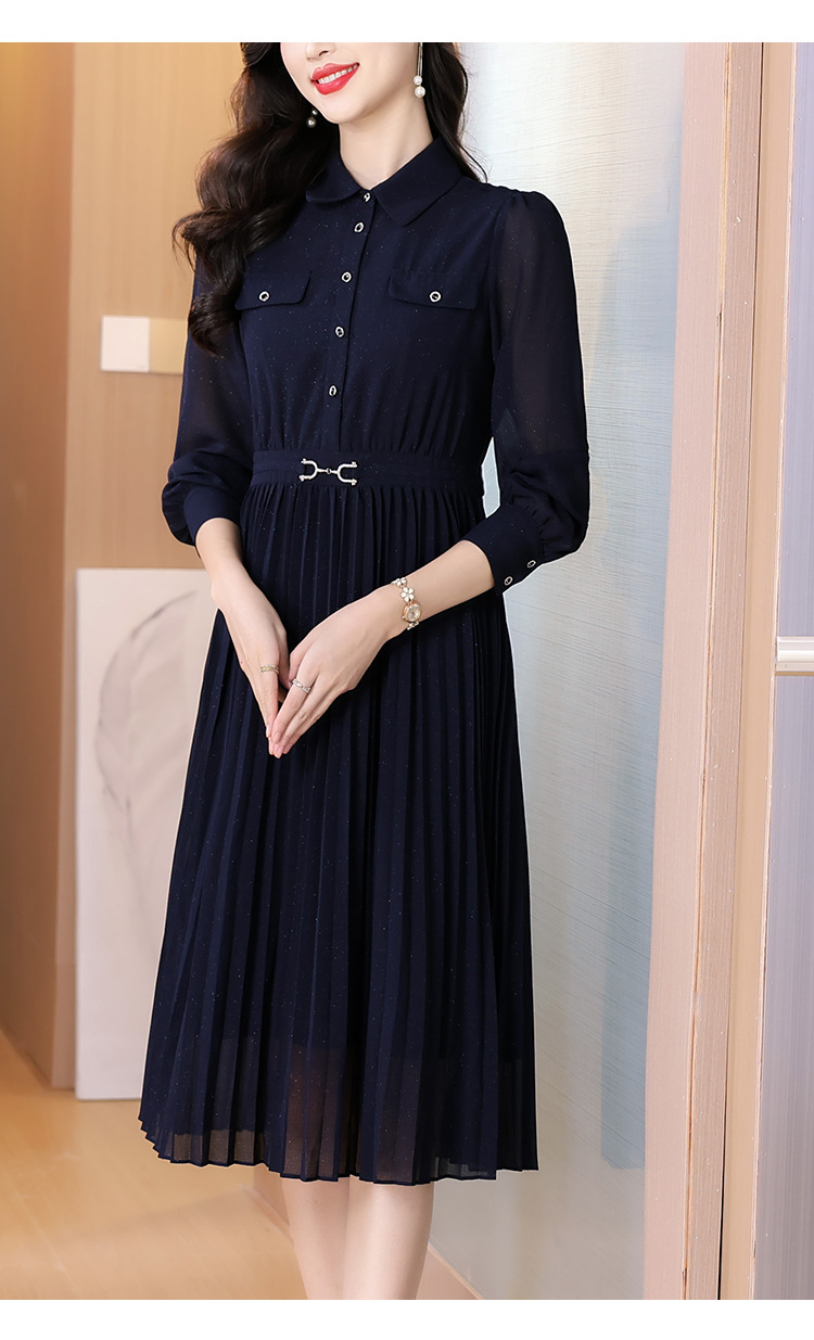 AHM bynz6606气质通勤衬衫领连衣裙显瘦中长款百褶裙 商品图3