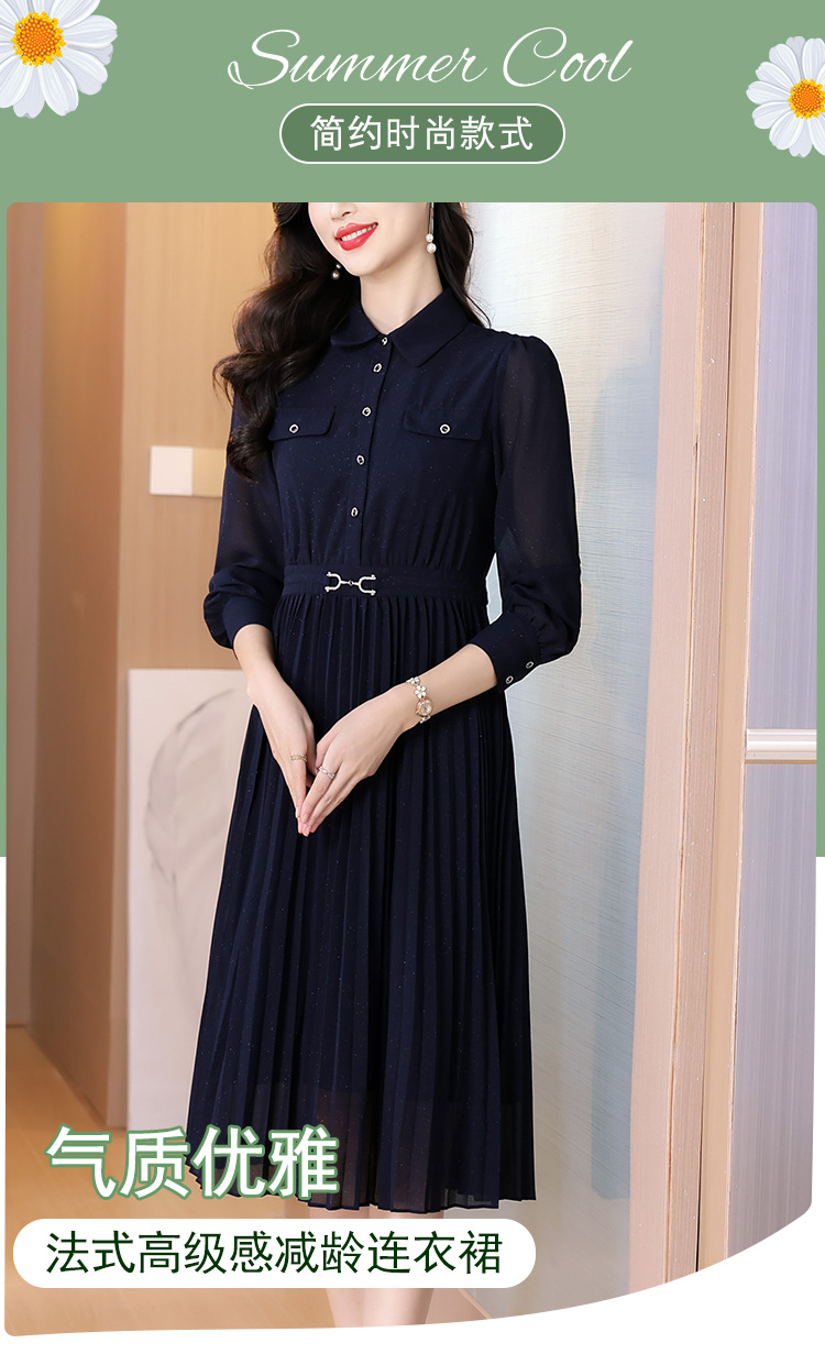 AHM bynz6606气质通勤衬衫领连衣裙显瘦中长款百褶裙 商品图4