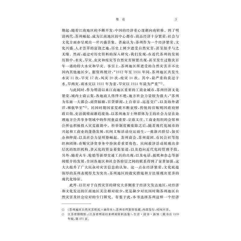 本书为博士论文,首先全面梳理了1912—1937年苏州地区的自然灾害概况、特点和成因,以及自然灾害对苏州地方社会带来的影响和冲击,进而从传统与现代两个角度,详细考察社会的救灾手段和应对措施,解释灾荒赈济与区域社会的互动。其次,阐述传统和现代两种救灾方式在自然灾害应对中的关系和作用,系统分析了自然灾害发生后国家和社会如何协调二者之间的关系以应对灾害,从而达到双赢的目的。最后,本书指出苏州地区在推进现代灾害治理的过程中,传统和现代两种救灾方式交相杂糅,国家与社会之间良性互动,存在一种潜在的多维互动、动态共生的关系。
