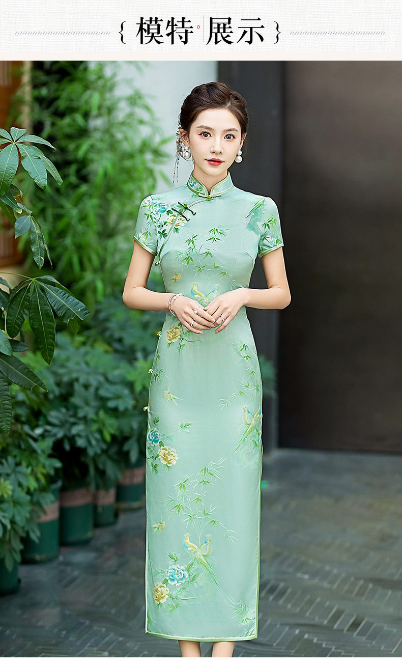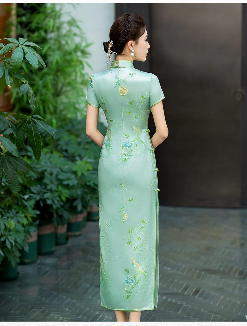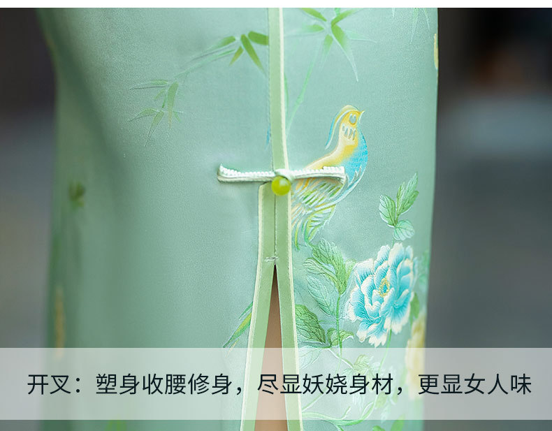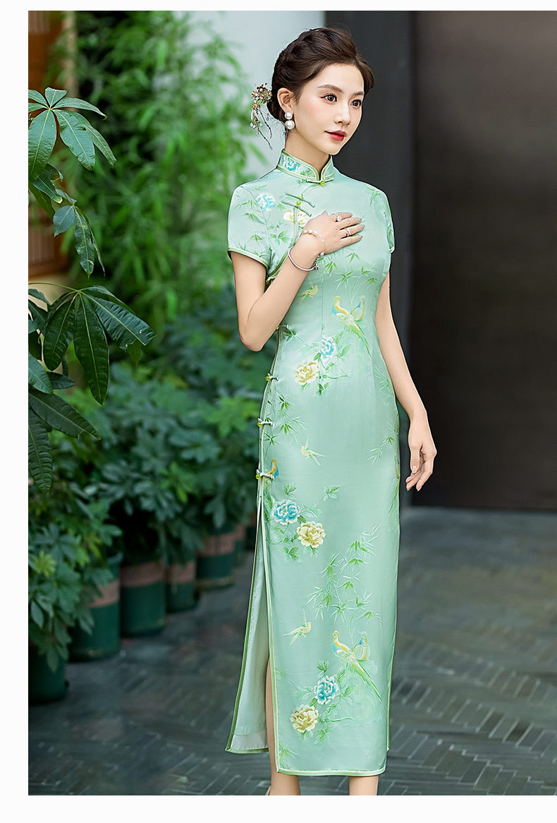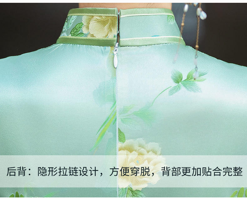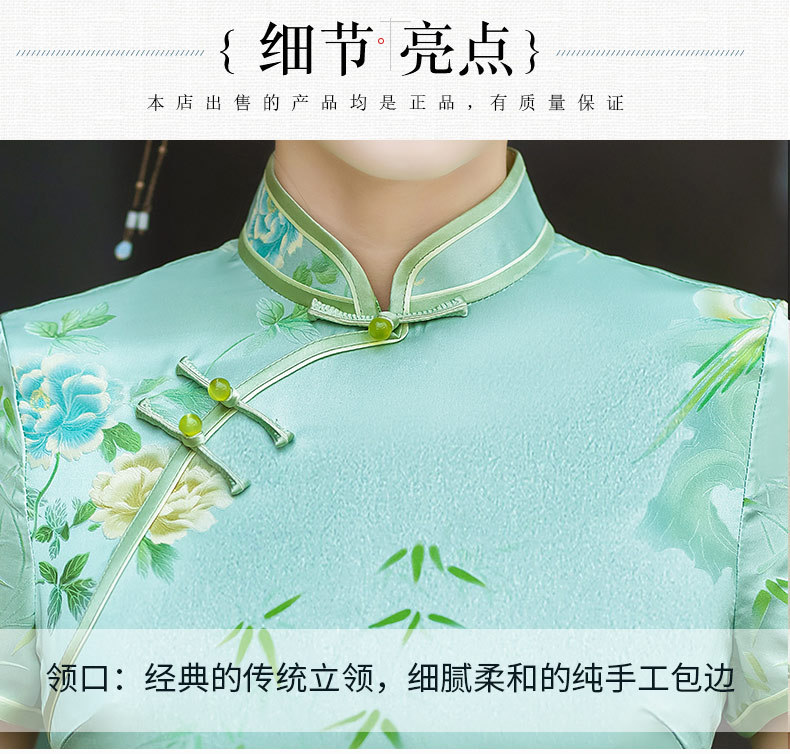 WX-100%真丝提花春季新款真丝旗袍中式桑蚕丝连衣裙手工缝制宴席