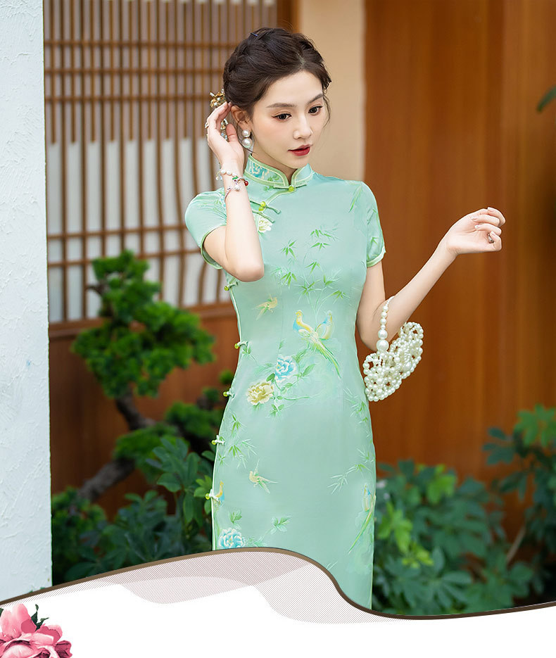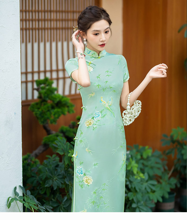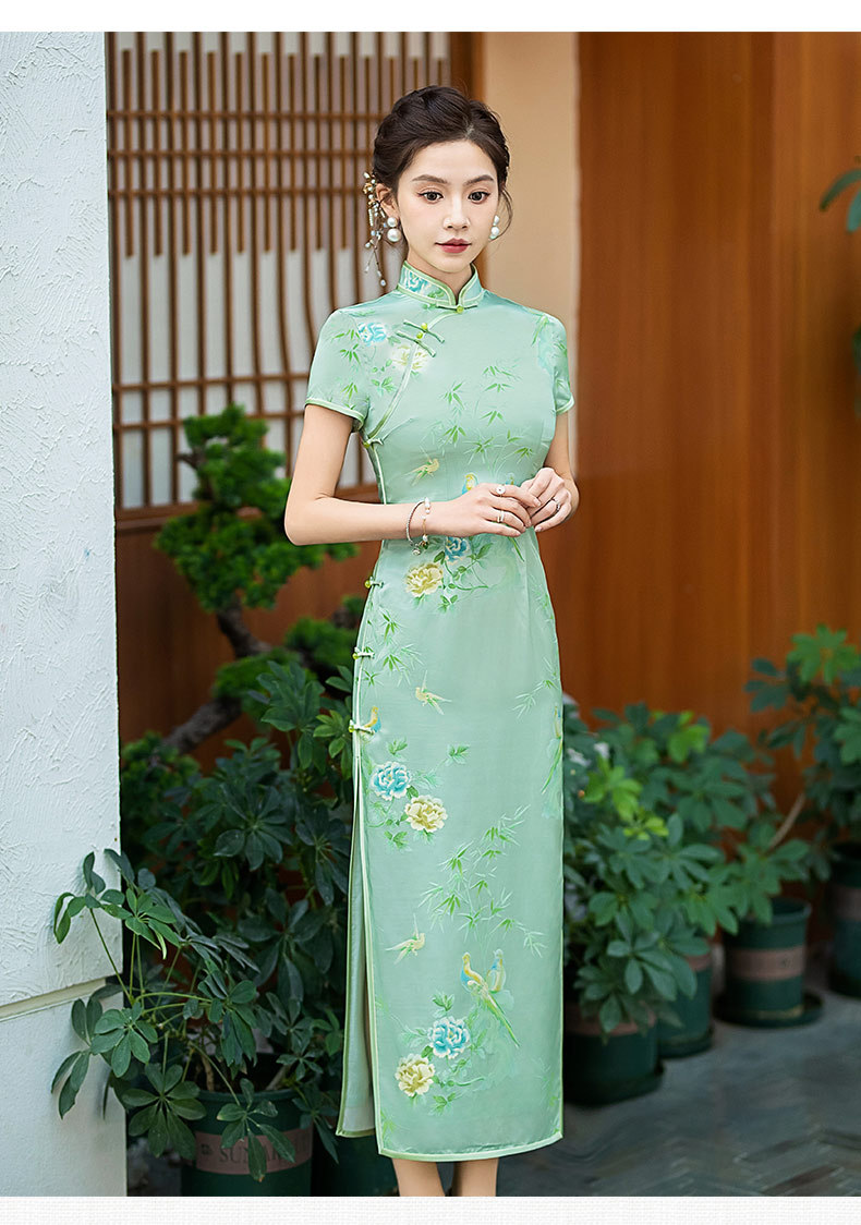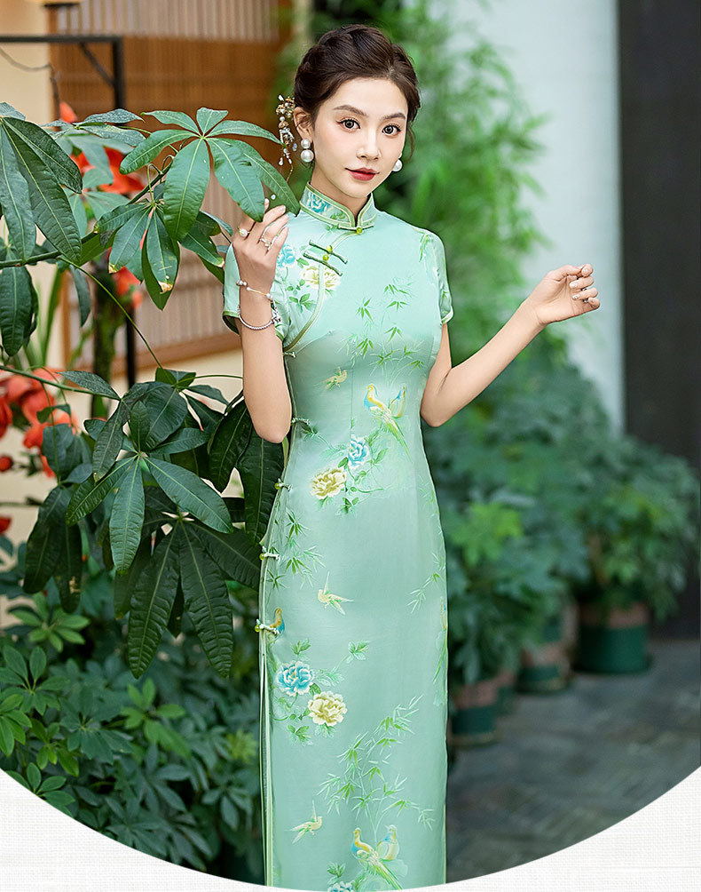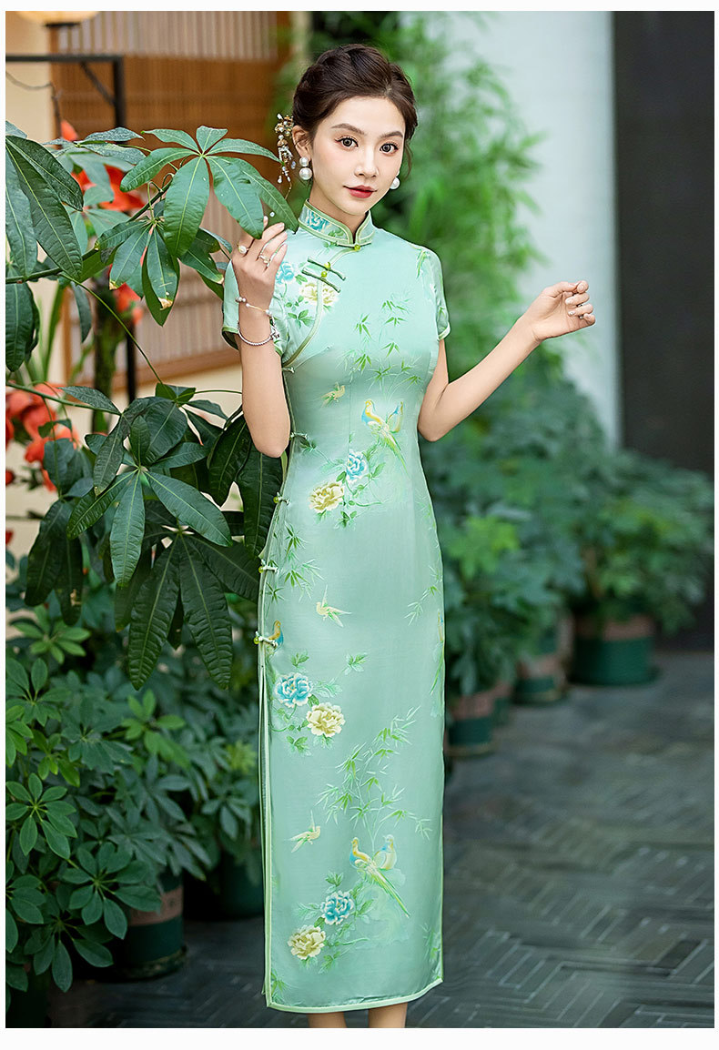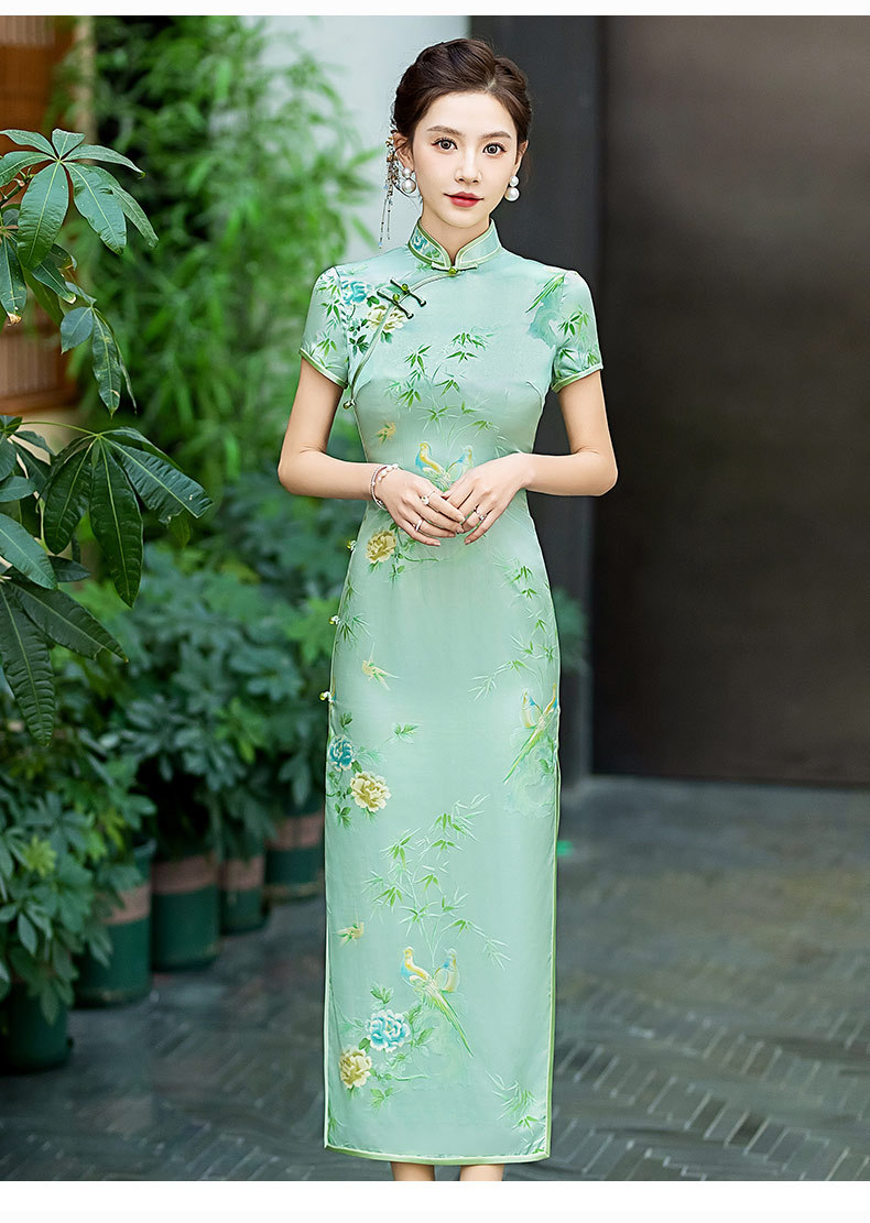 WX-100%真丝提花春季新款真丝旗袍中式桑蚕丝连衣裙手工缝制宴席