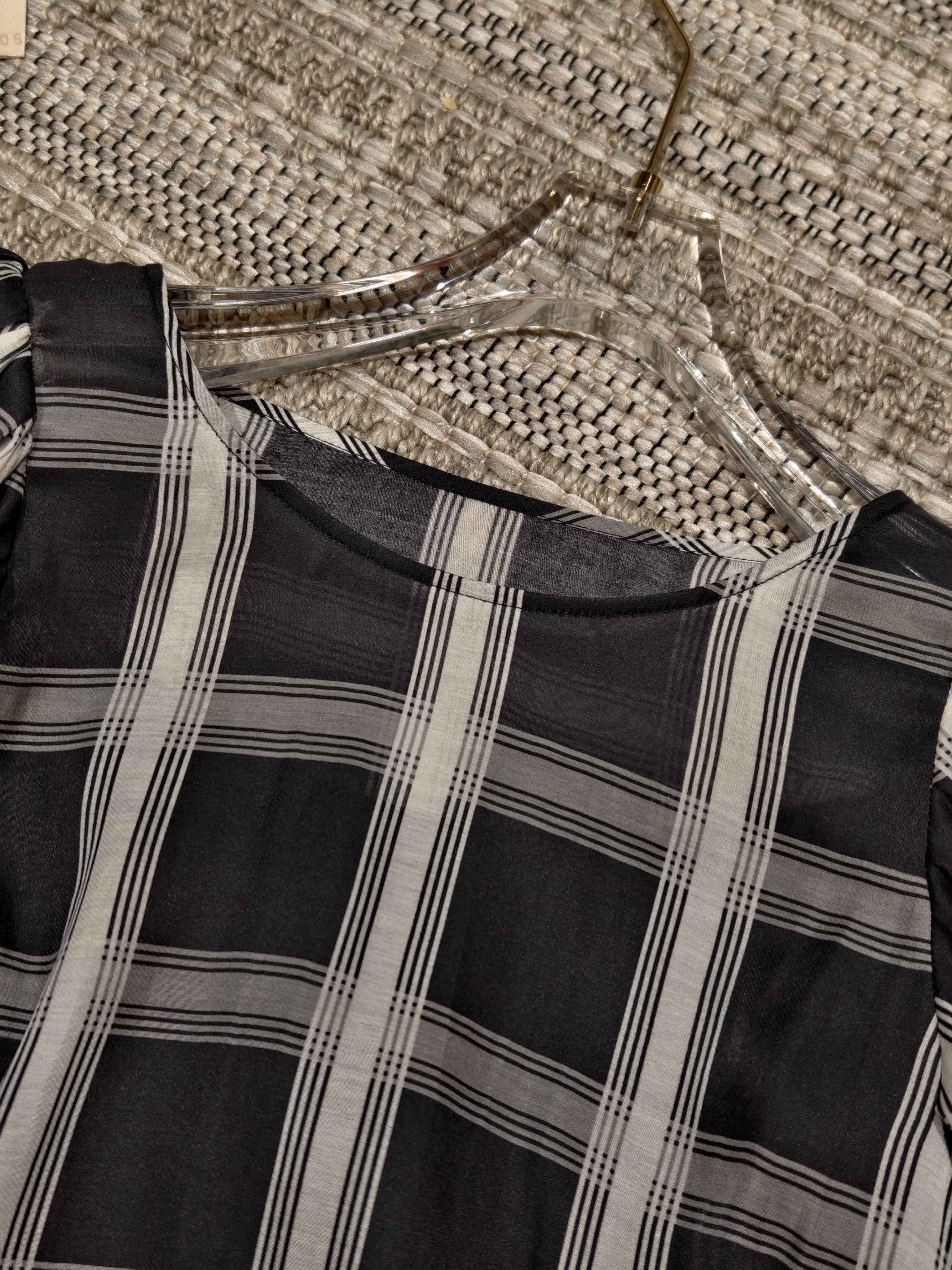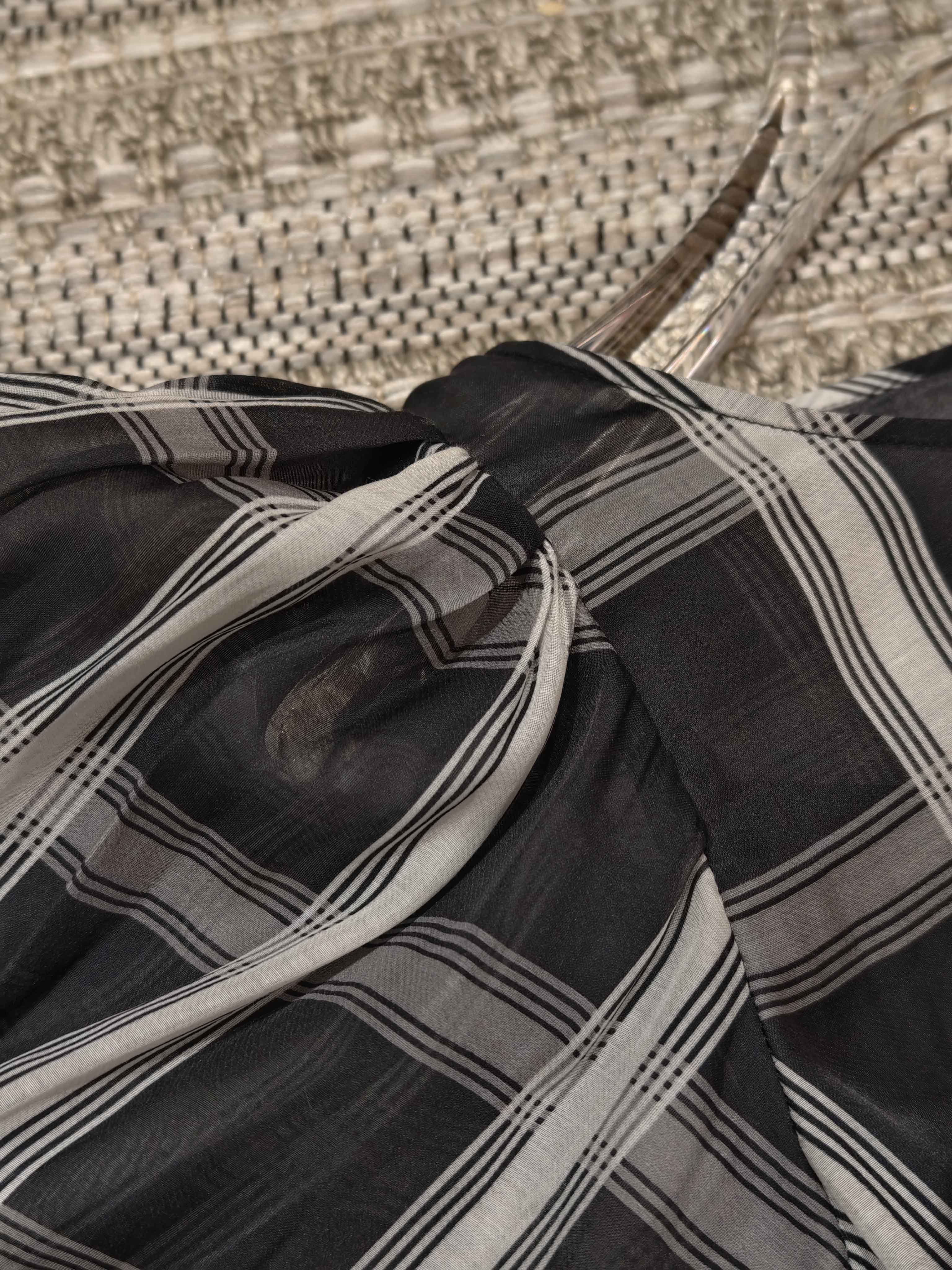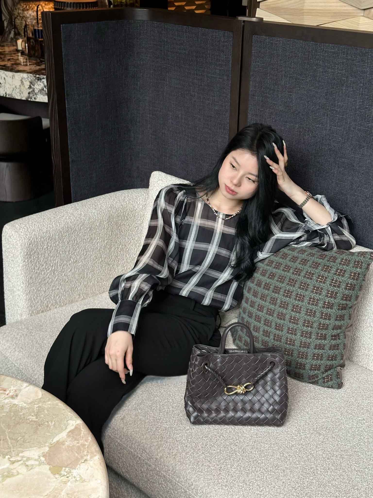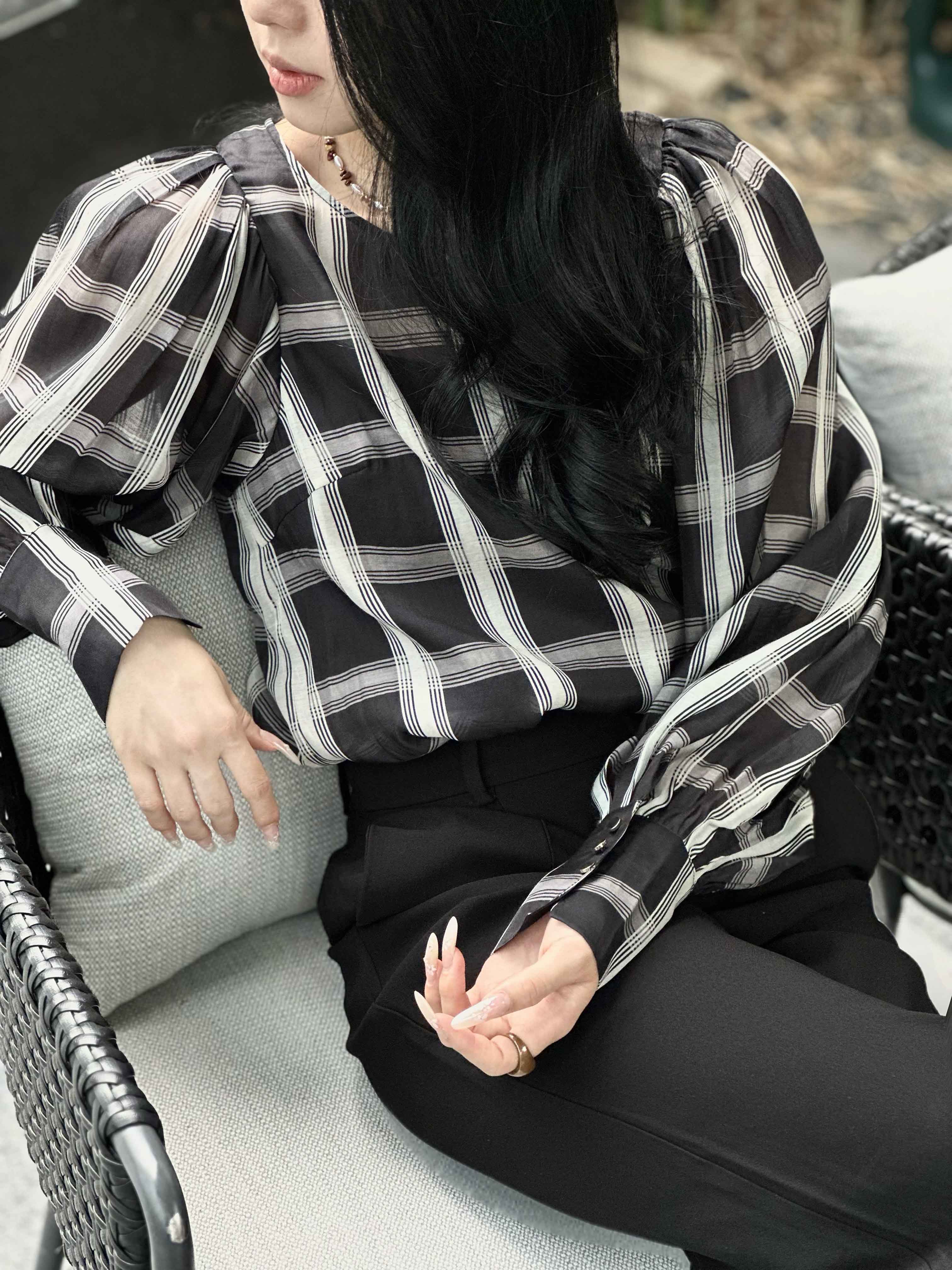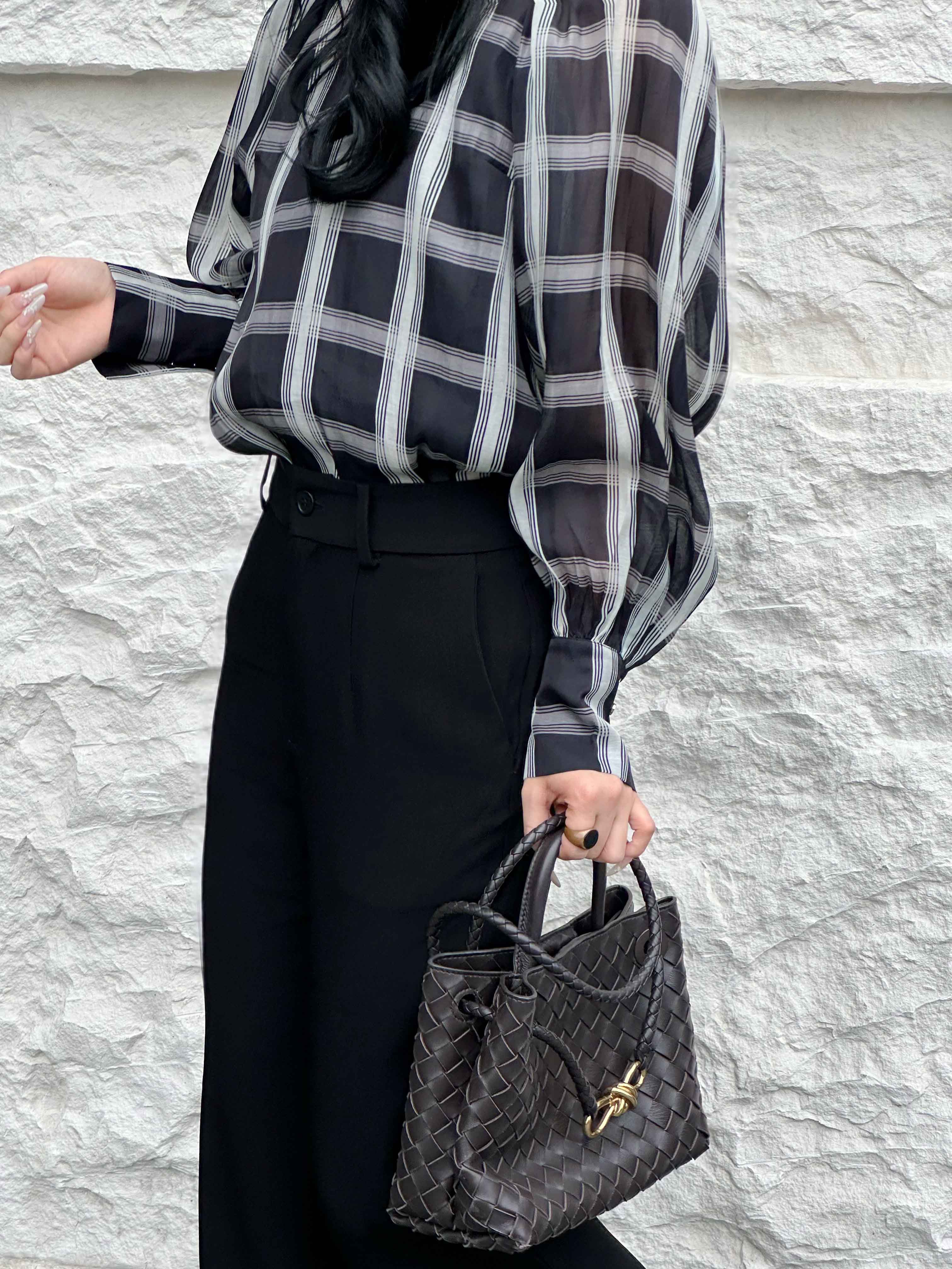 顺丰包邮洛诗琳99437春季精致丝绵格子上衣气质直筒长裤套装0120