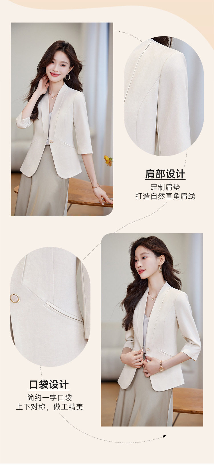 「自」全新升级【铂金会员146/天猫199/差价53】(04257)洛诗琳气质七分袖小西装女2026新款薄款职场通勤显瘦外套