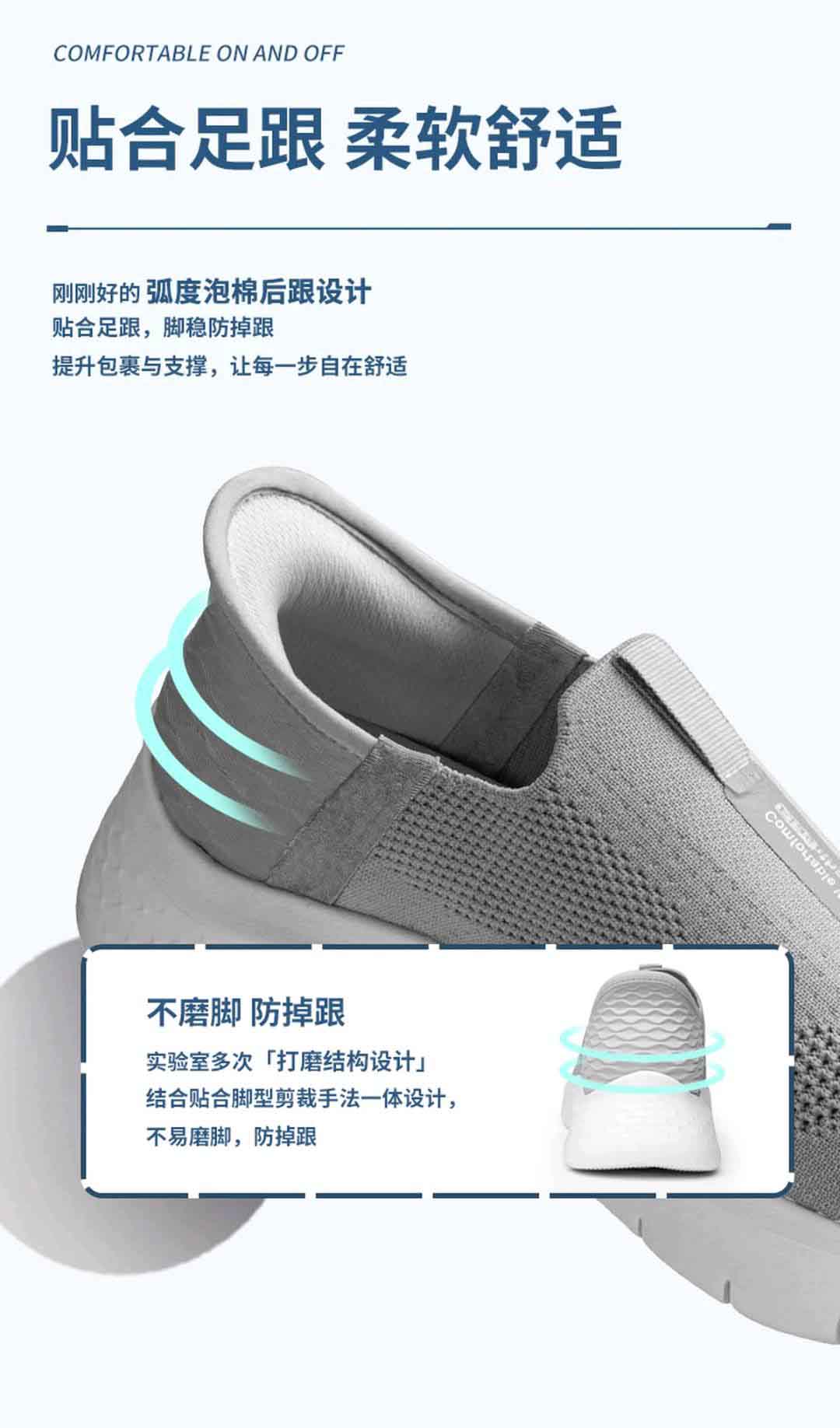 虽然第一眼看过去,这款鞋子平平无奇,但品质却并非一般,全线鞋履都是瞄准的高端标准,45°微翘鱼鳞的后跟,经过实验室多次打磨结构,实现了一脚下去能精准合脚,不用系鞋带、不用拔鞋跟,真两秒轻松出门!