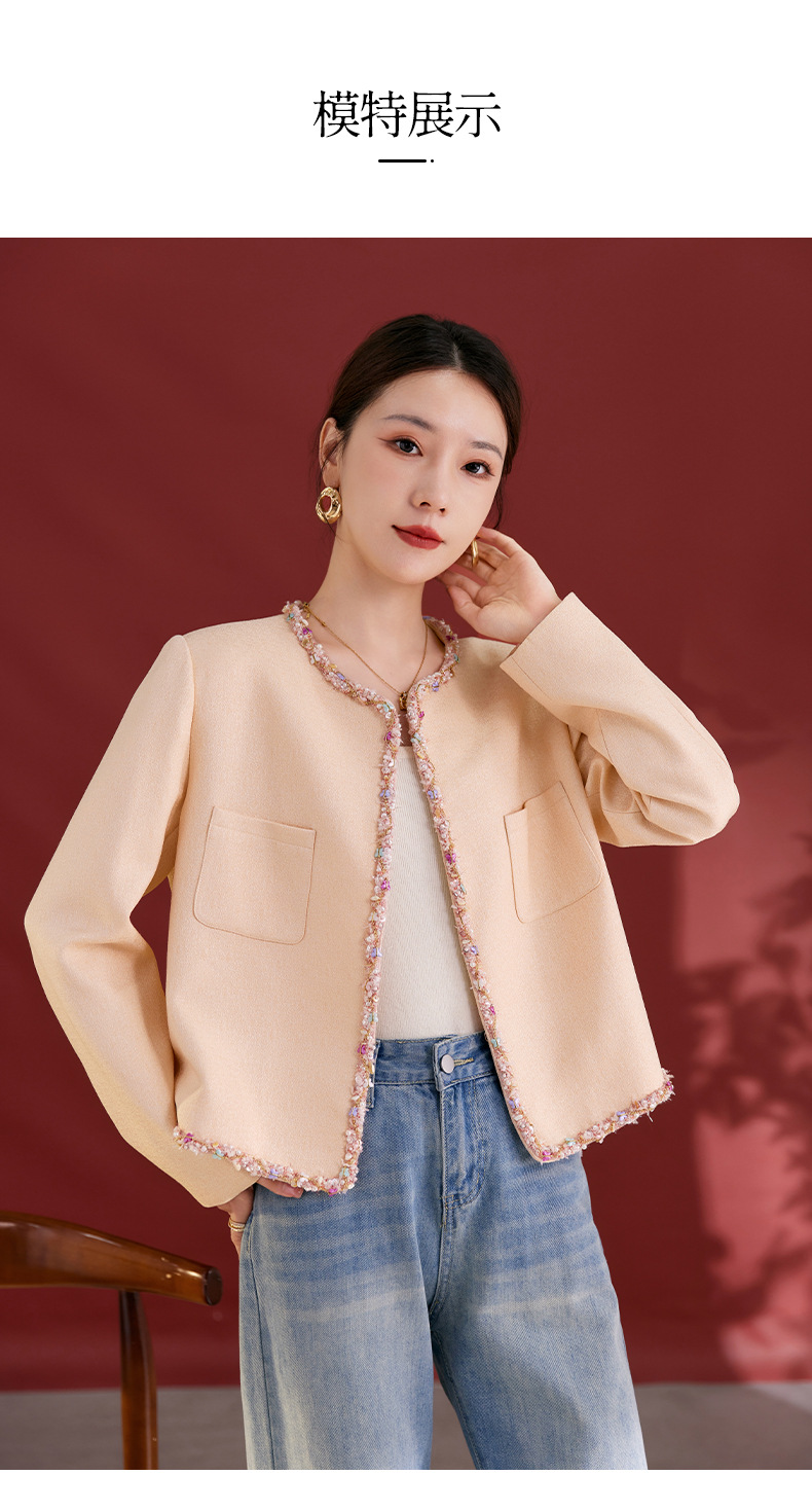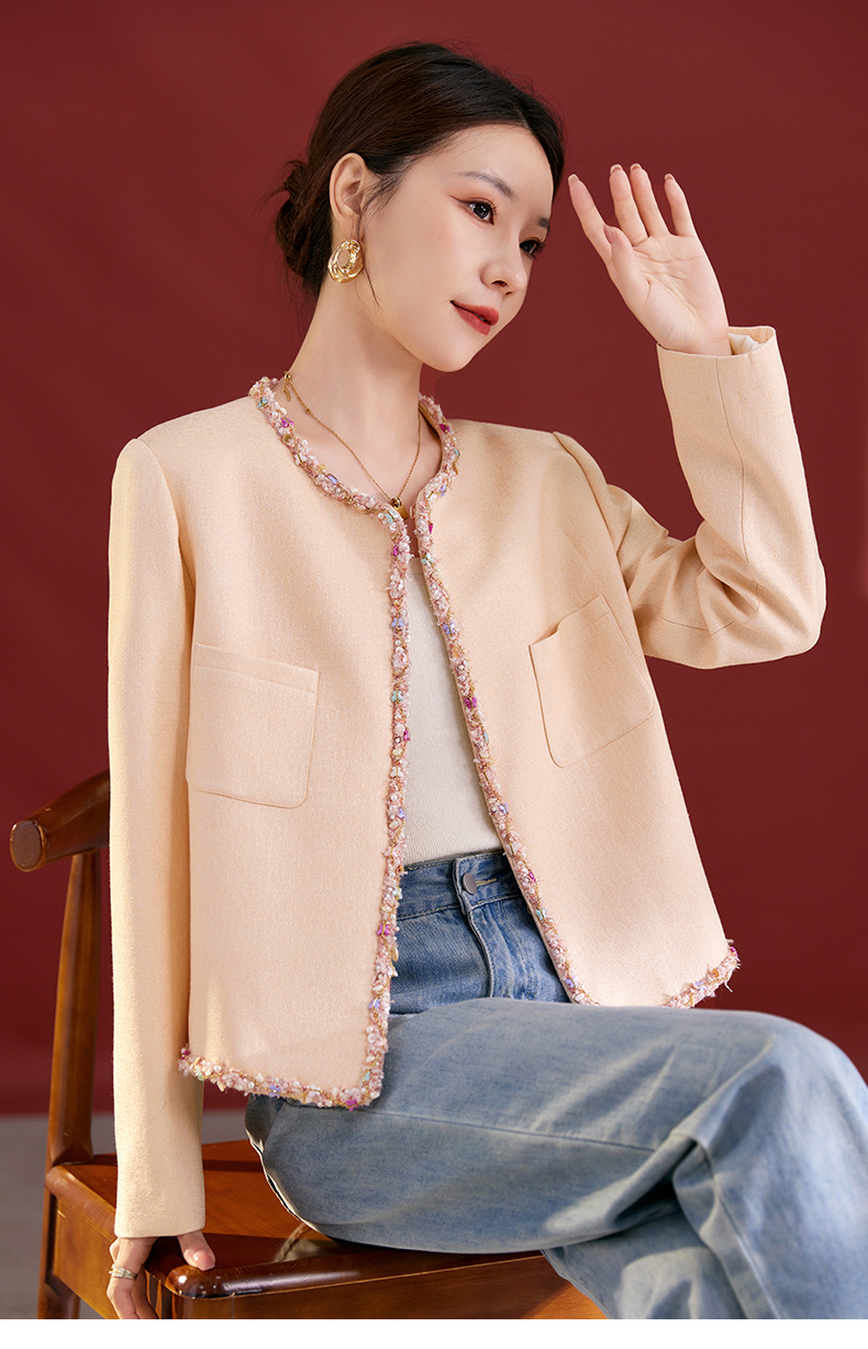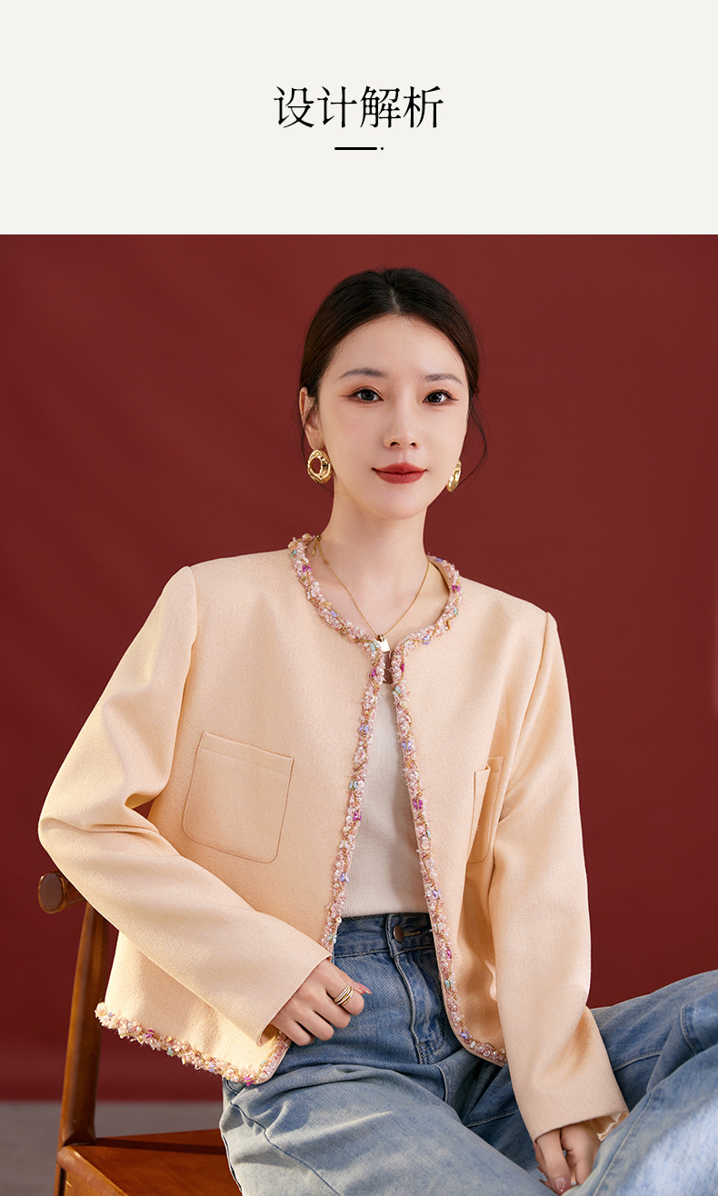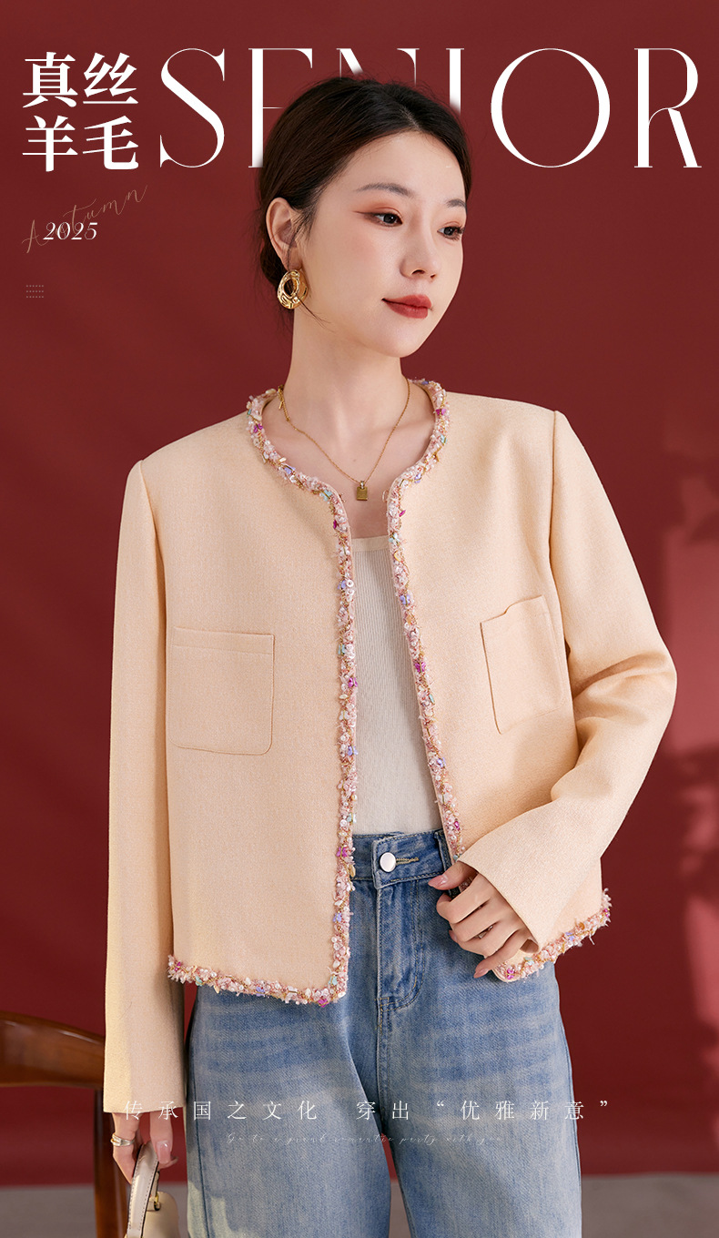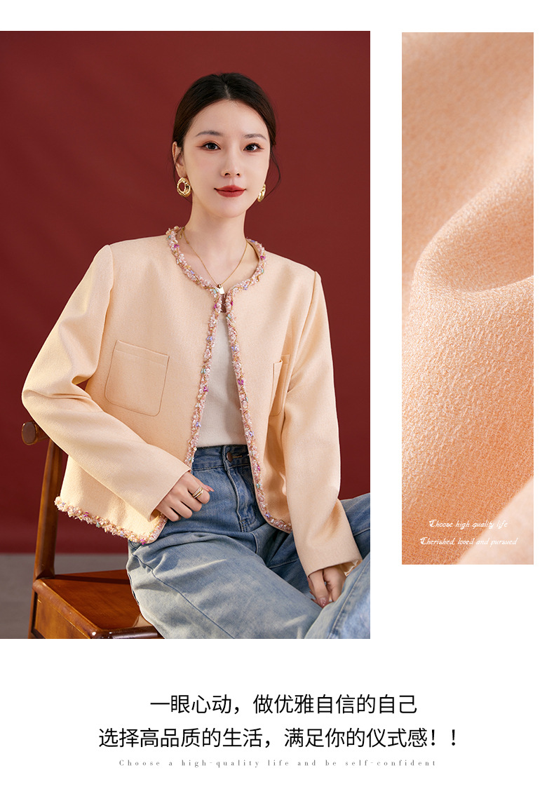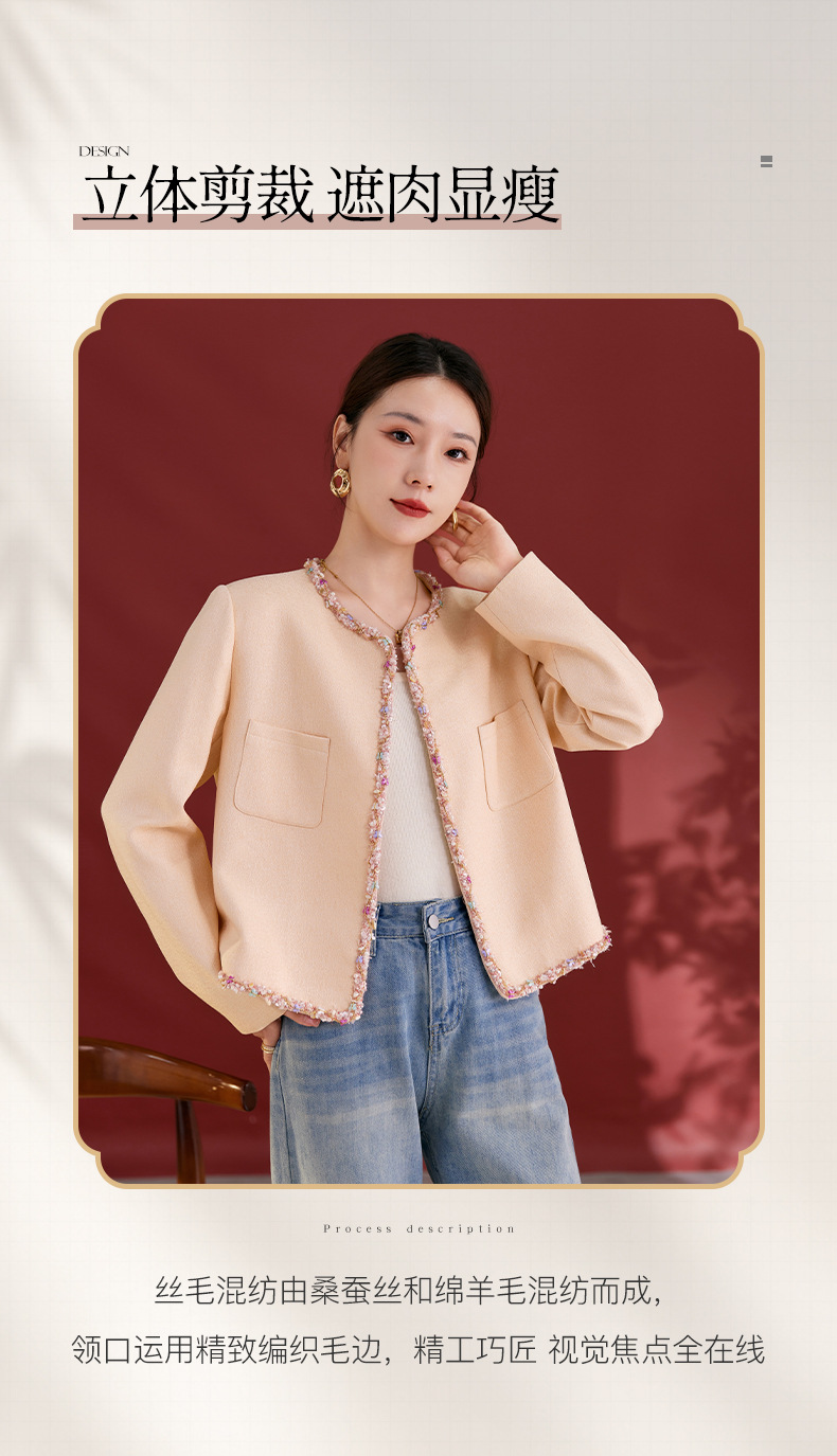 QS秋冬新款羊毛小香风外套气质短款圆领宽松型上衣女1991