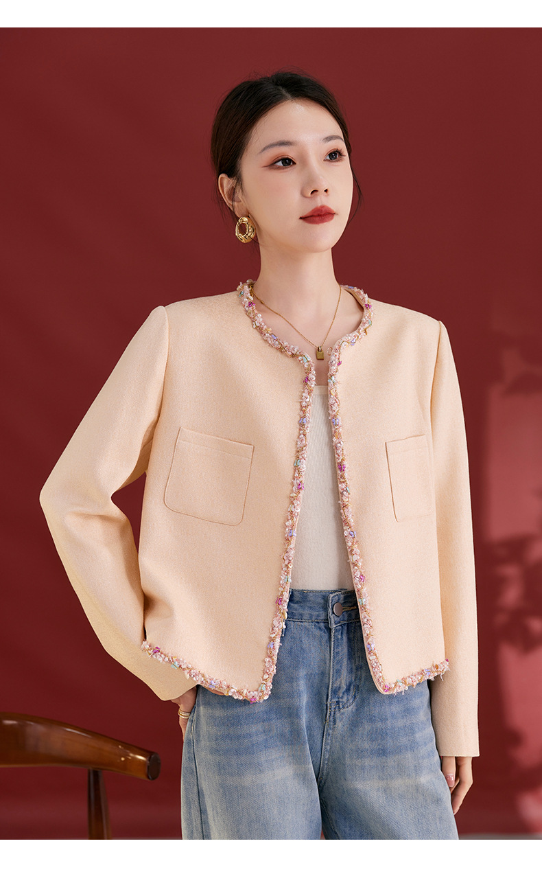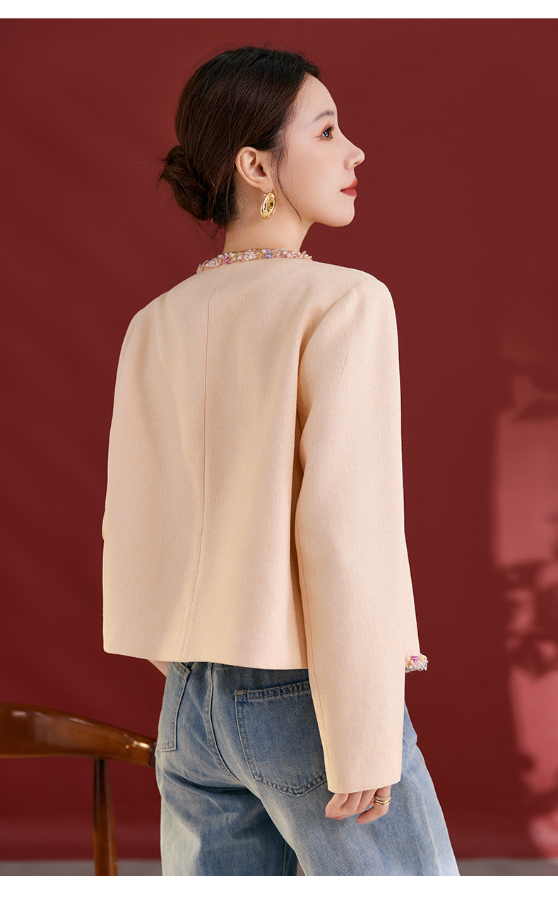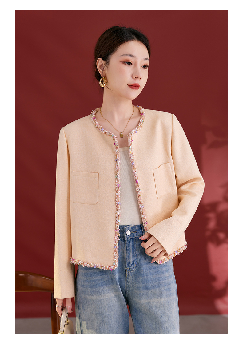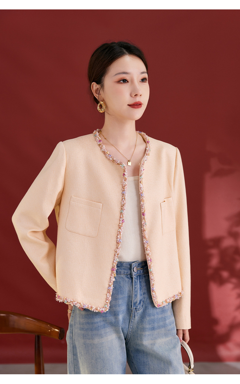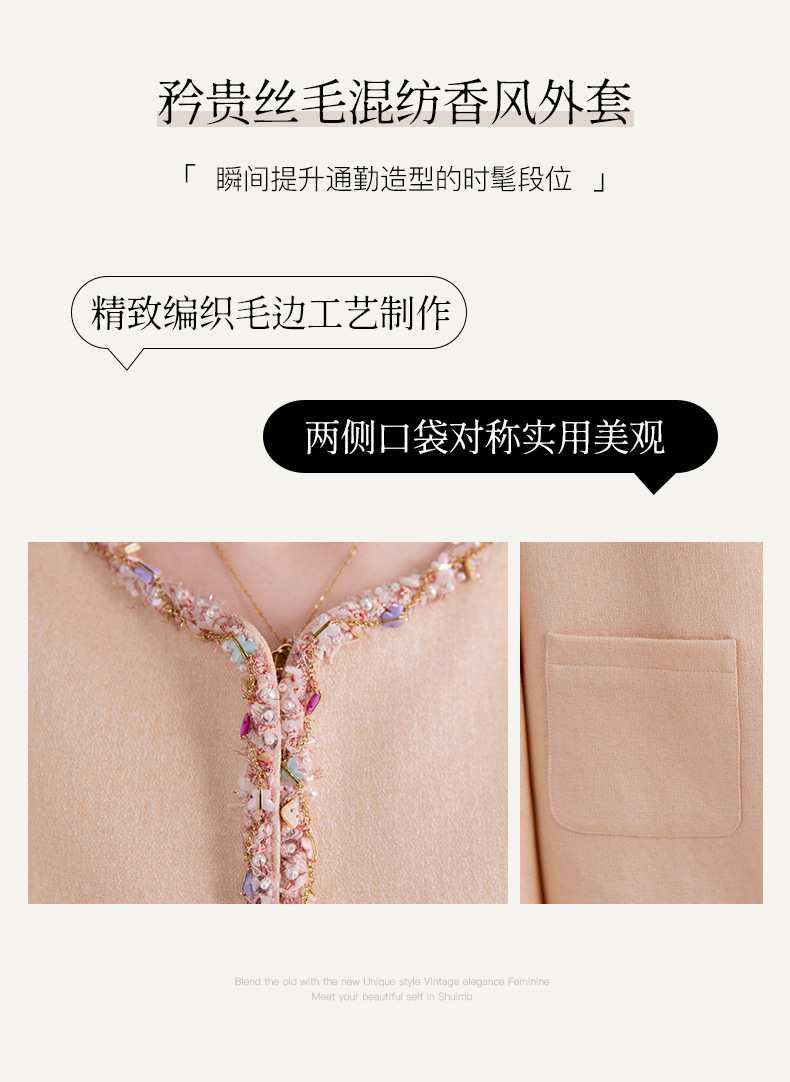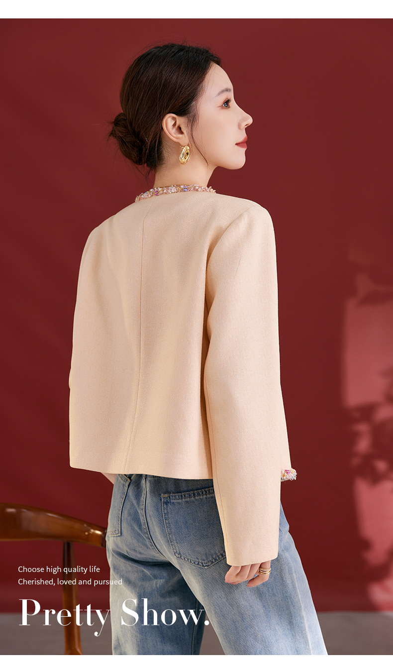 QS秋冬新款羊毛小香风外套气质短款圆领宽松型上衣女1991