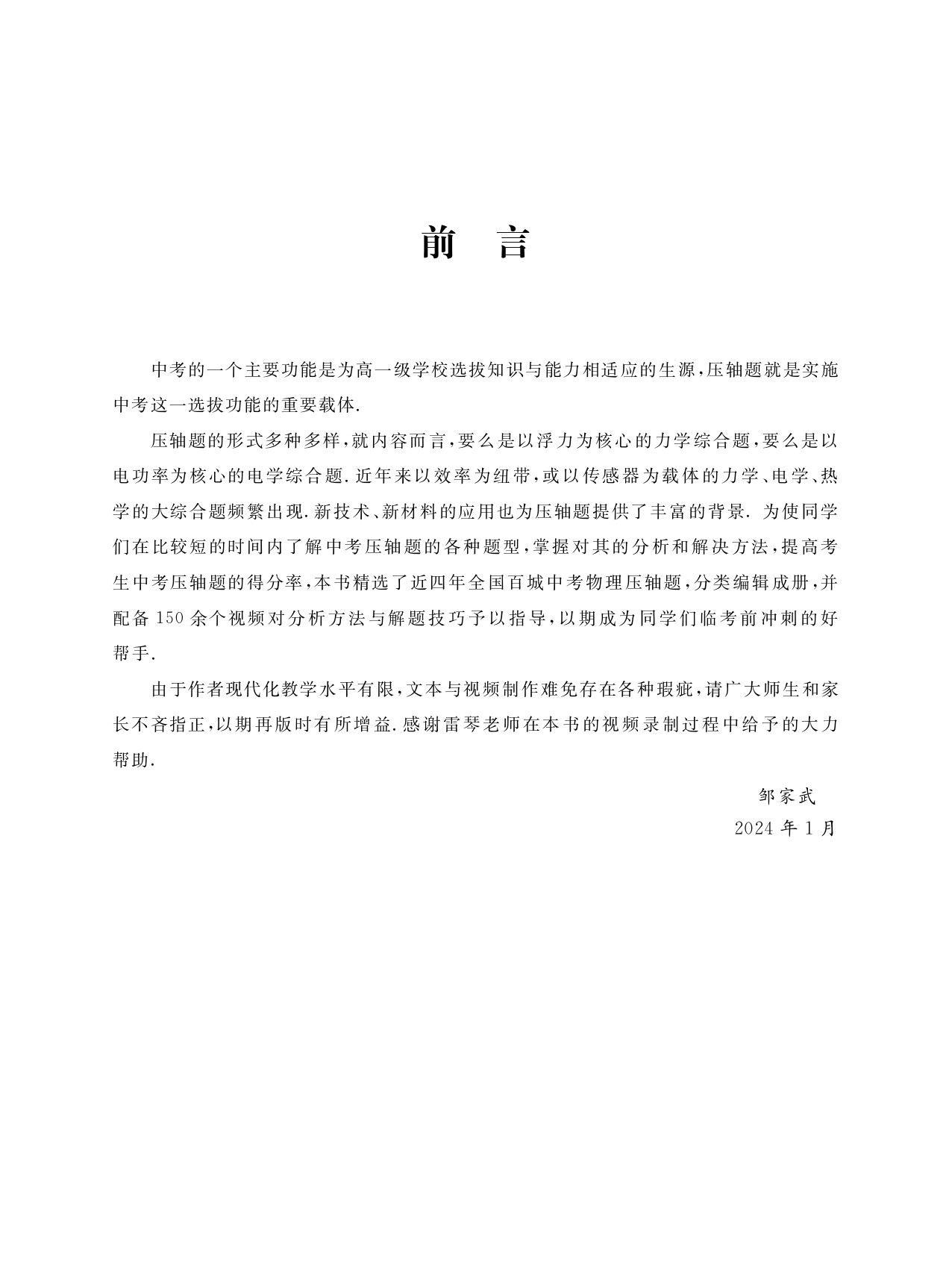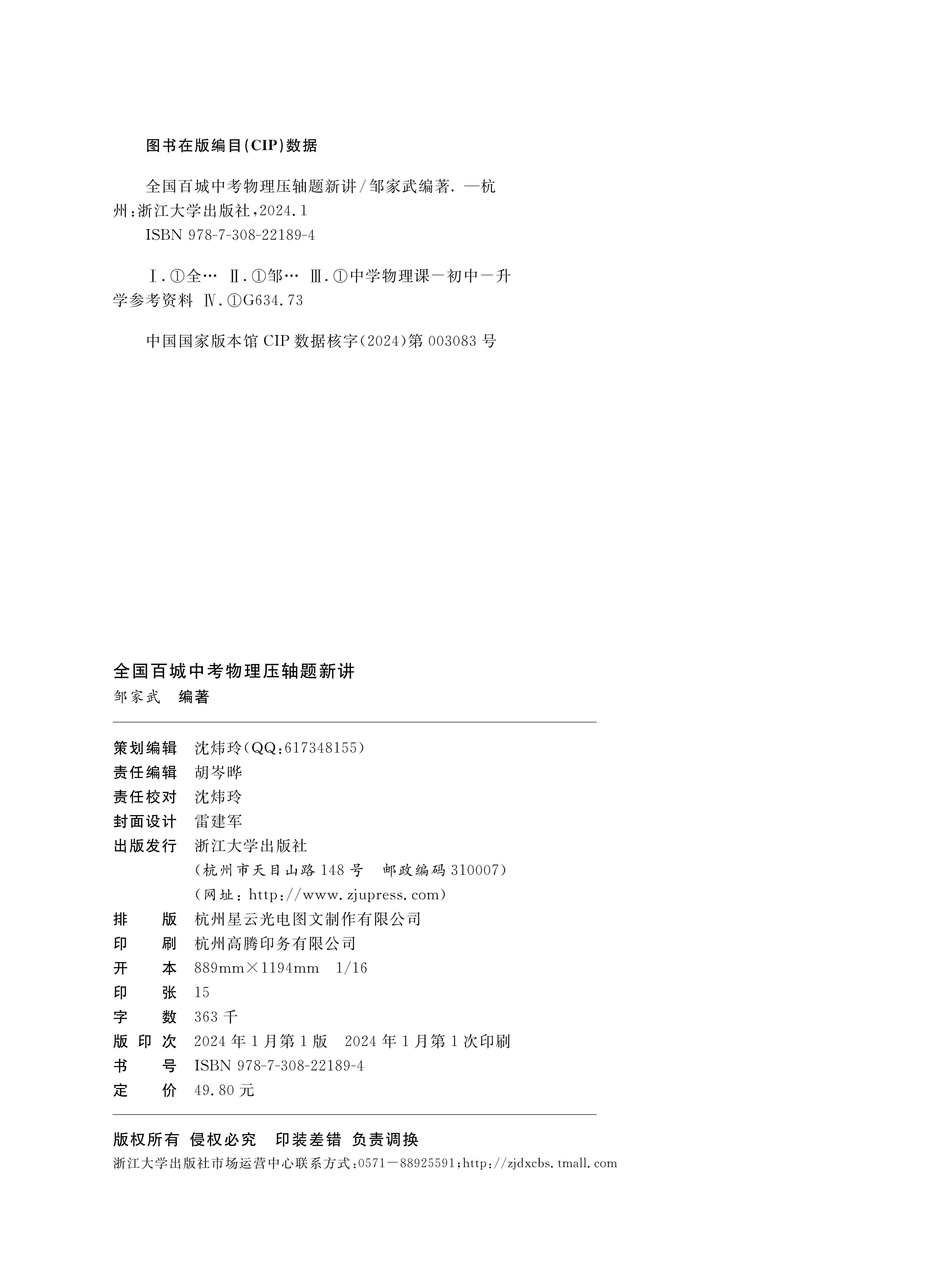 2024新版全国百城中考物理压轴题新讲全国中考物理真题压轴题精讲解析压轴必刷题九年级初三中考总复习资料强化训练浙江大学出版社