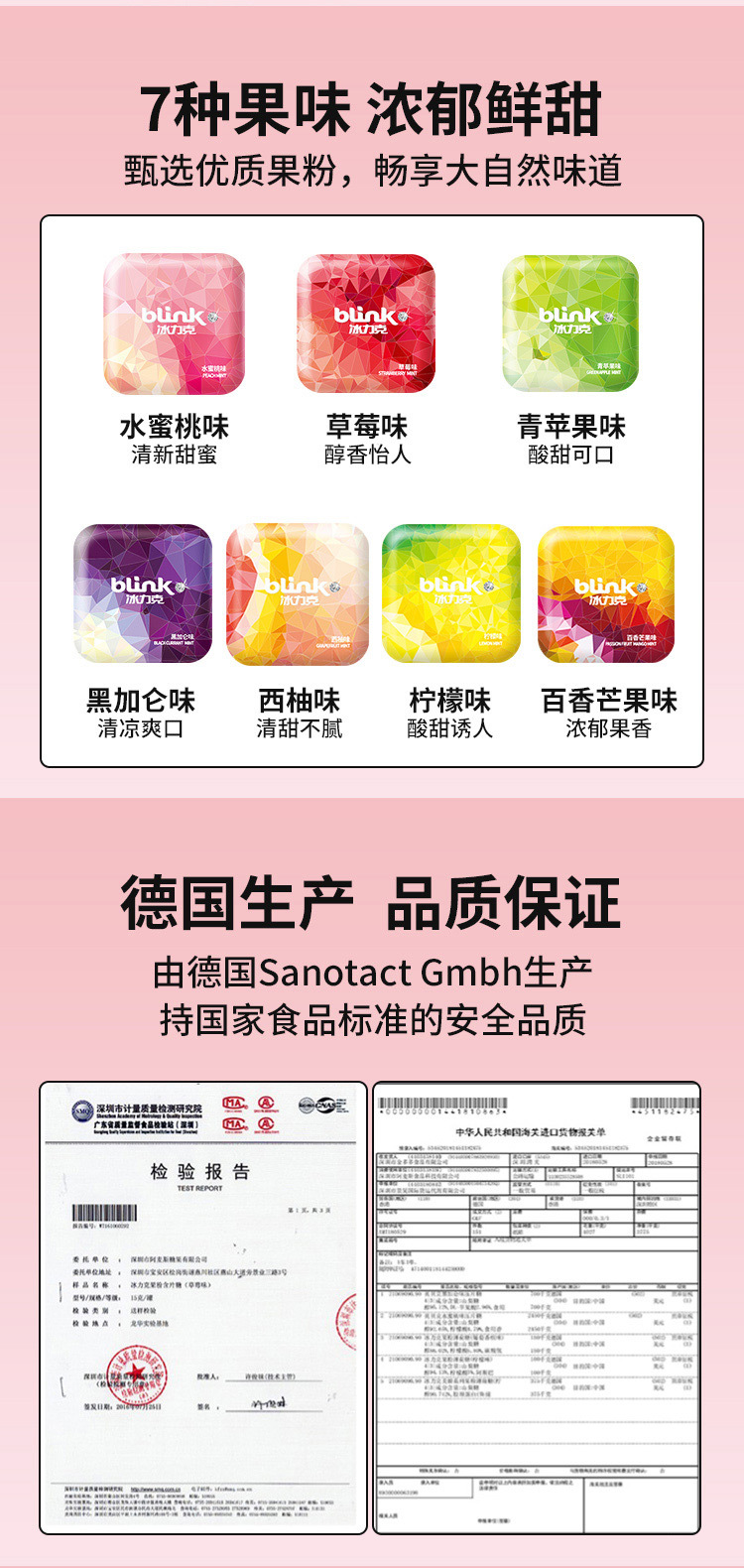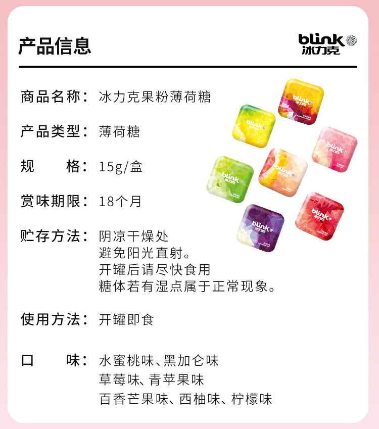 【迷你便携,0糖配方】blink冰力克无糖薄荷糖 口气清新润喉糖 多口味清凉持久含片糖果-QQ