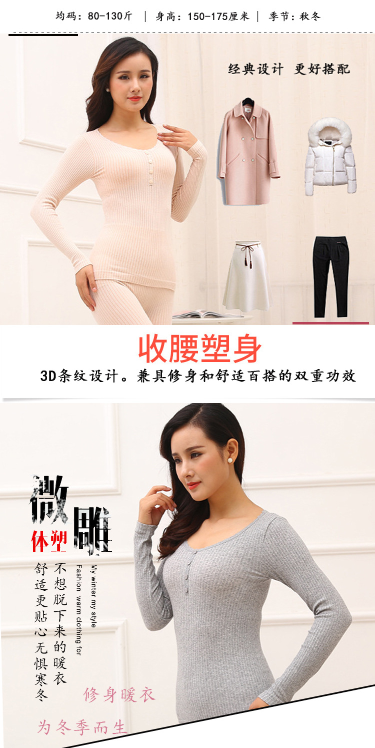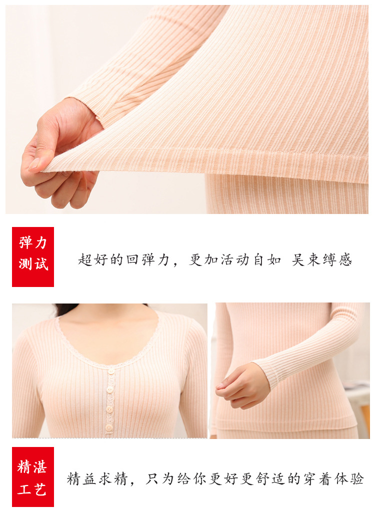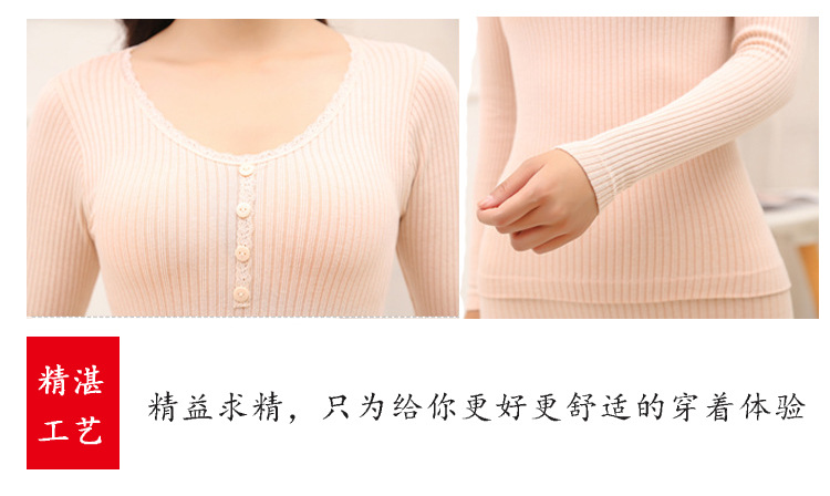 RY-E001秋冬女士无缝保暖内衣套装可外穿紧身打底衫蕾丝花边显瘦秋衣秋裤