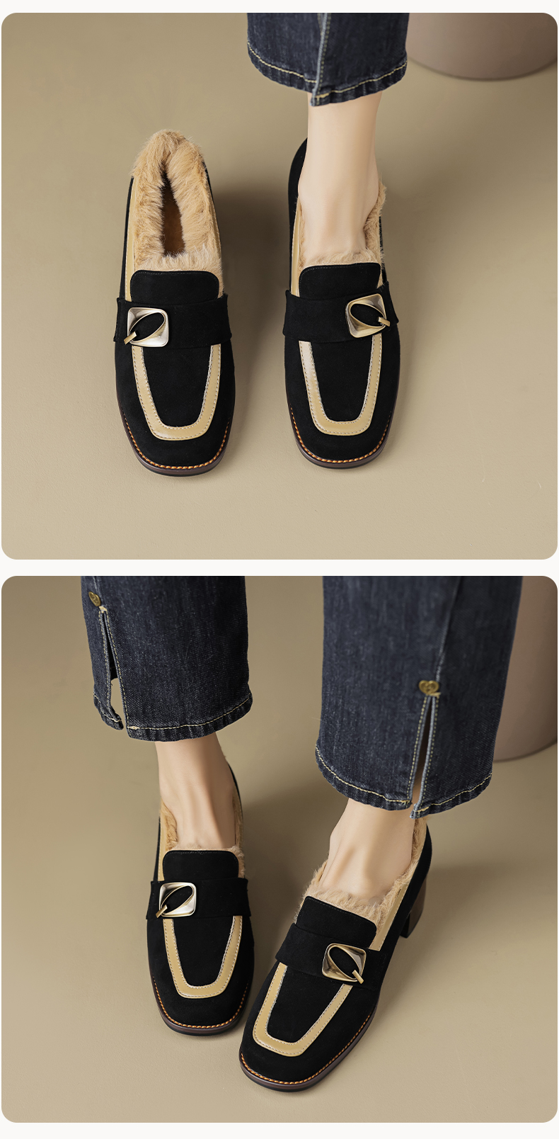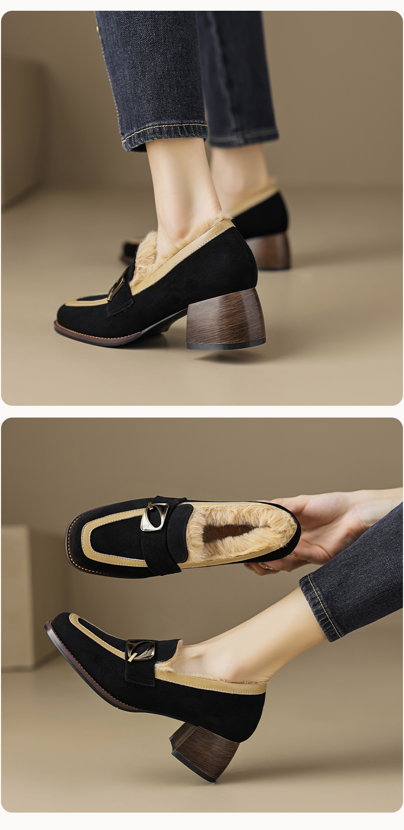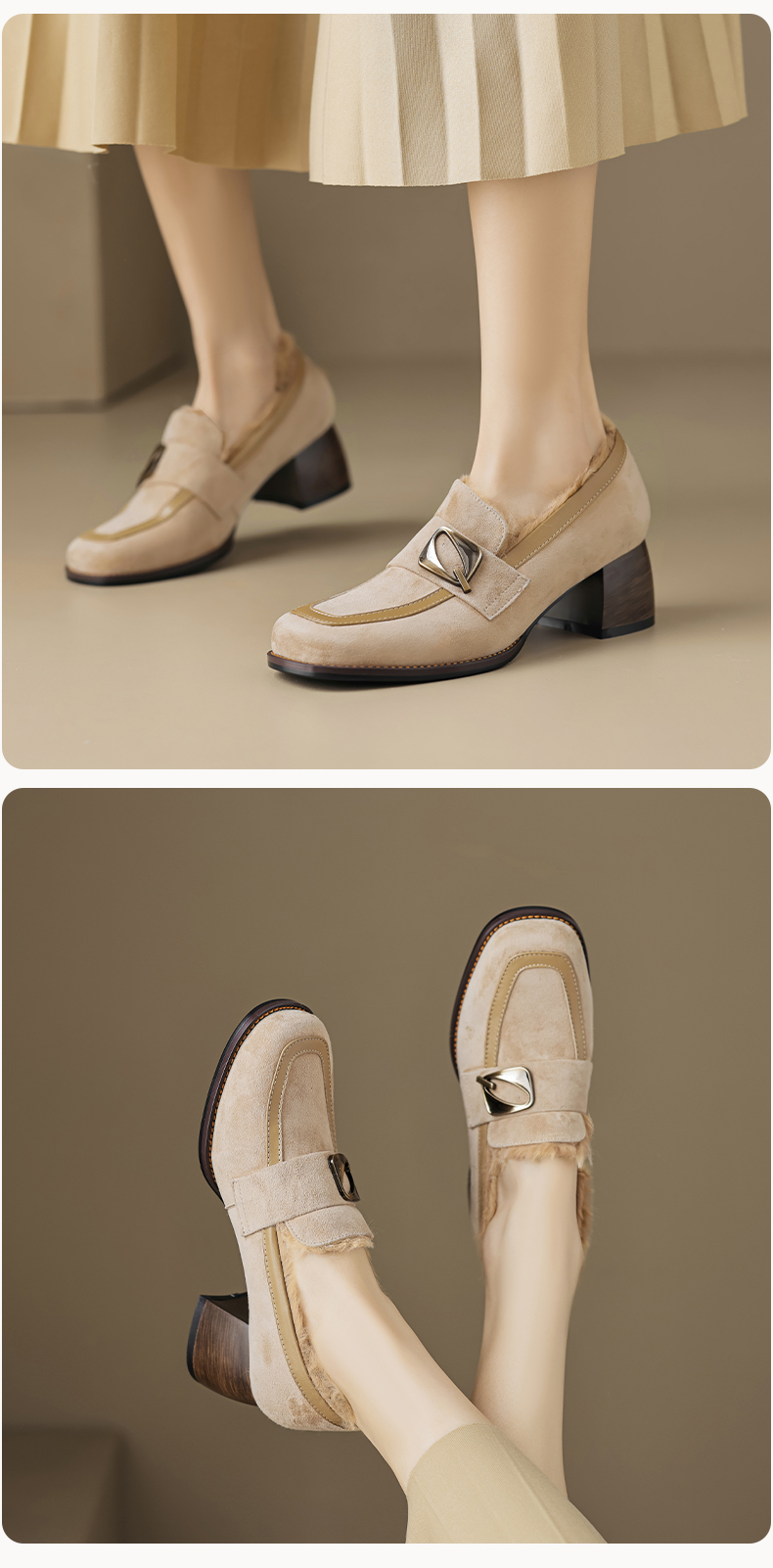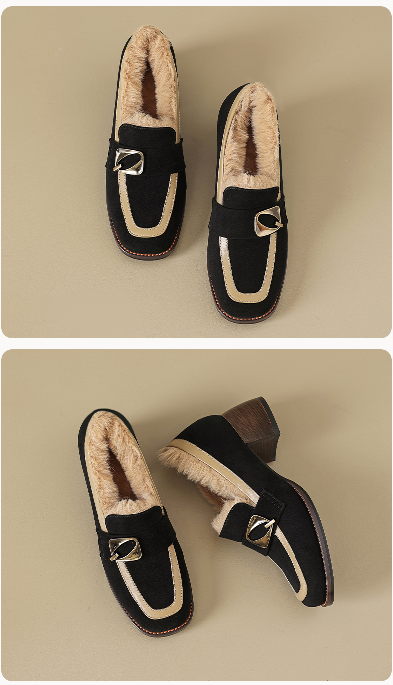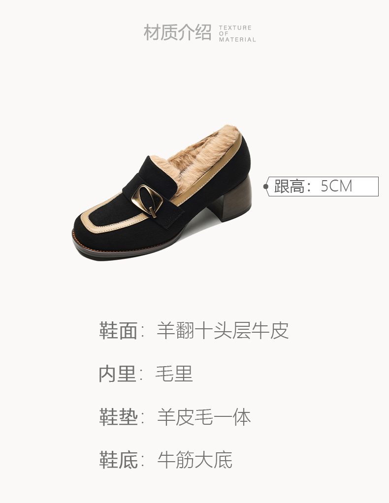 时尚个性,羊翻+牛皮粗跟单鞋QQ-168642
