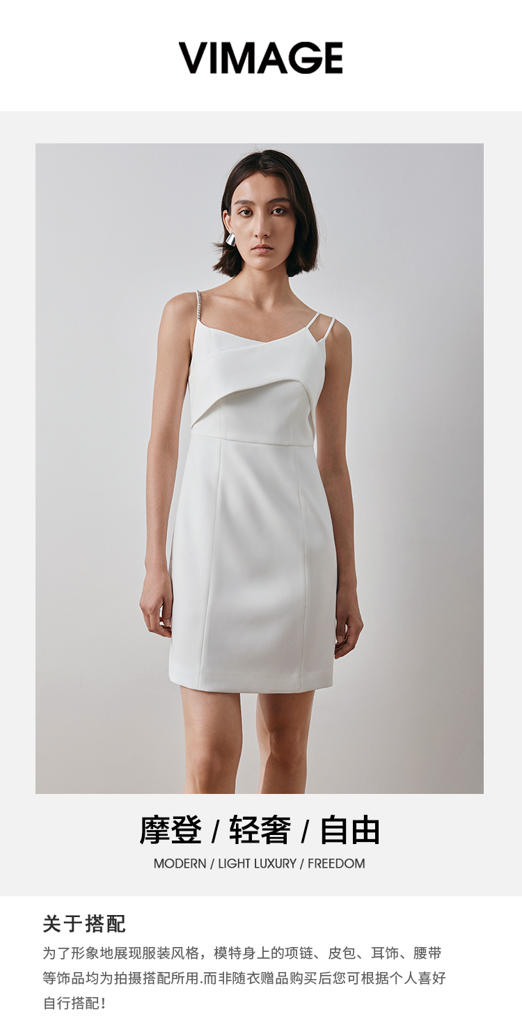 VIMAGE纬漫纪秋季新款优雅吊带连衣裙V2077608